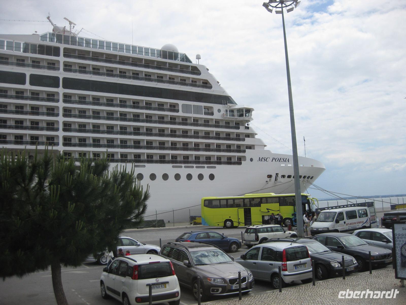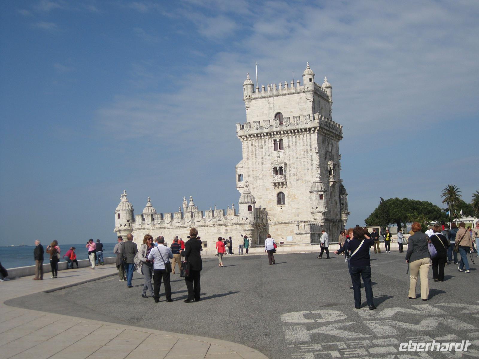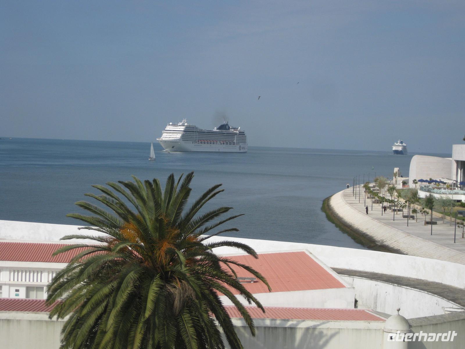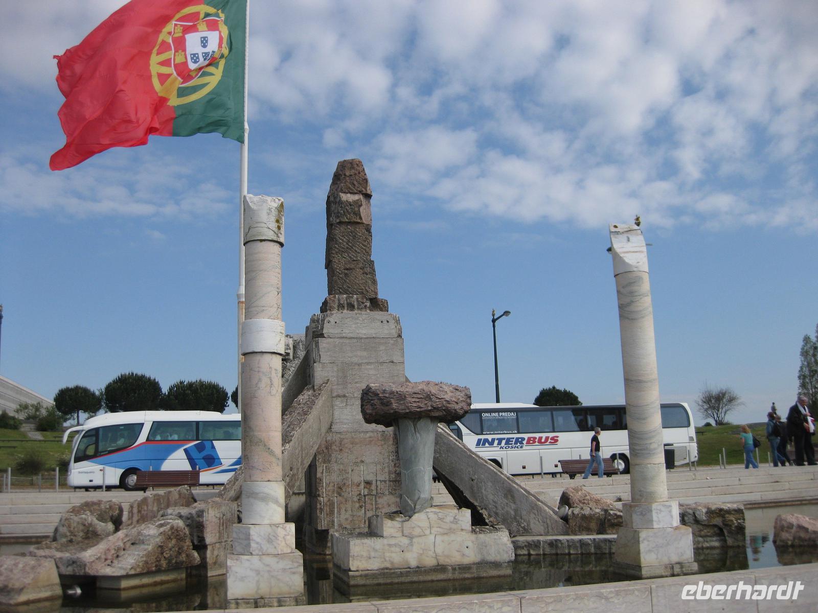 Als erstes fahren wir zum Parque Eduarde VII. Von hier aus haben wir einen tollen Blick über die Stadt. Das Denkmal für die Nelkenrevolution ist auch hier. Dann fahren wir in den Stadtteil Belem. Am Torre de Belem steigen wir aus dem Bus und laufen ein kleines Stück bis zum Ufer des Tejo, wo sich der Torre de Belem befindet. Er wurde im 16. Jahrhundert zum Schutz der Hafeneinfahrt gebaut. Und wie auf Bestellung kommen gerade zwei Kreuzfahrtschiffe nach Lissabon herein. Ein toller Anblick, der Torre de Belem und Schiffe. Ein kleines Stück entfernt befindet sich das Entdeckerdenkmal, an dem wir stoppen. Die Kameras glühen. Es wurde 1960 zu Ehren des 500. Todestages von Heinrich dem Seefahrer gebaut.