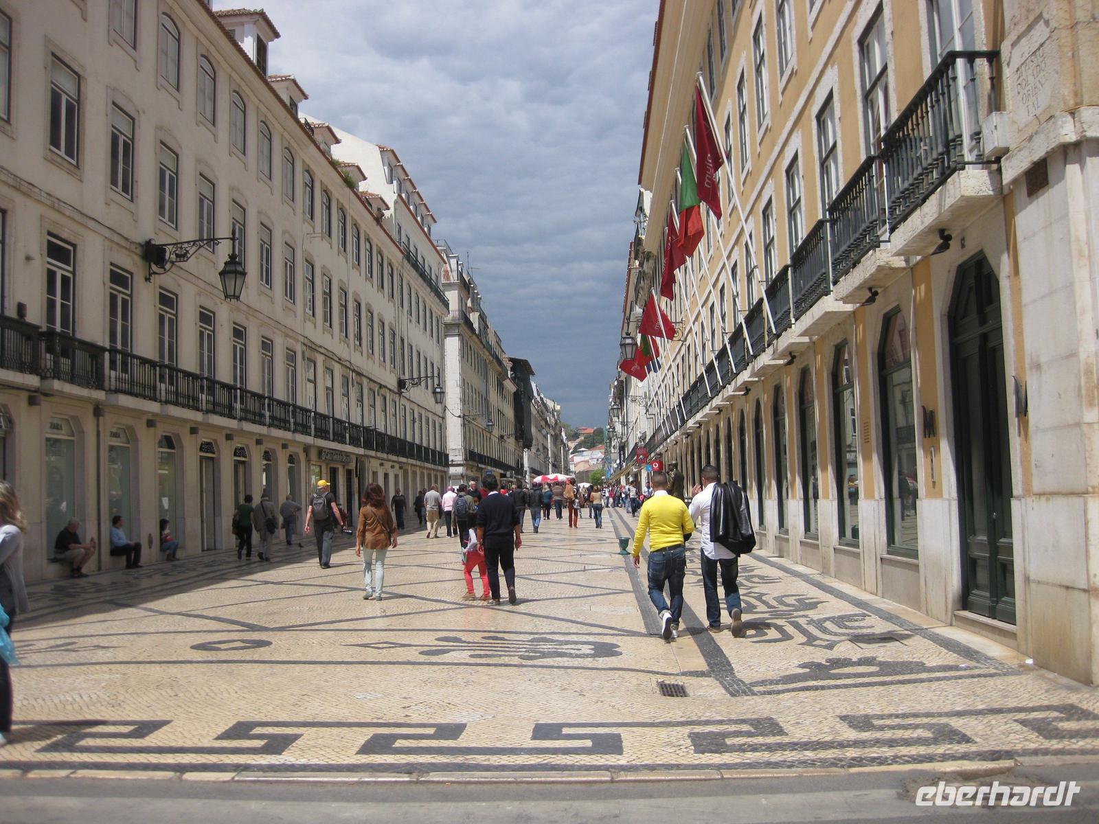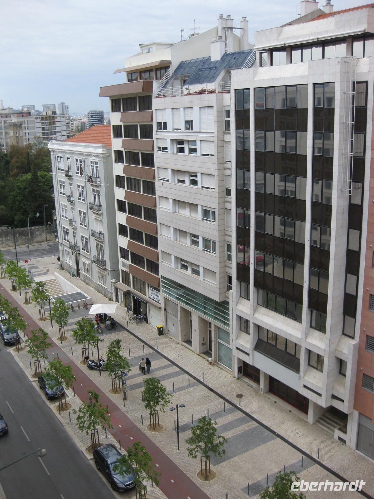 Nach der Besichtigung des Mosteiro dos Jeronimos fahren wir durch die Stadt zu unserem Hotel zurück. Elsa zeigt uns schon heute wichtige Sehenswürdigkeiten, denn morgen ist der 1. Mai und da hat sie Bedenken, dass wir an alle wichtigen Sehenswürdigkeiten heran kommen. Wir fahren am Ufer des Tejo entlang, am Rathaus vorbei, sehen den Praca do Comercio, den Praca de Dom Pedro IV (Rossio), das Gebäude des Nationaltheaters und den Bahnhof. Wir fahren auf der Hauptstraße, der Avenida da Liberdade bis zum Praca Marques de Pombal und dann nur noch ein kleines Stück bis zu unserem Hotel.