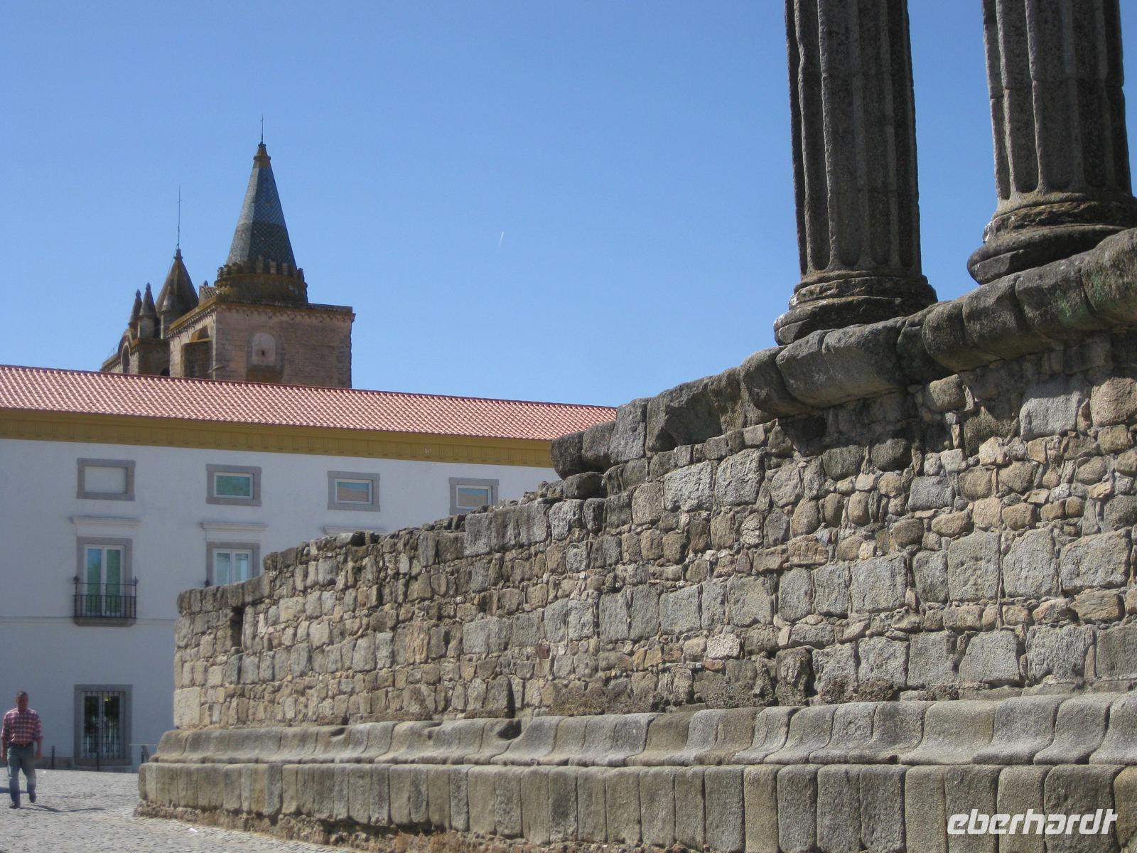 Nach gut zwei Stunden Fahrt erreichen wir die Stadt Evora. Wir bummeln mit Victor durch das historische Zentrum der Stadt, das ebenfalls zum Unesco-Weltkulturerbe gehört. Wahrzeichen der Stadt ist ein riesiges Aquädukt. Reste römischer Bauwerke zeugen von der langen Geschichte der Stadt. Besondere Höhepunkte beim Stadtrundgang sind die römischen Thermenreste, die Kathedrale Se, der Praca de Giraldo und die Kirche Sao Francisco mit der angrenzenden Knochenkapelle. Zahlreiche Restaurant und Cafes laden zum Verweilen ein. In der Mittagspause lassen wir uns einfach noch mal bei einem individuellen Spaziergang durch