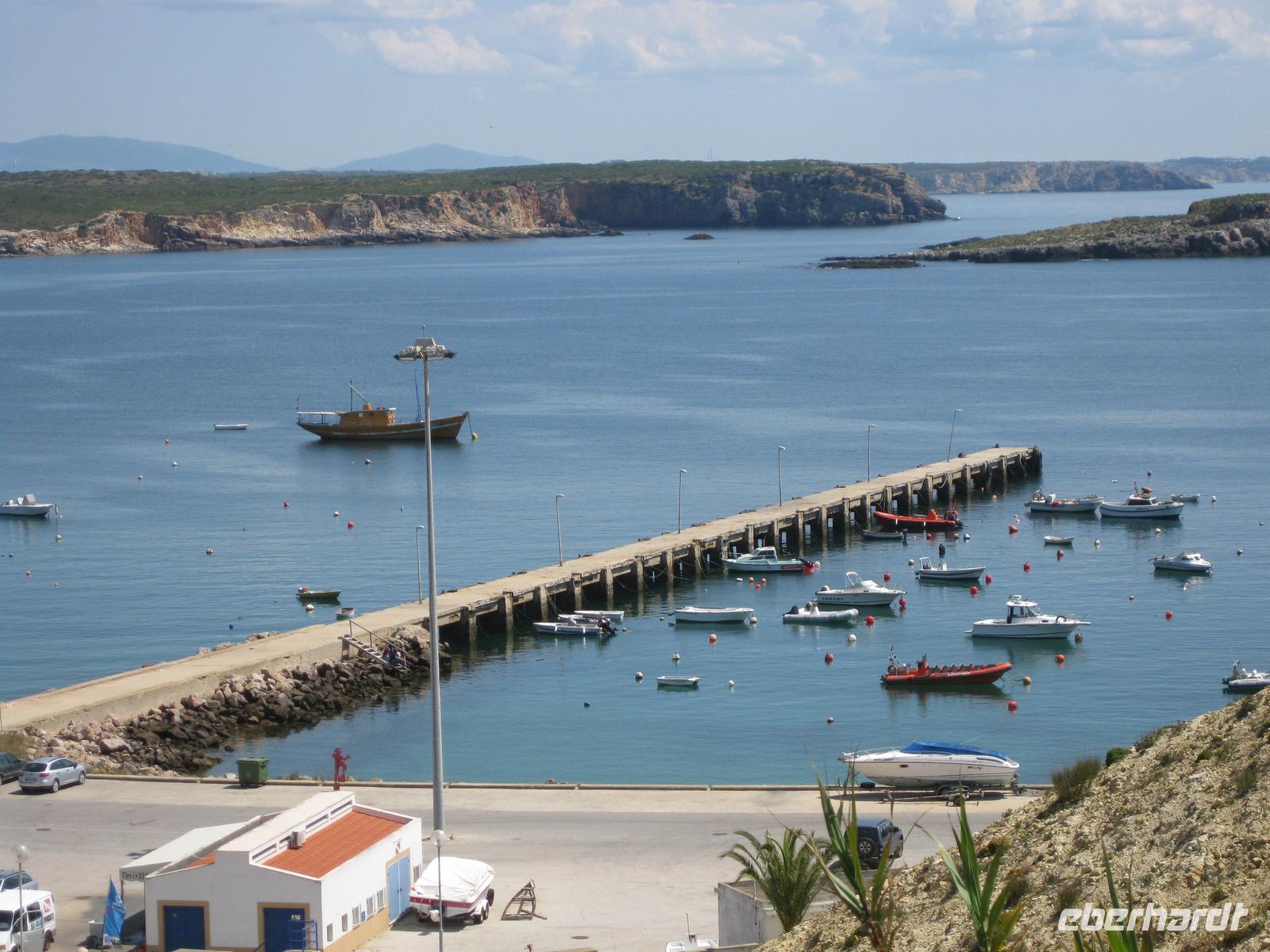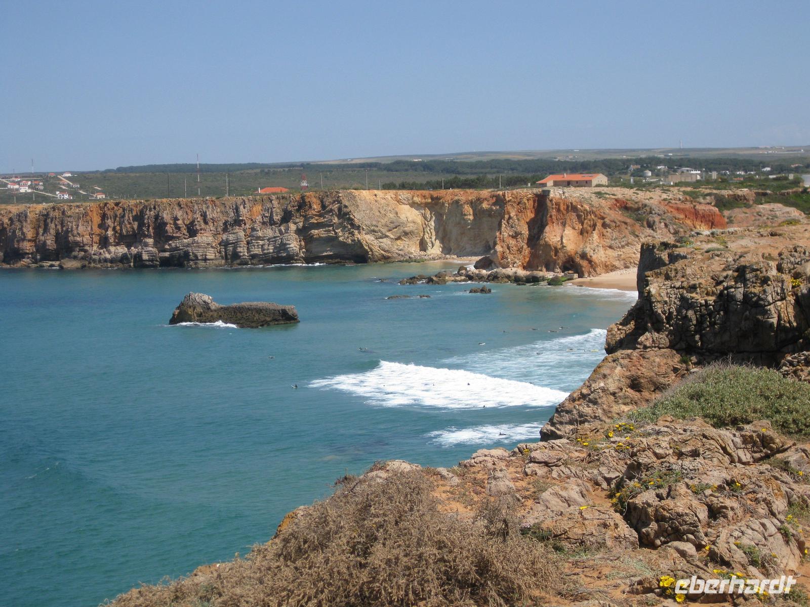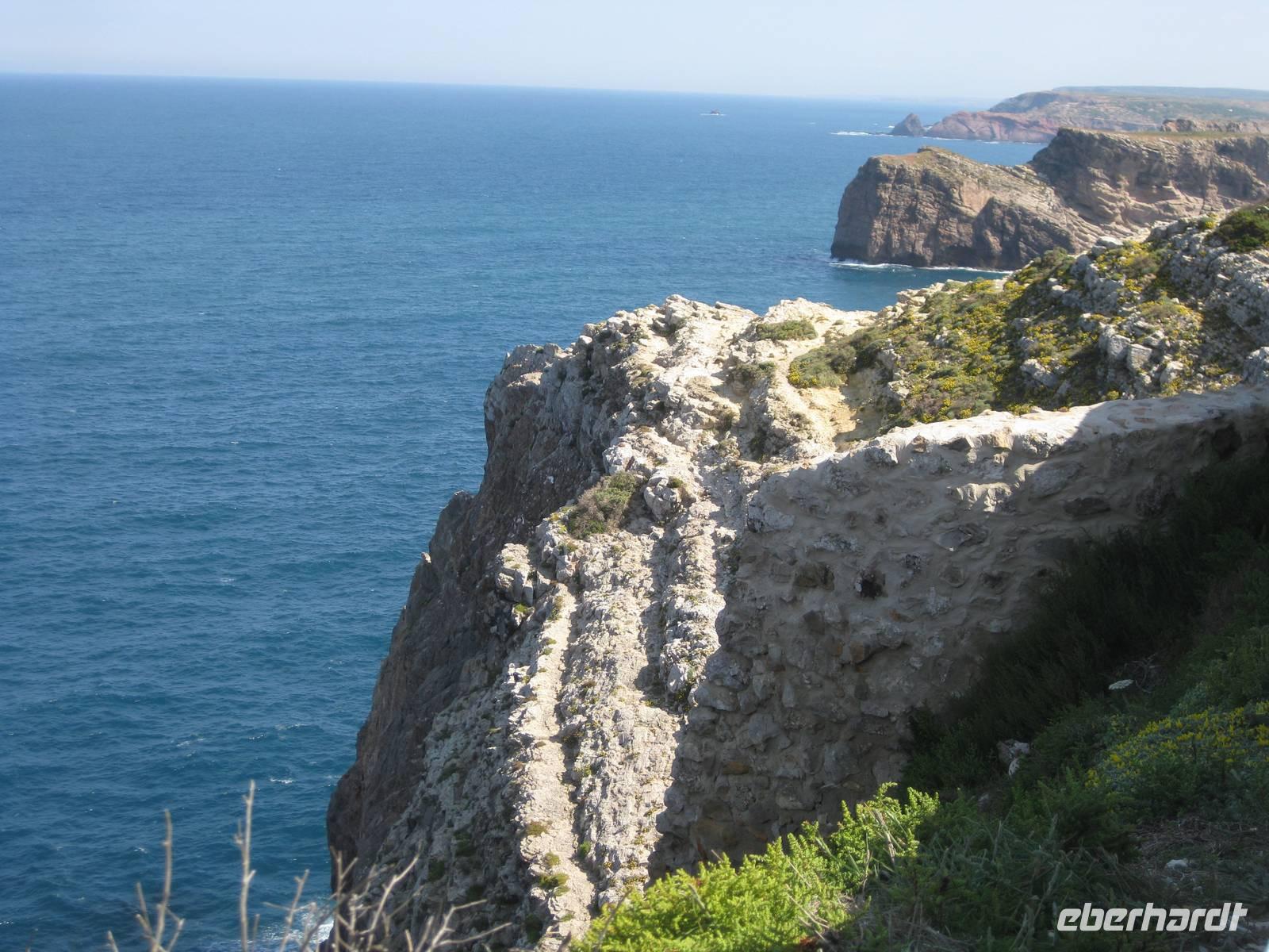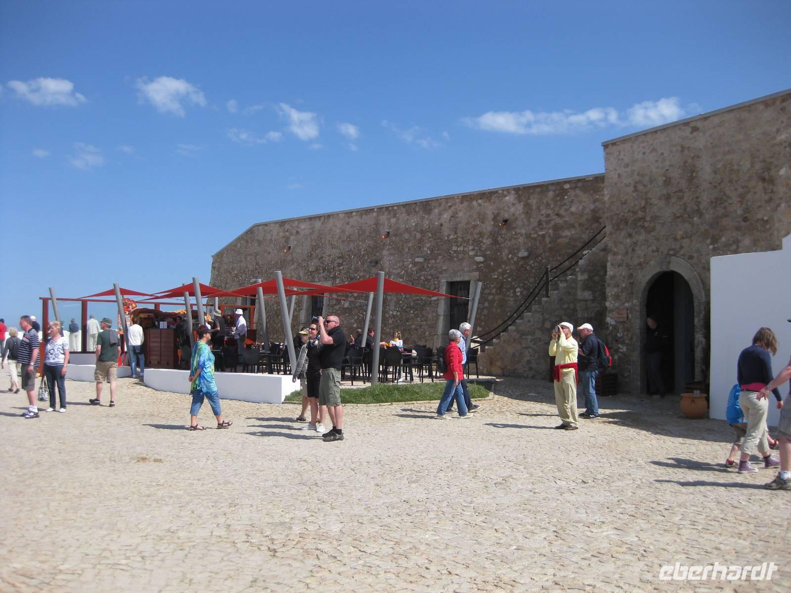 Um 9.00 Uhr starten wir heute zusammen mit unserem Reiseleiter Victor zum fakultativen Ausflug zum Cabo de Sao Vicente und nach Lagos. Fast alle Gäste kommen mit. Wir fahren mit einem anderen örtlichen Bus. Zuerst fahren wir durch die verschiedenen Ortsteile von Albufeira und dann weiter an der Küste entlang bis zum Cabo de Sao Vicente, der südwestlichsten Spitze von Europa, dem "Ende der Welt". Hier gibt es auch eine mobile Imbissbude mit der "letzten Bratwurst vor Amerika". Am Cabo de Sao Vicente befindet sich natürlich ein Leuchtturm. Die Reste einer kleinen Festung sind auch noch da, sie bieten heute einer kleinen Snackbar Platz. Und natürlich gibt es tolle Aussichtsblicke auf die Küste.
