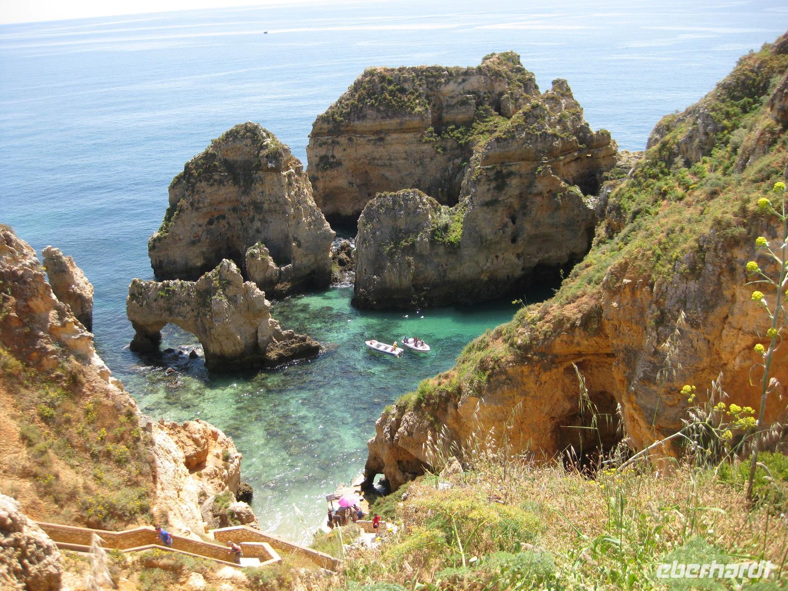 Dann fahren wir nach Lagos. Unterwegs stoppen wir an der Fortaleza von Sagres, wo verneintlich die Nautikschule von Heinrich dem Seefahrer war. Von hier hat man auch einen tollen Blick landeinwärts. Dann geht es weiter bis zur südlichen Landspitze von Lagos, dem Ponta da Piedade. Victor zeigt uns die Stellen, von denen aus wir einen atemberaubenden Blick auf die bizarren, zerklüfteten, und grottenzerfurchten Felsen haben - einfach toll.