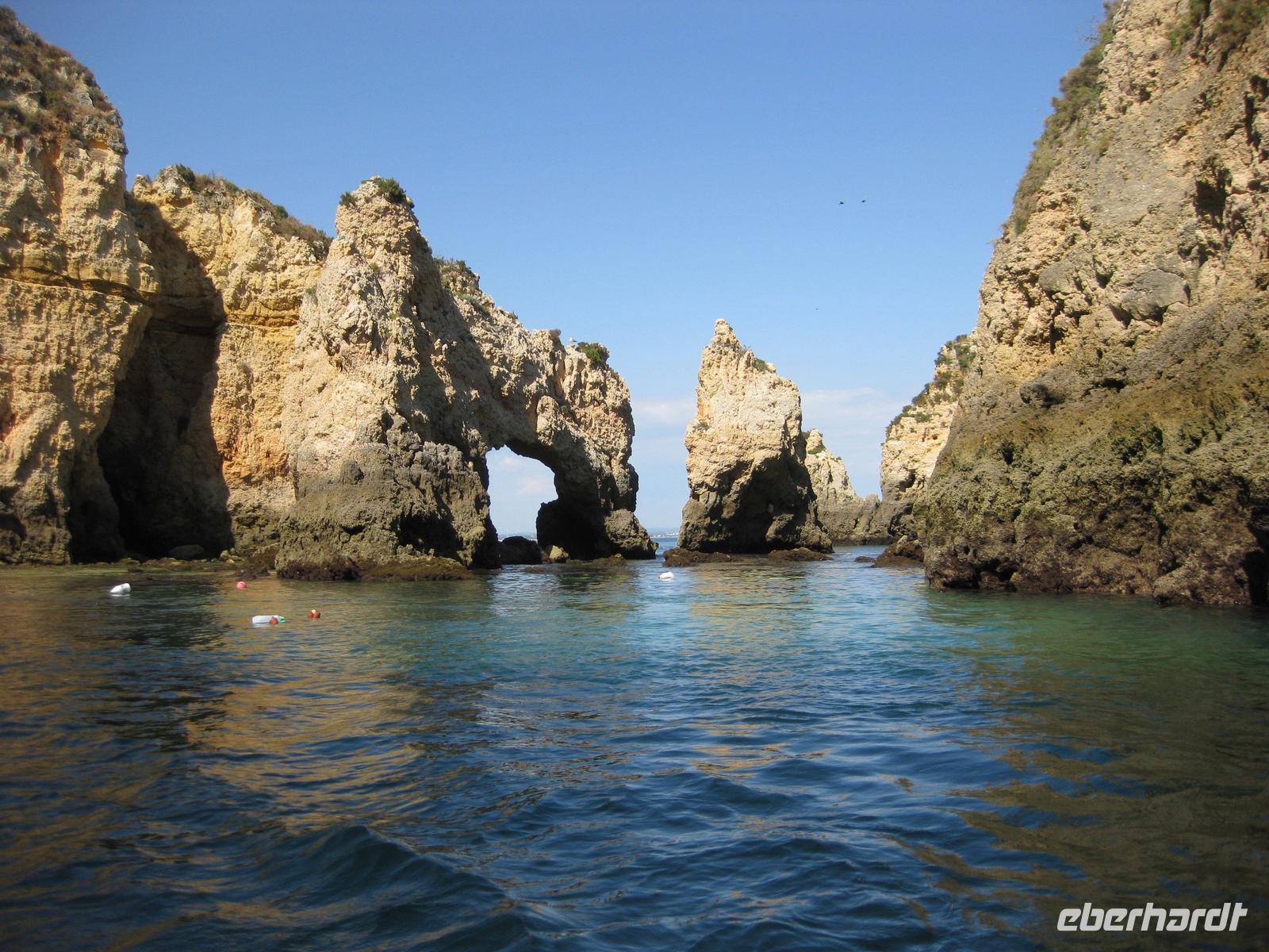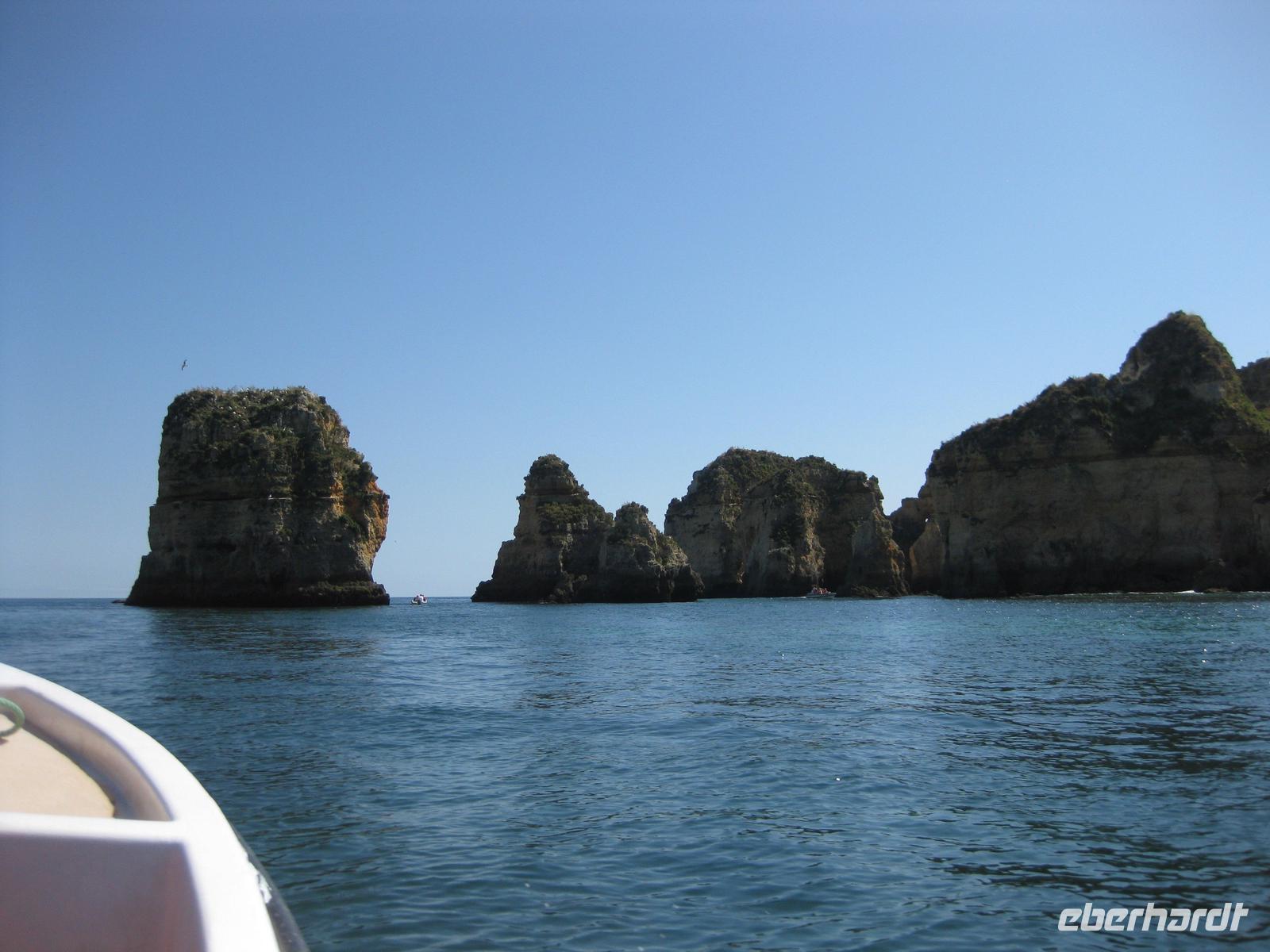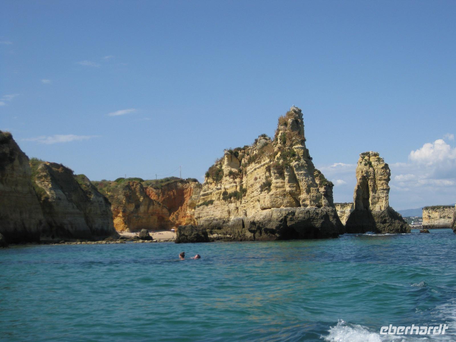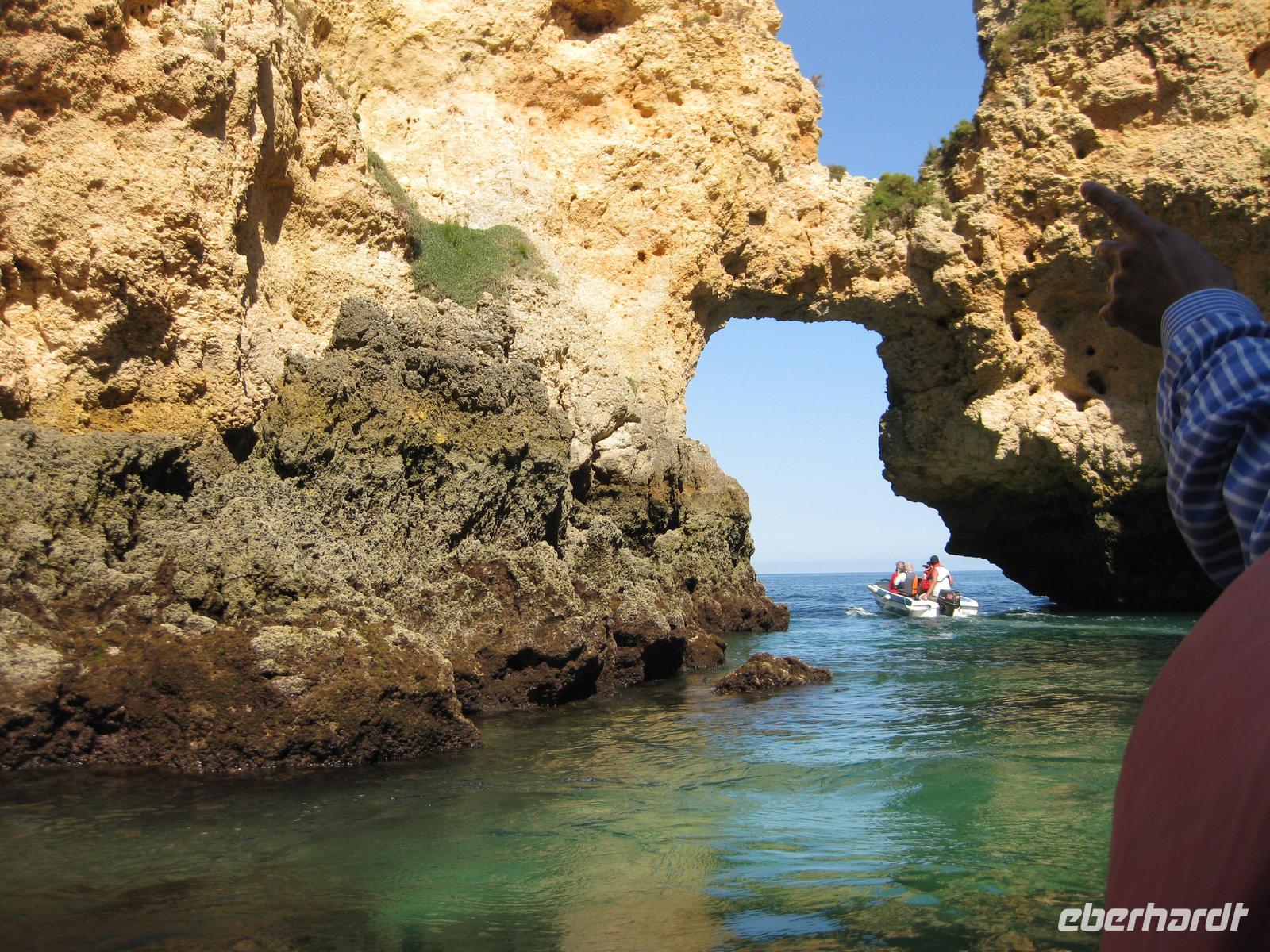 In der Stadt Lagos machen wir Mittag. Victor führt uns in ein Restaurant in der Fußgängerzone, wo wir vorzüglichen Fisch und Meeresfrüchte essen. Dann machen wir noch einen kleinen Stadtrundgang zu Fuß. Wir besichtigen die Kirche Igrea de Santo Antonio, eine der schönsten Kirchen Portugals. Auf der Praca do Infante befindet sich ein Denkmal für Heinrich den Seefahrer. Zum Abschluss unseres Aufenthaltes in Lagos machen wir noch eine Bootsfahrt zu den Felsen und Grotten am Ponta de Piedade. Die Bootsfahrt ist noch das I-Tüpfelchen zu diesem schönen Ausflug. Danach fahren wir wieder zum Hotel Alfamar zurück.
