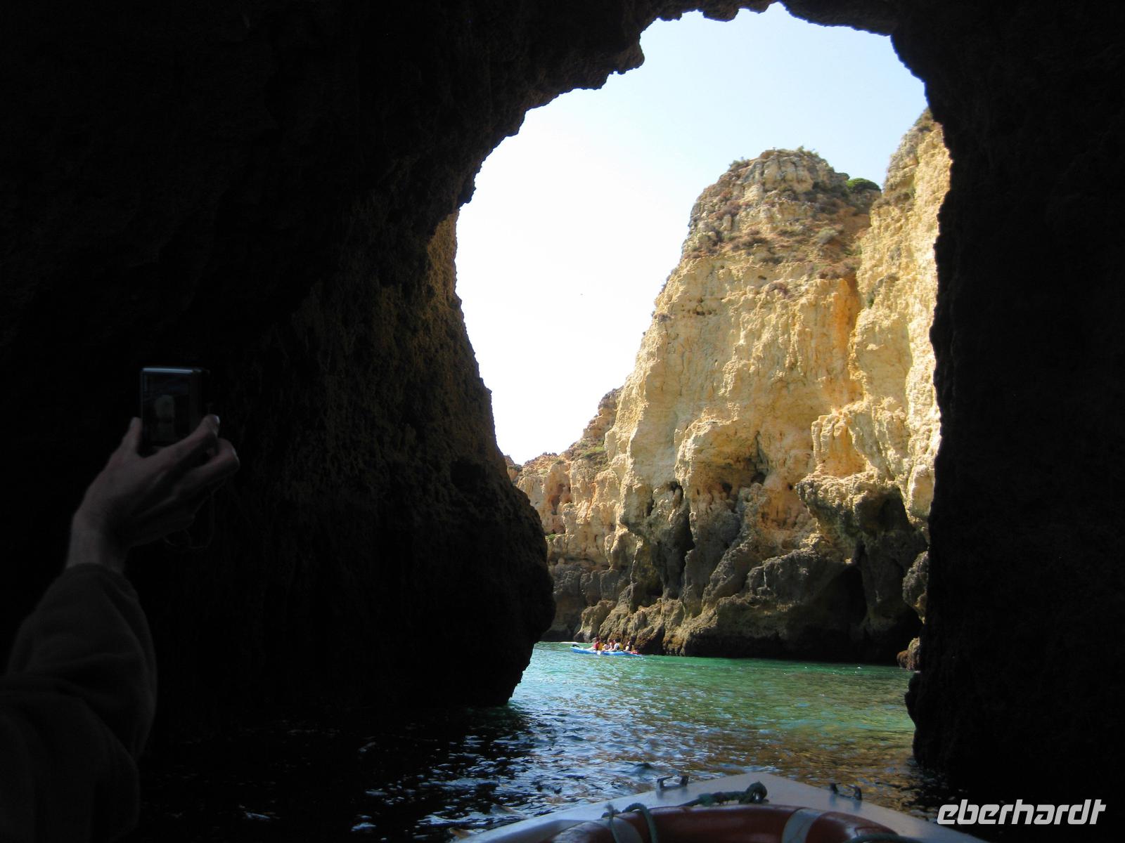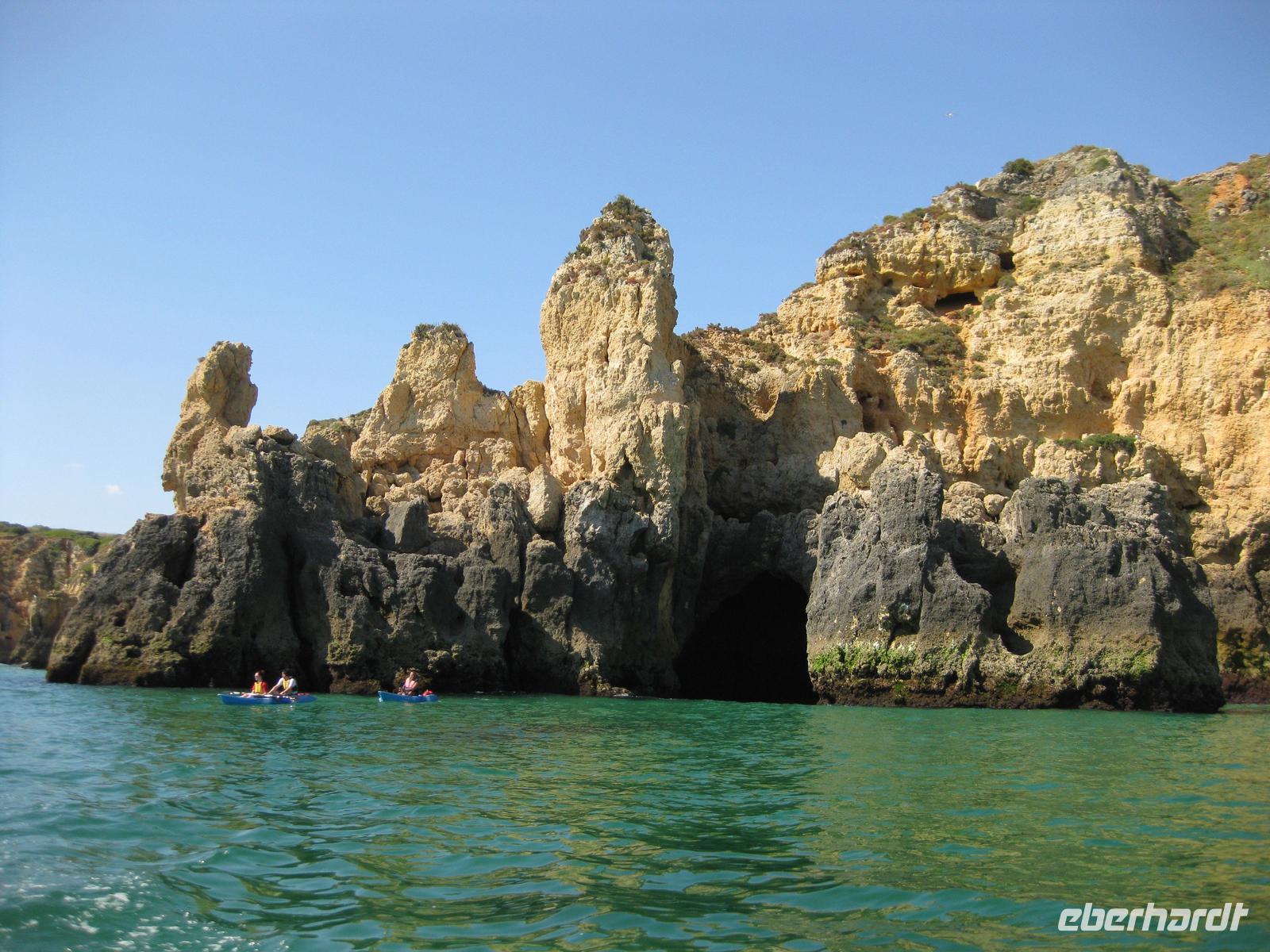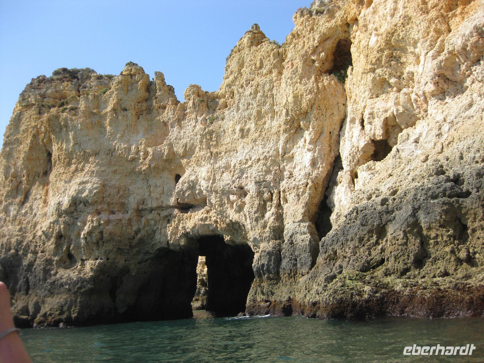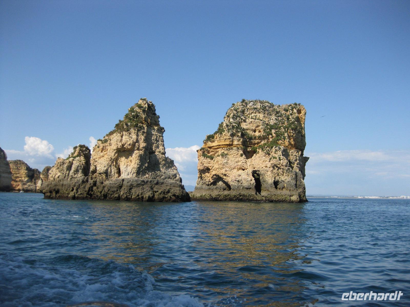 In der Stadt Lagos machen wir Mittag. Victor führt uns in ein Restaurant in der Fußgängerzone, wo wir vorzüglichen Fisch und Meeresfrüchte essen. Dann machen wir noch einen kleinen Stadtrundgang zu Fuß. Wir besichtigen die Kirche Igrea de Santo Antonio, eine der schönsten Kirchen Portugals. Auf der Praca do Infante befindet sich ein Denkmal für Heinrich den Seefahrer. Zum Abschluss unseres Aufenthaltes in Lagos machen wir noch eine Bootsfahrt zu den Felsen und Grotten am Ponta de Piedade. Die Bootsfahrt ist noch das I-Tüpfelchen zu diesem schönen Ausflug. Danach fahren wir wieder zum Hotel Alfamar zurück.
