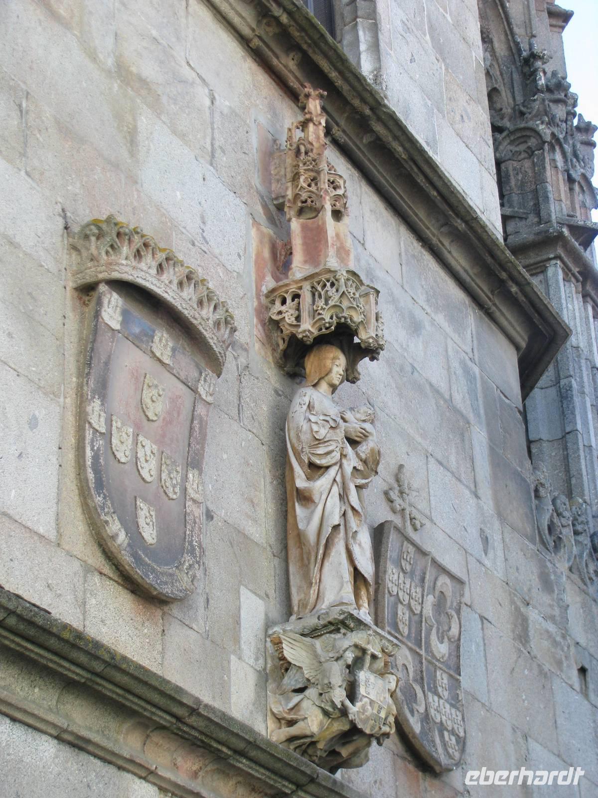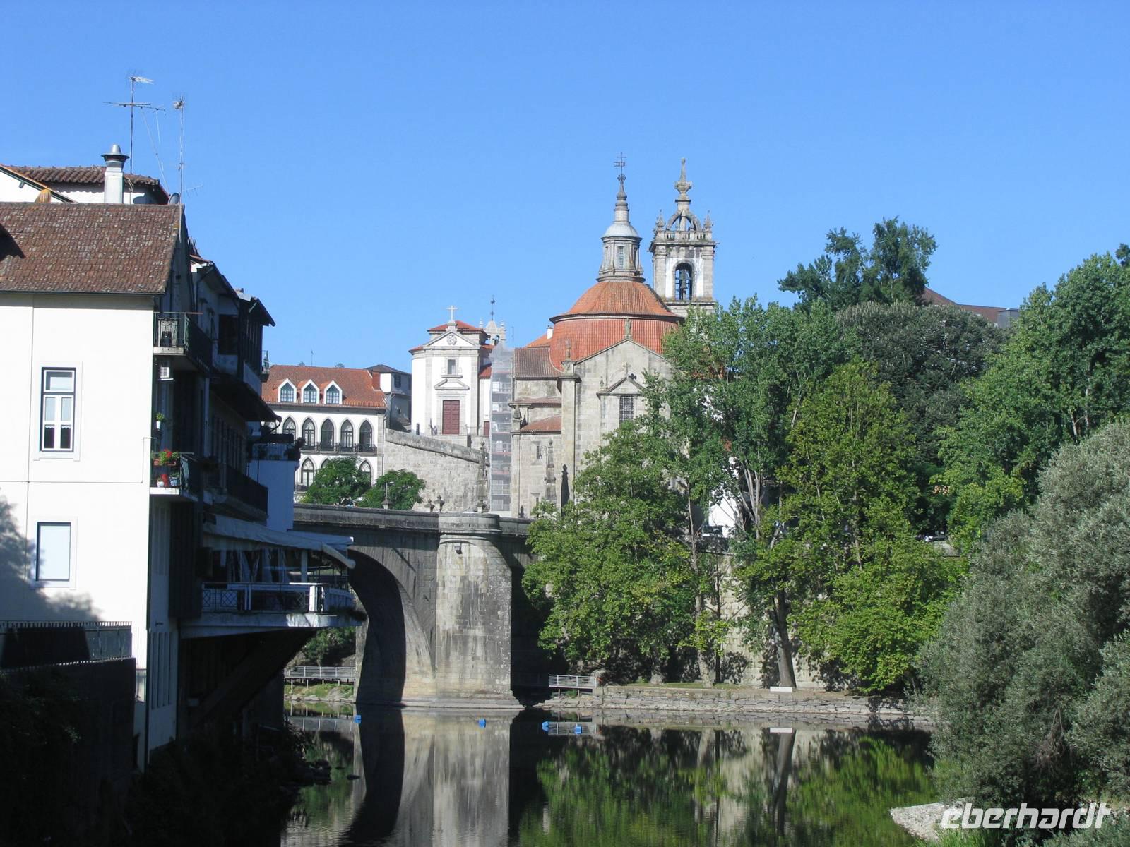 Heute heißt es Abschied nehmen von Porto und wir reisen mit Koffern weiter in Richtung Landesinnere, entlang des Dourotals. Erster Stopp ist im Städtchen Amarante. Wir spazieren durch die Stadt, entlang des Flusses Tamega über eine alte Römerbrücke zum Kloster des Sao Goncalo, zu dem viele ledige Frauen pilgern und ihn um einen Mann bitten - weshalb des armen Heiligen schon fast ein Fuß fehlt, weil er schon so abgegriffen ist.