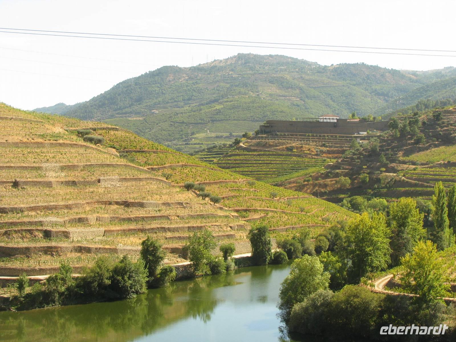 Gegen Mittag erreichen wir den heutigen Übernachtungsort in Peso da Regua. Es sind noch nicht alle Zimmer bezugsfertig und so stellen wir erst einmal die Koffer im Hotel unter und legen die Mittagspause ein. Bei Rückankunft im Hotel bekommt dann jeder seine Zimmerkarte ausgehändigt. Wir fahren mit dem Bus noch ein kleines Stückchen entlang des Douro zum Weingut „Quinta do Tedo". Auch hier werden wir durch die heiligen Hallen geführt und erhalten als Abschluss eine kleine Verkostung des Portweins. Wir reisen weiter bis Pinhao, einem verträumten Örtchen direkt am Douro. Mit Luisa gehen wir einen Geheimweg durch das 5-Sterne-Hotel Vintage Pinhao, am Flussufer entlang und genießen das portugiesische Flair. Mit der Eisenbahn fahren wir anschließend wieder zurück nach Peso da Regua, wo wir uns das Abendessen - diesmal in Menüform - schmecken lassen.