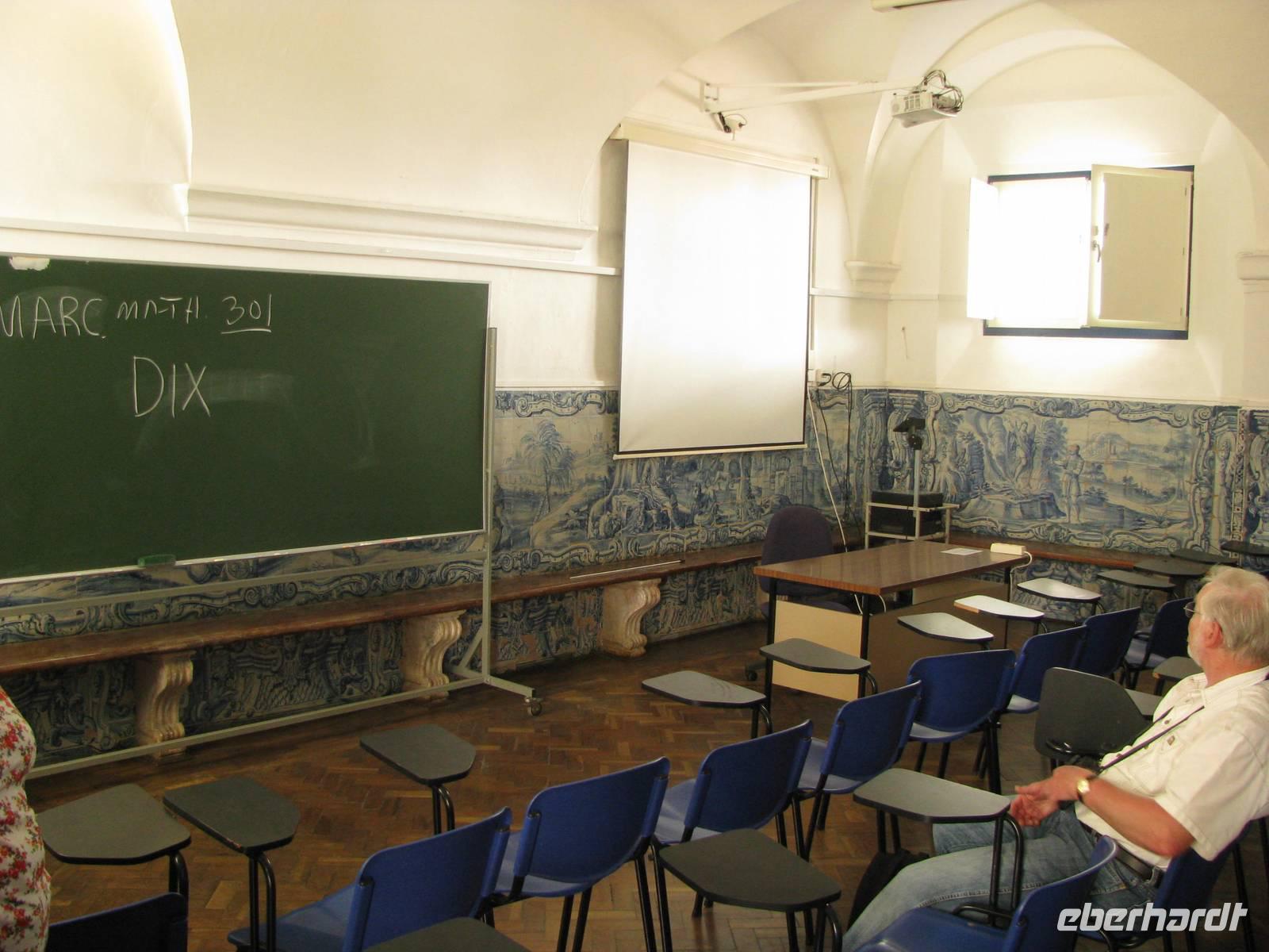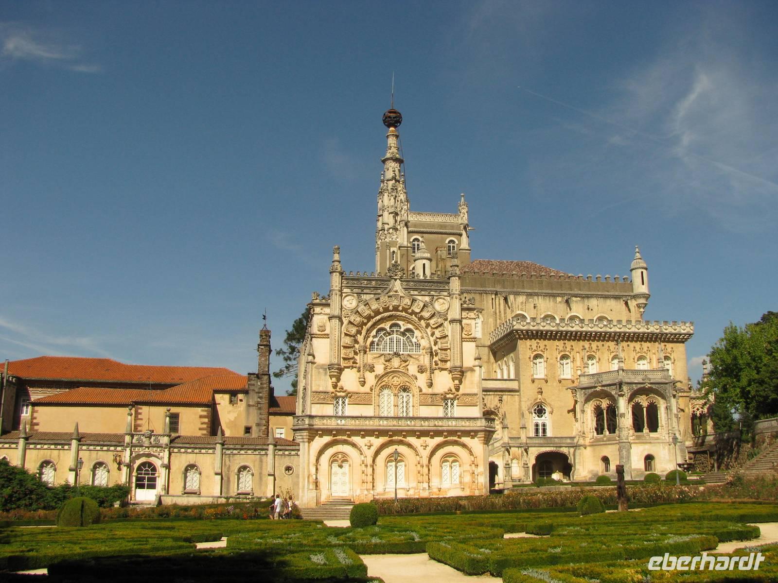 Der Tag beginnt mit einem Frühstück mit Blick auf die Weinhänge entlang des Flusses Douro. Wir reisen nach Viseu, wo wir die alte Kathedrale besichtigen. Auf dem Programm steht für heute Mittag Spanferkel - zwar sehen wir kein ganzes Schwein über dem Feuer bruzeln, aber wir lassen uns dennoch die leckere Mahlzeit schmecken - bei einem Gläschen Wein schmeckt es auch gleich doppelt so gut! :-) Anschließend statten wir den Gärten von Bucaco einen Besuch ab - eine der schönsten Parkanlagen des Landes. Heutiges Ziel und Übernachtungsort ist die Universitätsstadt Coimbra. Vitor fährt uns zum höchstgelegenen Punkt der Stadt - direkt zum Unigelände. Mit Luisa gemeinsam besuchen wir die heiligen Hallen, allen voran die prunkvolle und beeindruckende Bibliothek. Unser Hotel ist ein wenig außerhalb der Innenstadt gelegen und wir können uns an einem reichhaltigen Buffet sattessen.