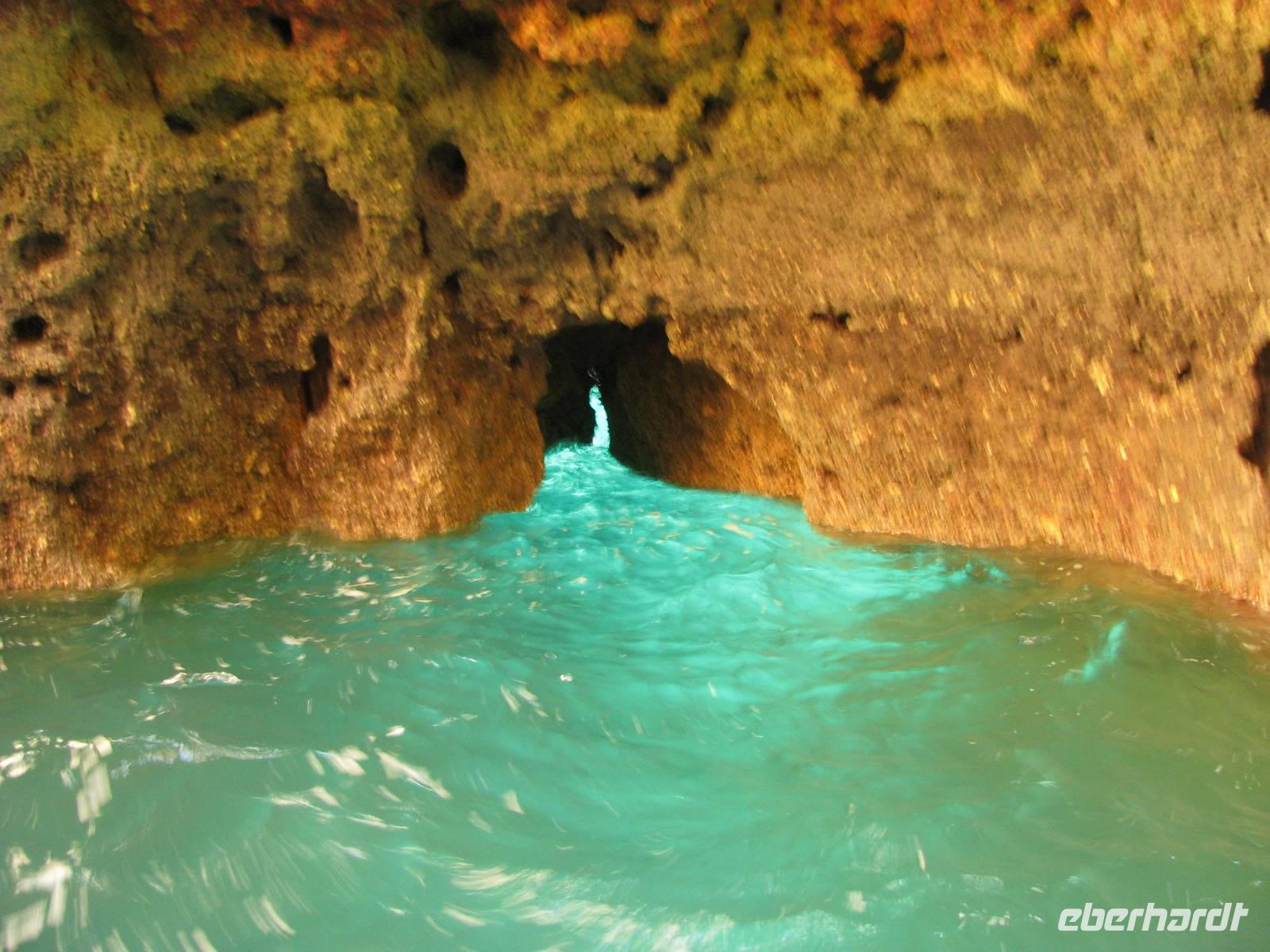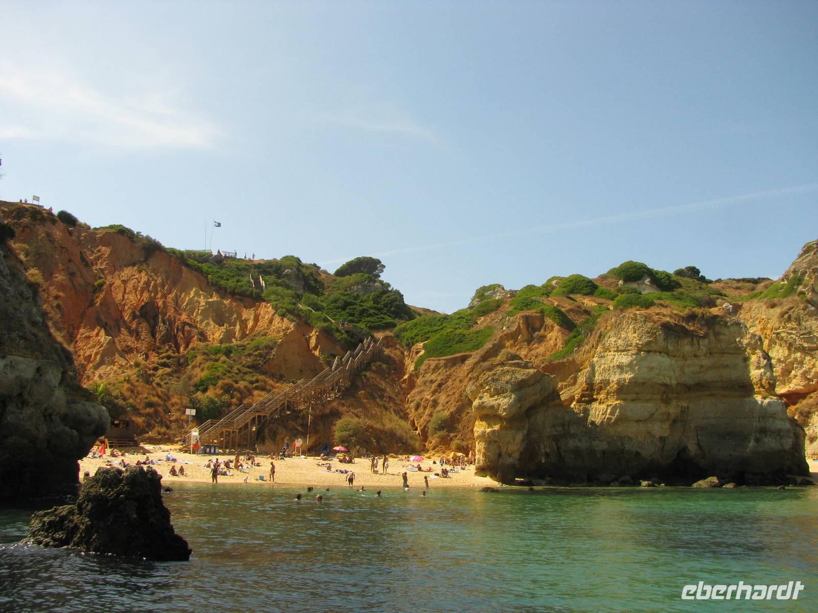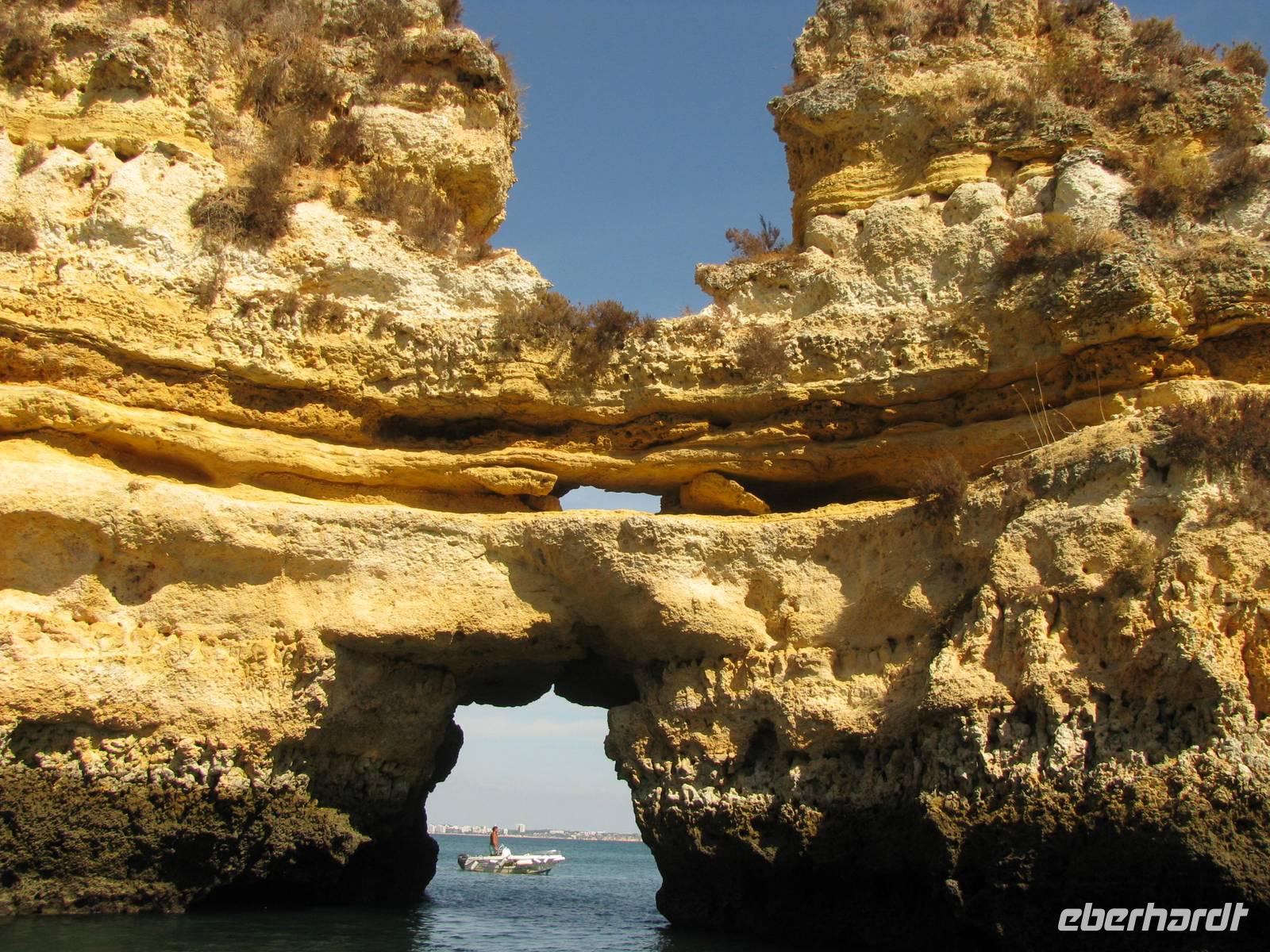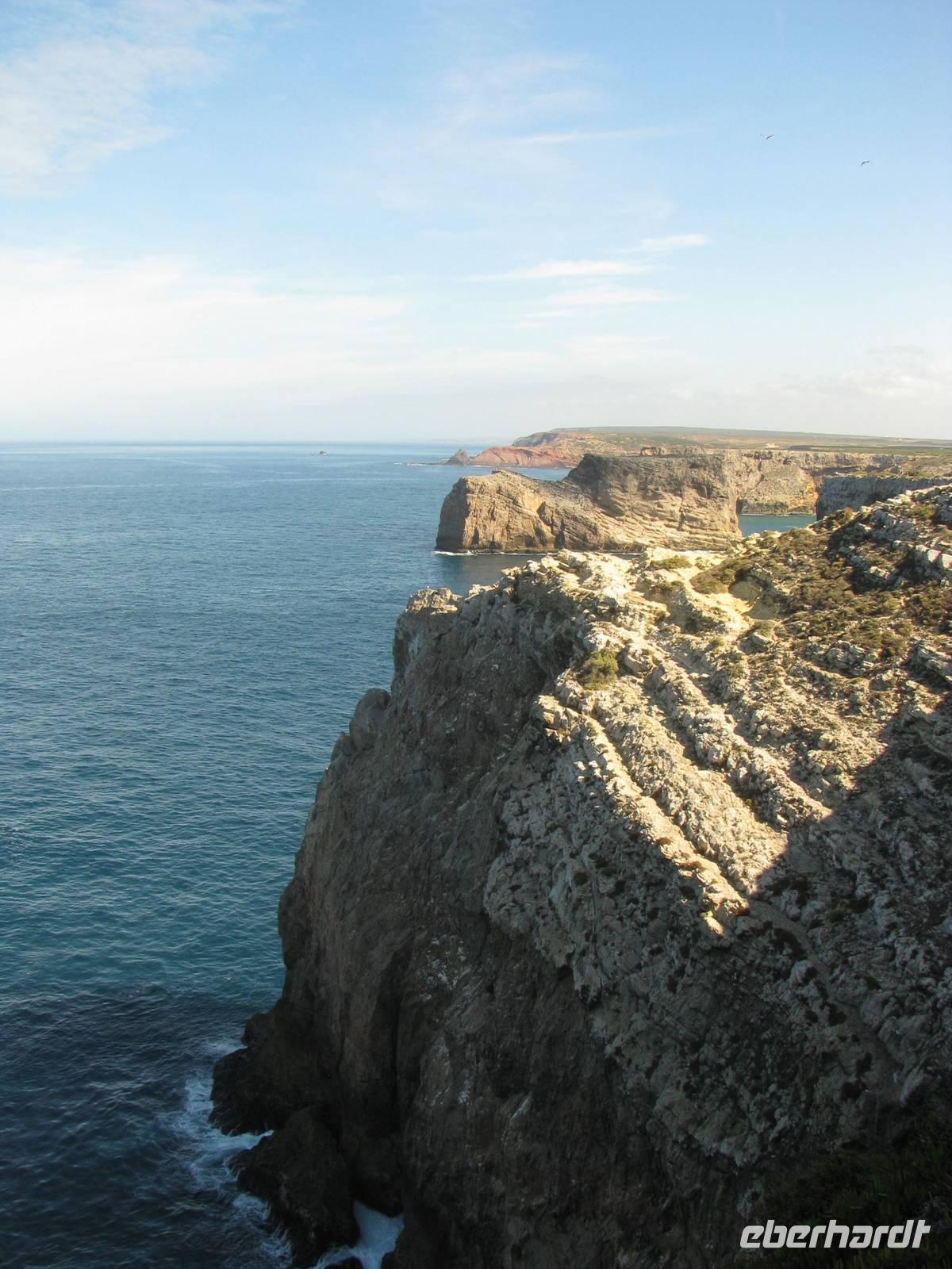Wer möchte, unternimmt heute einen fakultativen Ausflug zum Cabo de Sao Vicente. Fast alle Gäste machen mit und so brechen wir auf - diesmal zum südwestlichsten Punkt Europas. Hier befindet sich ebenfalls der lichtstärkste Leuchtturm des europäischen Festlandes. An einem Stand lassen wir uns die "letzte Bockwurst vor Amerika" schmecken und ich gebe eine letzte Runde aus der Kirschlikörs. Auf dem Rückweg zu unserem Hotel halten wir noch in der Stadt Lagos. Luisa bietet eine zusätzliche Bootsfahrt entlang der Felsenküste an und fast alle Gäste machen mit. Wir bereuen es nicht! Zusammen mit einem gewieften Bootsfahrer erkunden wir die verschiedenen Höhlen, "Kamine" und Felsformation an der Algarve. Am Nachmittag erreichen wir wieder unser Hotel und es ist an der Zeit für ein erfrischendes Bad im Atlantik!