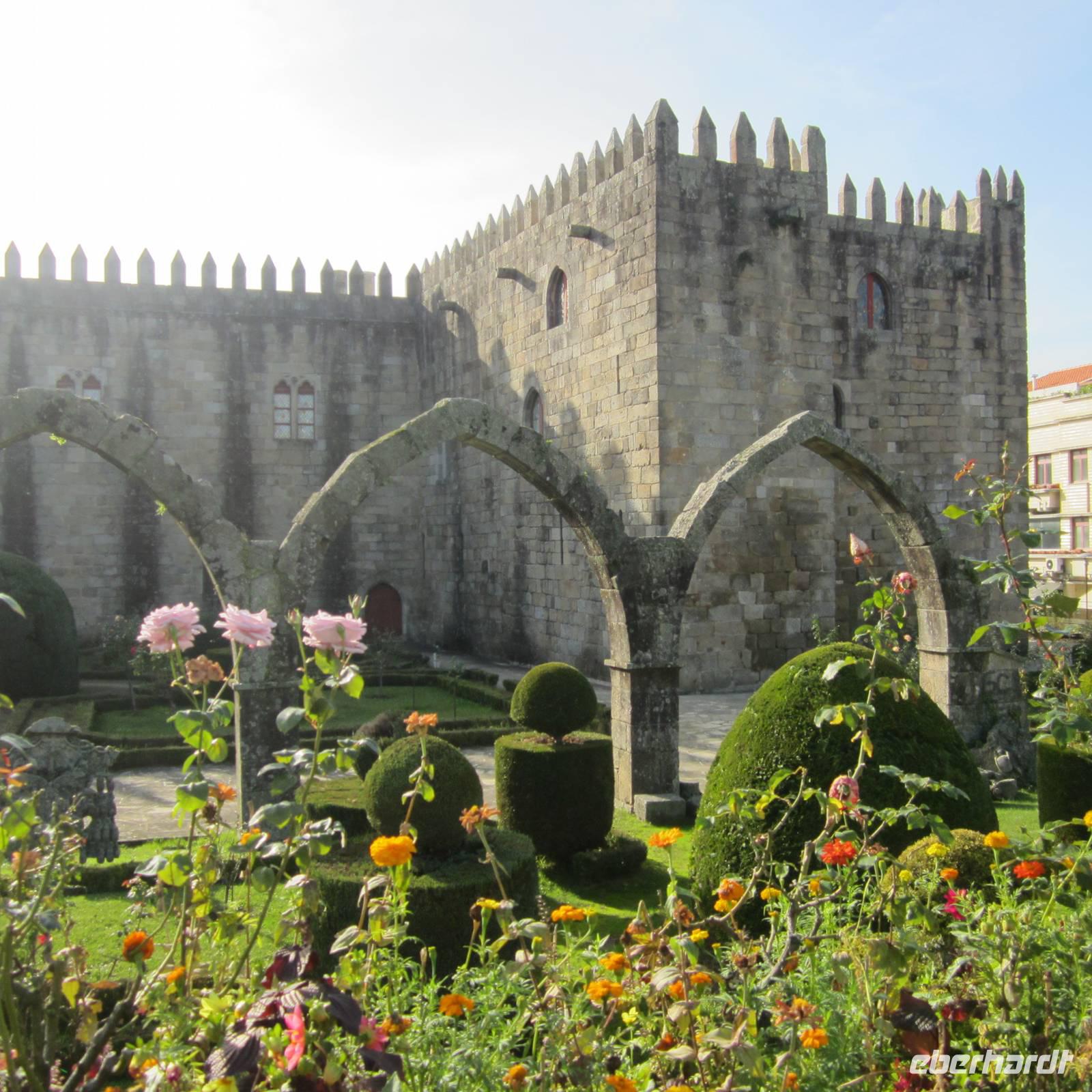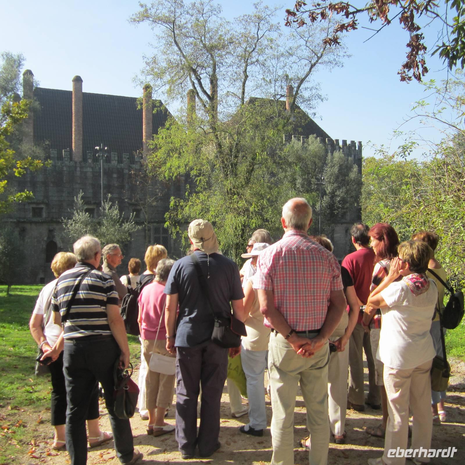 Nach dem Frühstück besuchen wir die „Sé do Porto", bevor es weiter ins Minho geht. Das ist die Region, die dreimal grün ist: die Landschaft, die Suppe und der Wein. In Guimaraes befindet sich die Wiege Portugals, deshalb ist diese Stadt unsere erste Station. 2012 war sie Weltkulturhauptstadt. Die Burganlage und die Stadtmauer erinnern an die Schutzpatronin der Stadt Mumadona Diaz und die Herzöge von Braganca, die im im 15. Jahrhundert hier ihren Sitz hatten. Der Palast des ersten Herzogs von Braganca wurde unter der Diktatur von Salazar zum Präsidentenpalast umgebaut.