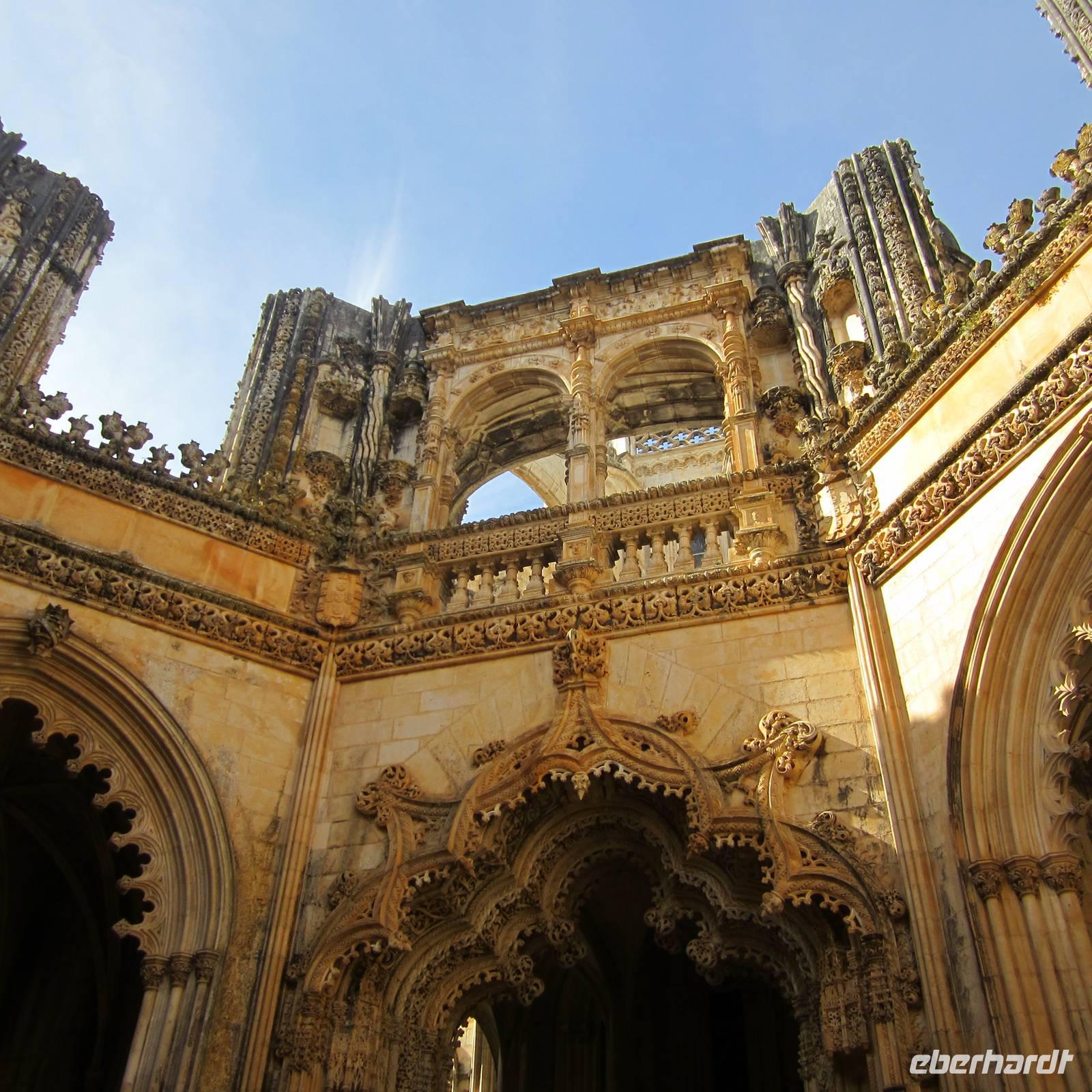 Die weitere Reise führt uns zum beeindruckenden Kloster Batalha, was so viel wie „die Schlacht" bedeutet. Es ist heute Portugals Denkmal für den Sieg über die Spanier. Joao I. begründete mit diesem Bau seine Königsdynastie Avis neu. Vor der gewaltigen Fassade des Klosters steht die Reiterstatue des siegreichen Feldherrn Nuno Álvares Pereira.