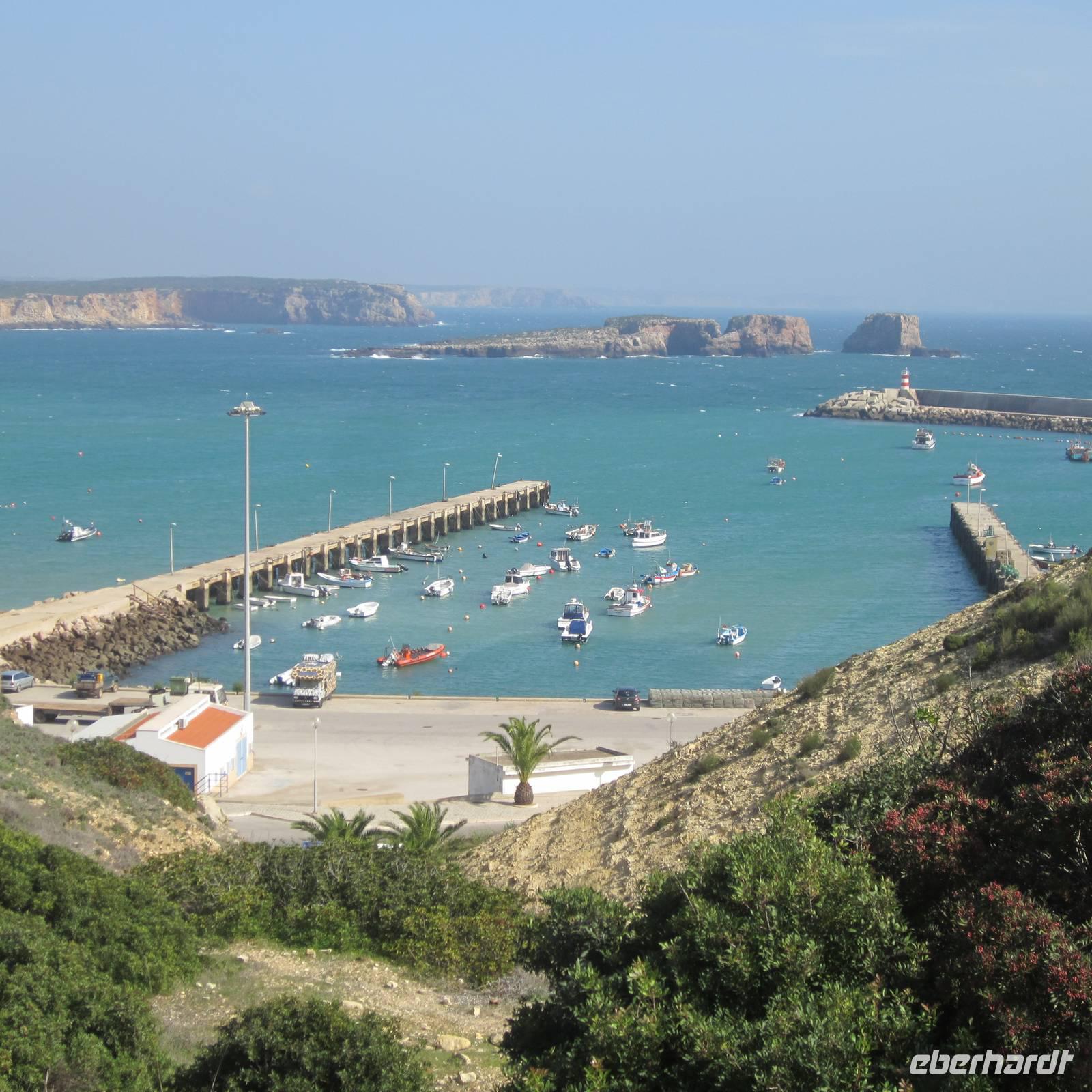 Die Natur zieht uns heute wieder in ihren Bann. Der alte Leuchtturm am Cabo de Sao Vicente und die wilde Steilküste verzaubern uns. Nach einem schönen Fotostopp halten wir an der Festung Sagres, wo Luisa für uns uns Prospekte über die Flora dieser Region besorgt. Am Hafen von Baleeira genießen wir eine tolle Aussicht bei einem weiteren Fotostopp.