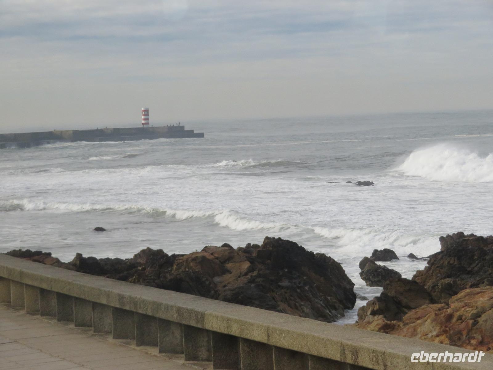 Nach einem ausgiebigen Frühstück ging es für uns durch die Stadt Porto. Zuerst fuhren wir mit dem Bus auf der längsten Straße von Porto, der Estrada Da Circunvalacao, zum Atlantik. Hier sahen wir die raue Küste und schauten fasziniert den großen Wellen zu. Wir fuhren weiter am Atlantik entlang bis hin zur Douro Mündung und weiter bis zur Abzweigung in die Innenstadt. Es ging vorbei am Hospital Santo António, der Universität, der Börse und dem Bahnhof bis hin zur Barockkirche Igreja dos Clérogos. Hier verließen wir den Bus und folgten Isabell zu Fuß durch die Stadt. Durch die Audio Guides konnten wir Isabel immer sehr gut hören und ihr auch gut folgen.