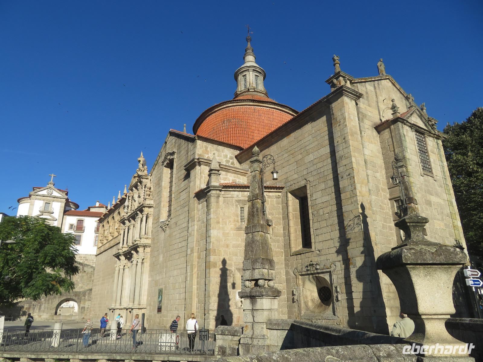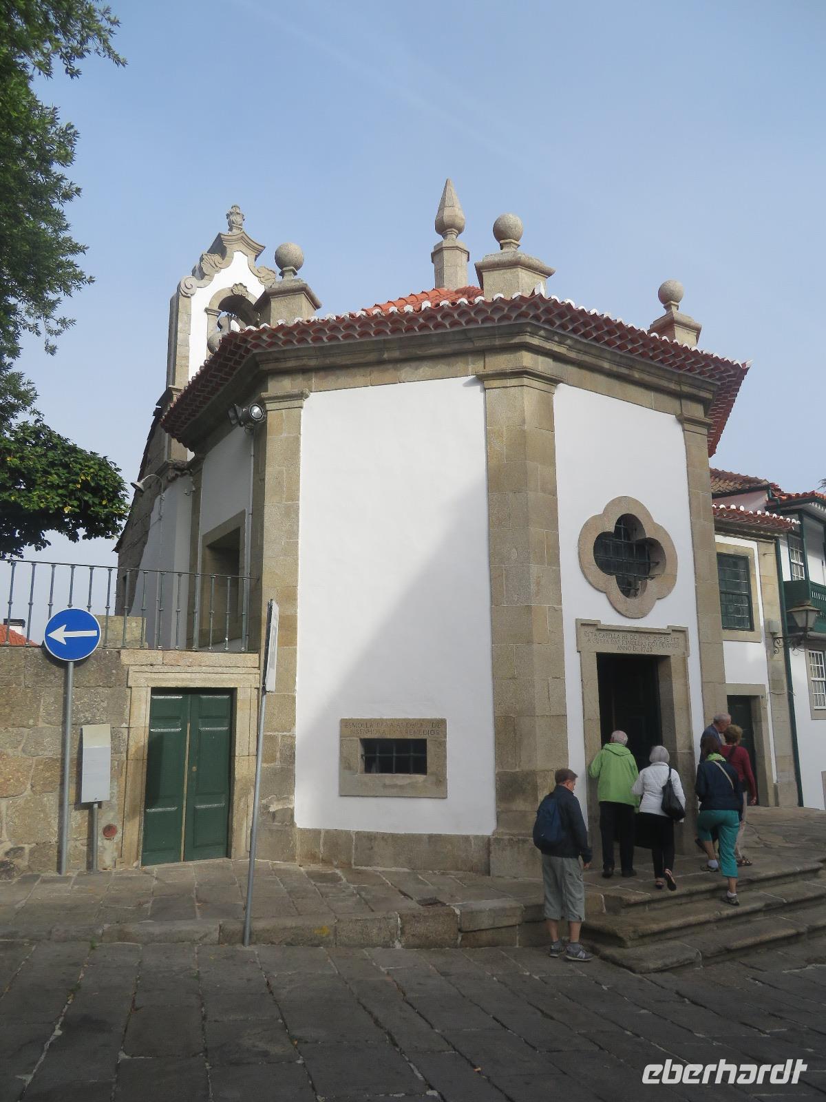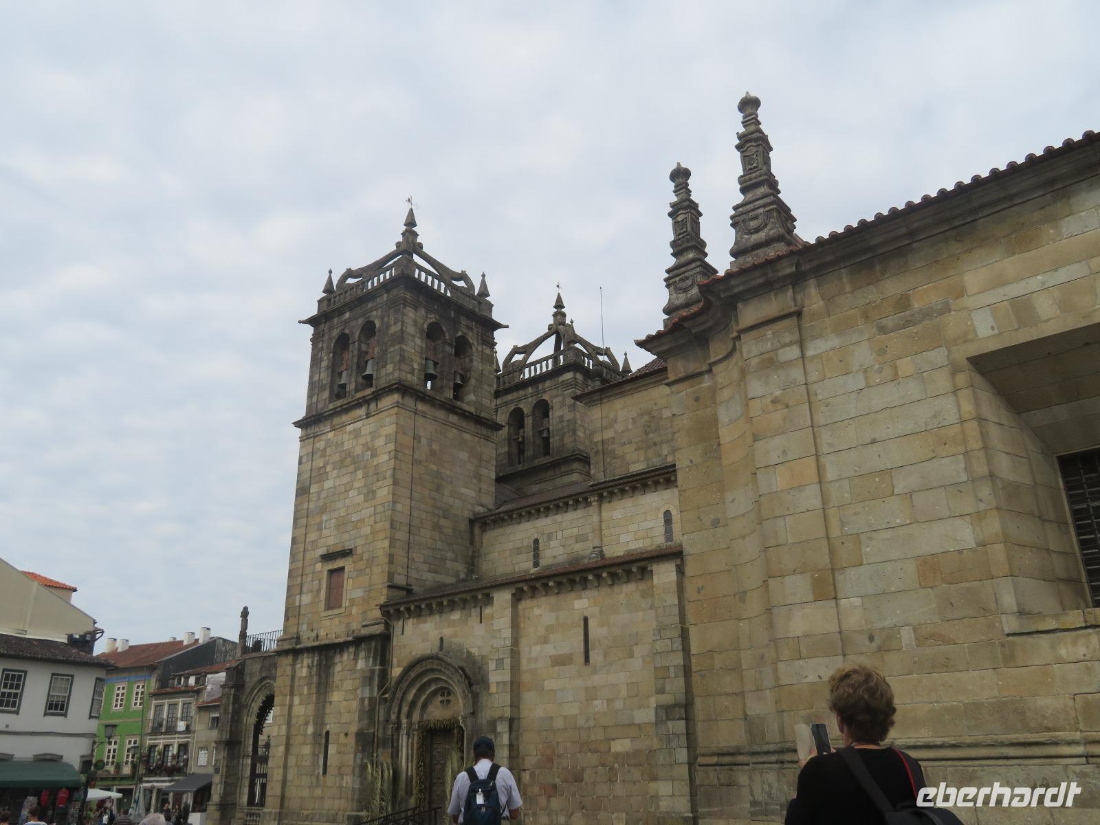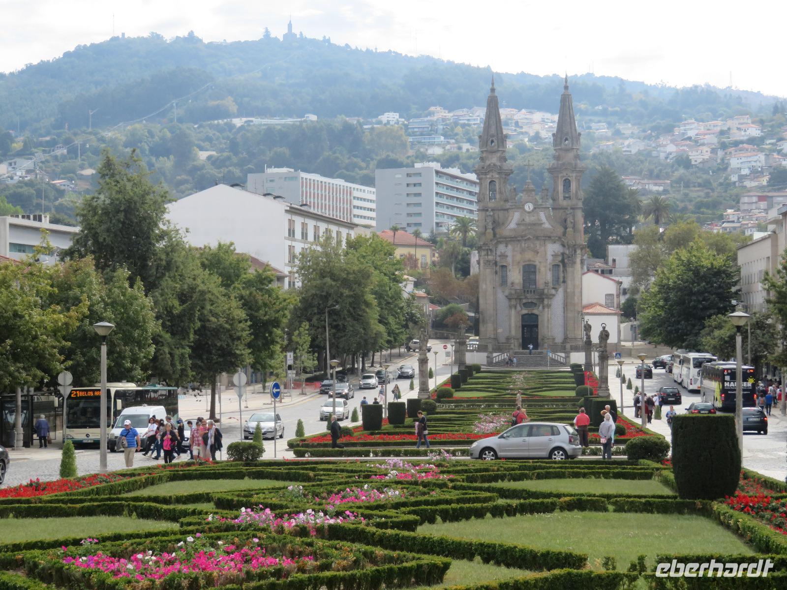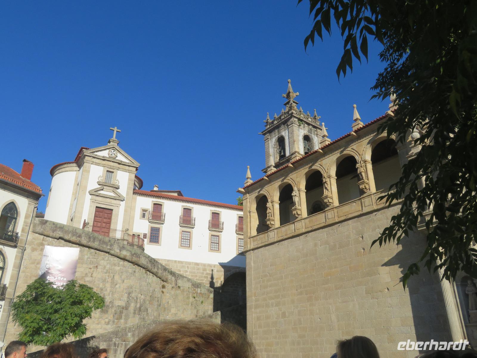 Hinter den Stadtmauern machen wir Stopp und begannen unseren Spaziergang in Richtung des romanischen Castells. Dieses Castell wurde im 10. Jh durch die Gräfin Mumadona errichtet und später mehrfach umgebaut und verstärkt. Vorbei am Palast Paco Ducal und der kleinen Kapelle „Capella Sao Miguel de Castelo" gehen wir in Richtung Altstadt. Wir nehmen die Rua de Santa Maria, die älteste und wohl schönste Straße der Stadt hinunter zum Platz Largo da Oliveira. Hier legten wir eine Pause ein um uns die Kollegiatskirche Igeraj de Nossa Senhora da Oliveira anzuschauen oder bei einem Kaffee das Treiben am Platz zu beobachten. Wir gingen wieder in Richtung Bus und genossen vorher noch einen Blick auf die Barockkirche Santos Passos.