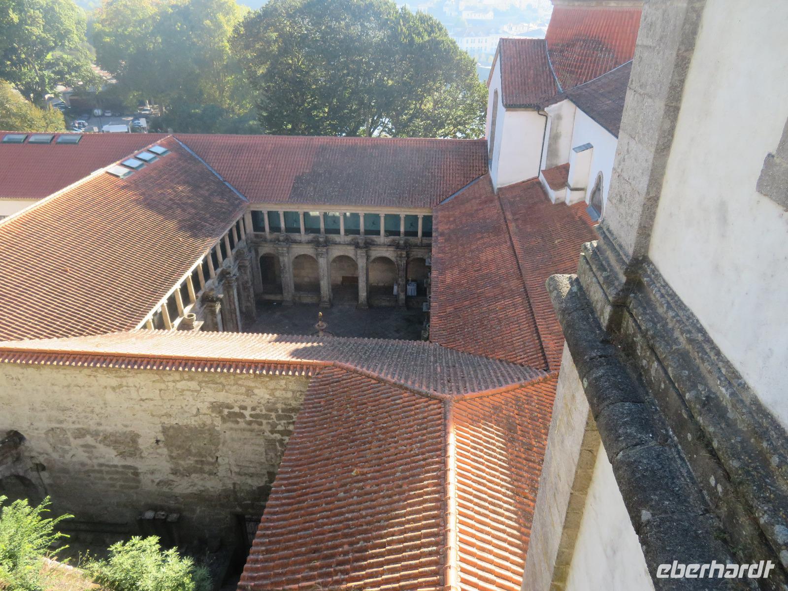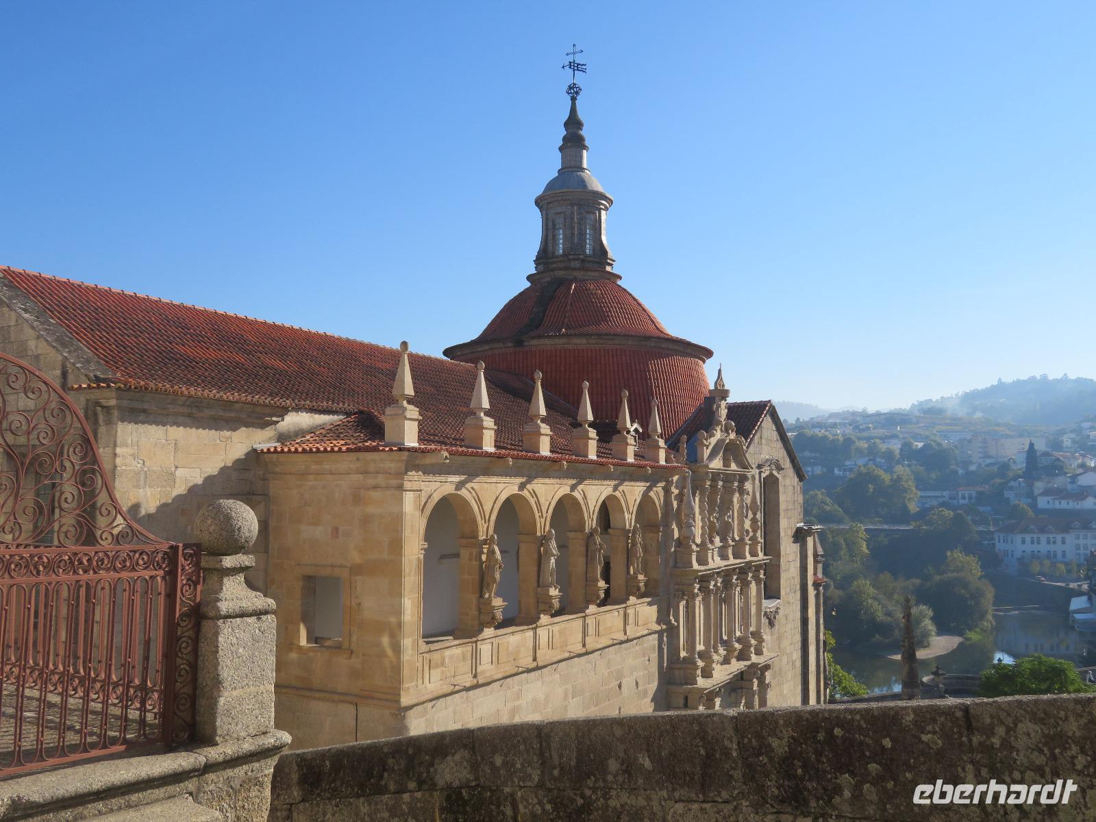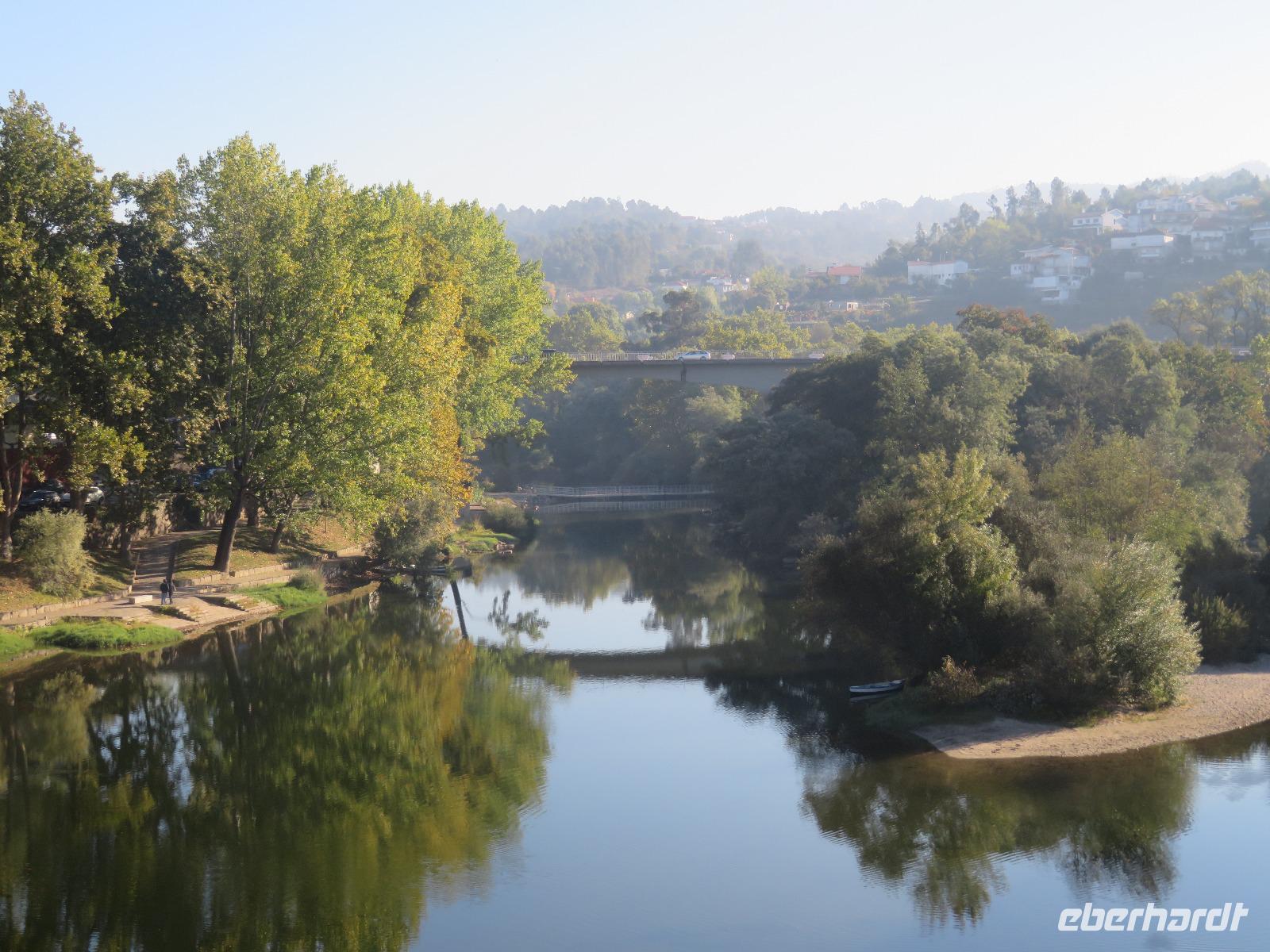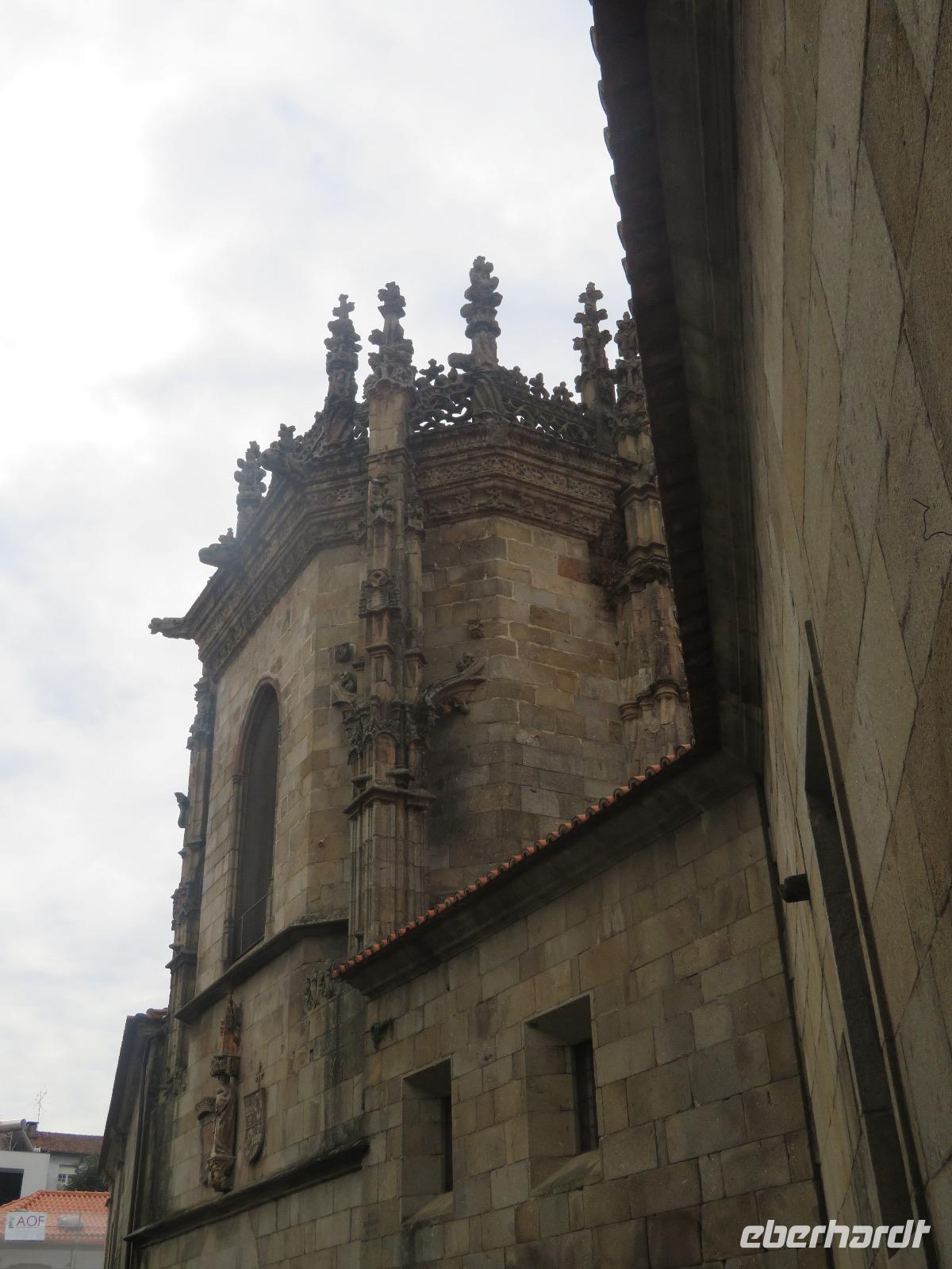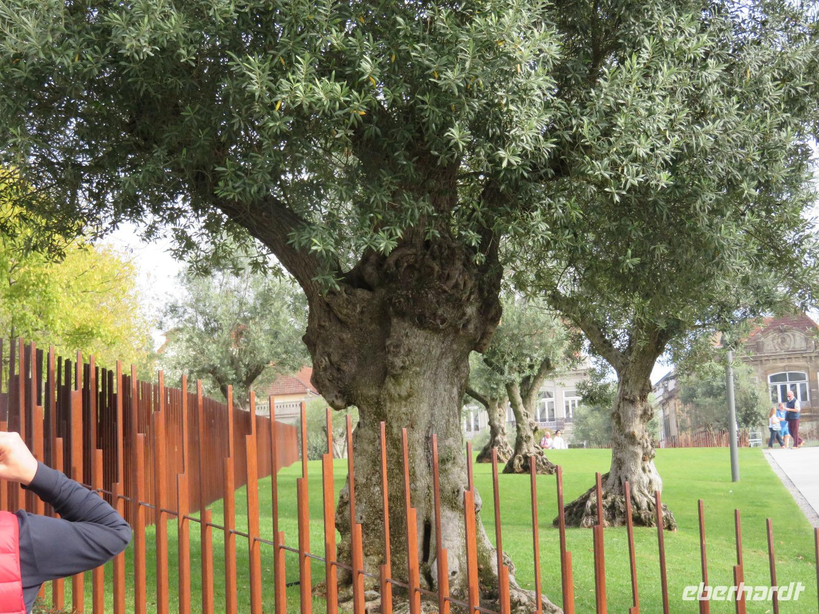 Hinter den Stadtmauern machen wir Stopp und begannen unseren Spaziergang in Richtung des romanischen Castells. Dieses Castell wurde im 10. Jh durch die Gräfin Mumadona errichtet und später mehrfach umgebaut und verstärkt. Vorbei am Palast Paco Ducal und der kleinen Kapelle „Capella Sao Miguel de Castelo" gehen wir in Richtung Altstadt. Wir nehmen die Rua de Santa Maria, die älteste und wohl schönste Straße der Stadt hinunter zum Platz Largo da Oliveira. Hier legten wir eine Pause ein um uns die Kollegiatskirche Igeraj de Nossa Senhora da Oliveira anzuschauen oder bei einem Kaffee das Treiben am Platz zu beobachten. Wir gingen wieder in Richtung Bus und genossen vorher noch einen Blick auf die Barockkirche Santos Passos.