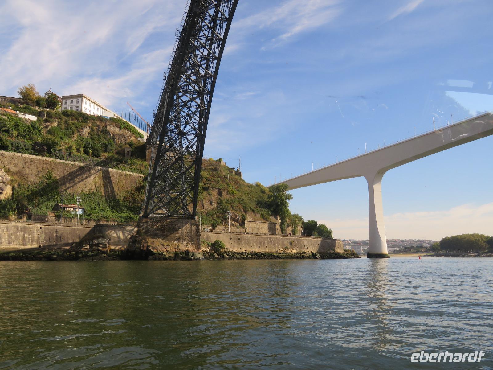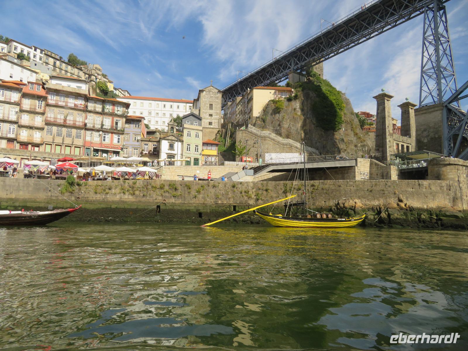 Wir spazierten weiter bis zur Kathedrale und anschließend durch kleine Gassen hinunter zum Douro. Unser nächstes Ziel war eine Schifffahrt auf dem Douro. Inzwischen ist die Gegend etwas bekannter und wir erkennen die einen oder anderen Gebäude wieder. Das Boot fuhr bis zur Brücke Ponte de S. Joao und zurück auf der anderen Seite bis zur Mündung in den Atlantik.