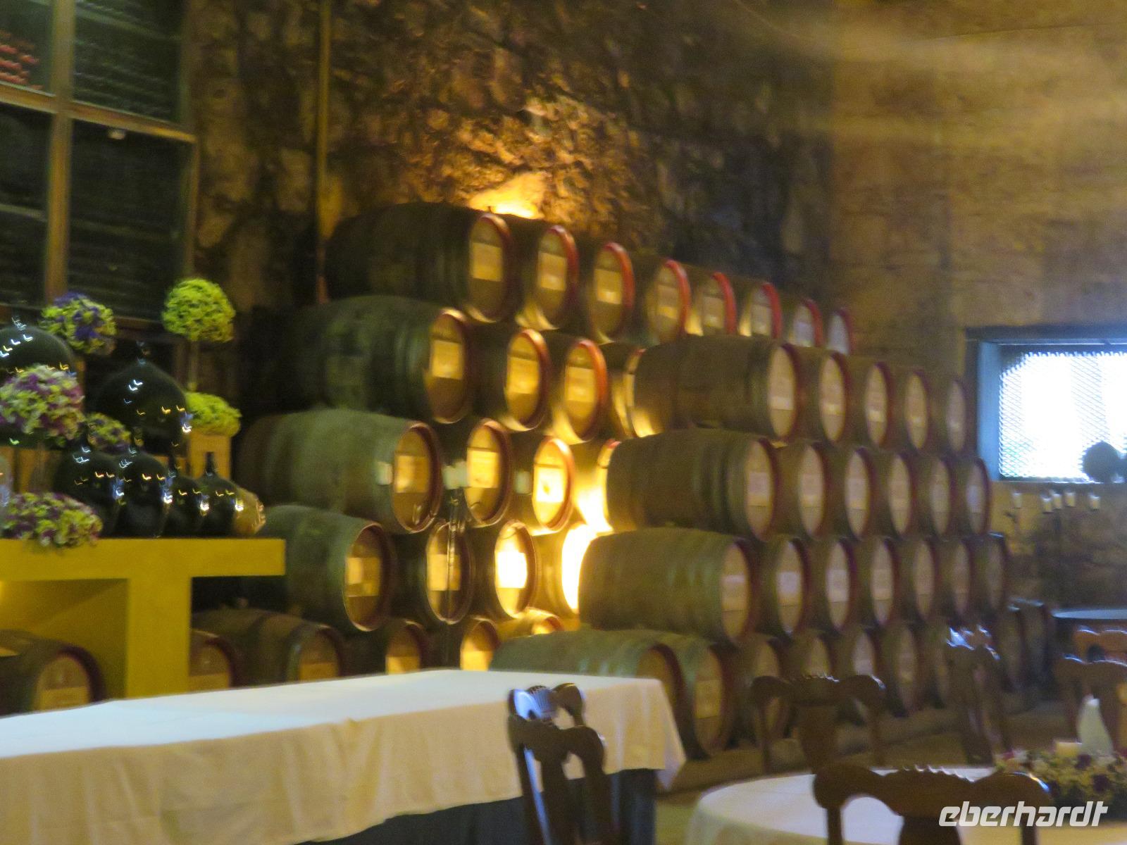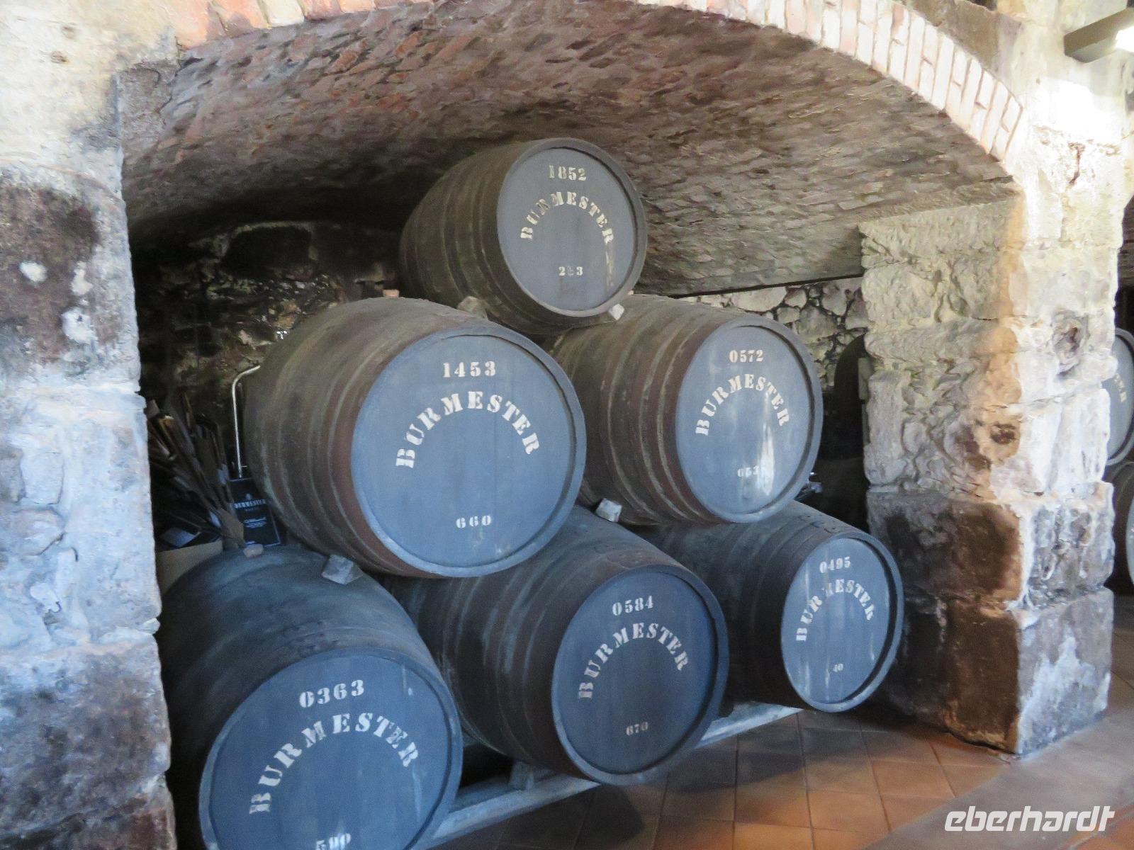 Nach einer ausgiebigen Mittagspause überquerten wir zu Fuß die Brücke Ponte D. Luis 1 um zur anderen Seite nach Vila Nova de Gaia zu gelangen. Hier hatten wir in der Weinkellerei Burmester interessantes über den Portwein erfahren. Zum Beispiel über die verschiedenen Fässer, Farben des Portweines und natürlich deren Herkunft sowie die Lagerung in der Weinkellerei. Zu einer Kostprobe sagten wir nicht nein und so probierten wir einen White-Port und einen lohfarbenen Tawny-Port.