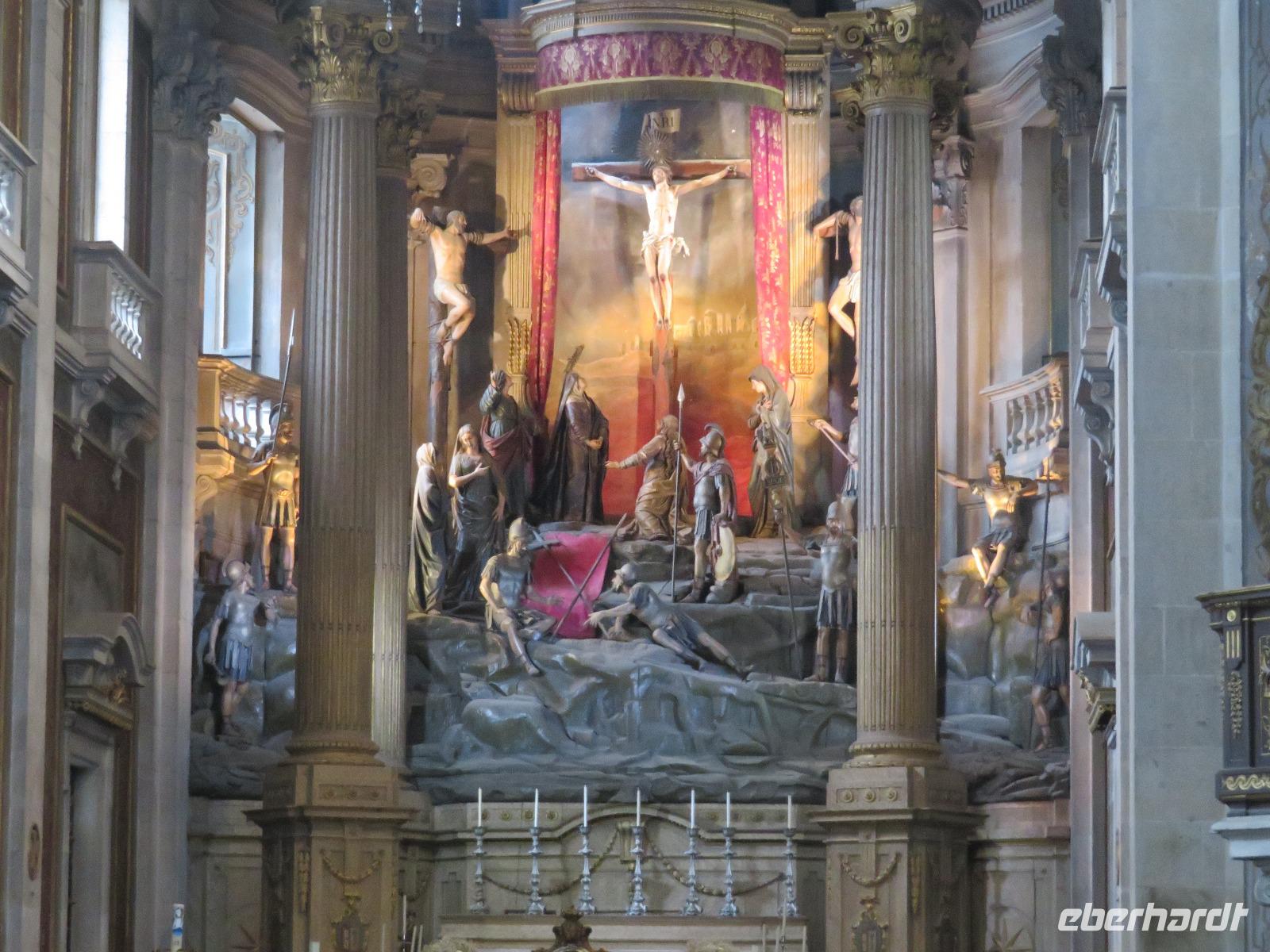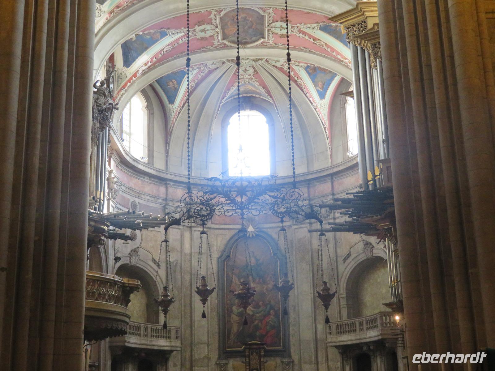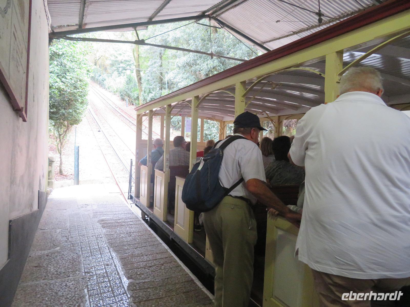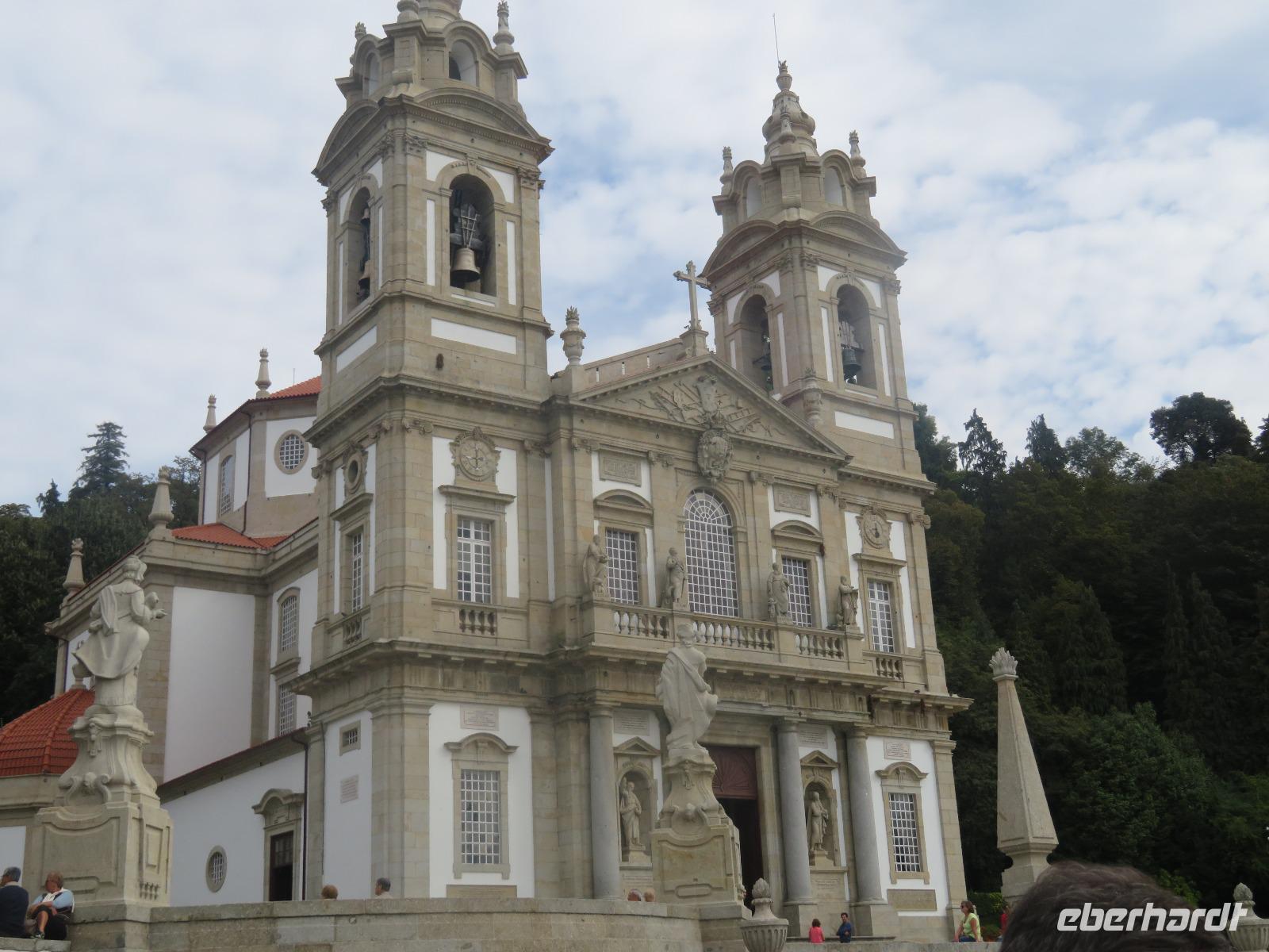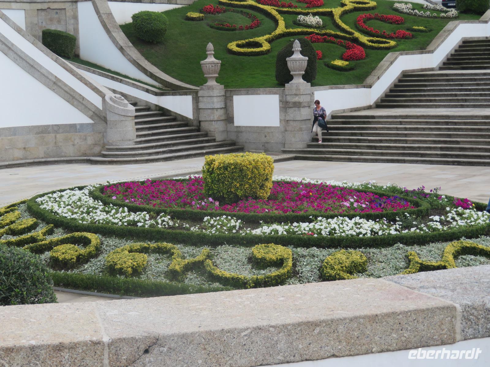 Weiter ging es mit dem Bus nach Braga. Wir spazierten vom Platz der Republik, vorbei am Palast des Erzbischofs mit seinem prächtigen Garten bis hin zum Domplatz. Wir besichtigten die Kathedrale und den Domplatz und machten anschließend im Ort eine ausgiebige Mittagspause. Einige von unseren Reisegästen probierten sogar den Stockfisch auf Bragaer Art. Unser letzter Halt für heute war die Wallfahrtskirche Bom Jesus. Eine riesige Treppe mit 800 Stufen führt hinauf zur Wallfahrtskirche. Wir aber nahmen den leichten Weg und fuhren mit der historischen Seilbahn hinauf. Diese historische Seilbahn ist eine Wasserbalastbahn. 3500 Liter Wasser werden in die obere Bahn gepumpt und mit dieser Last fährt diese Bahn hinab und zieht die andere Bahn den Berg hinauf. Oben Angekommen konnte jeder individuell die Wallfahrtskirsche Bom Jesus entdecken und auch einen Ausblick über die Stadt Braga genießen.