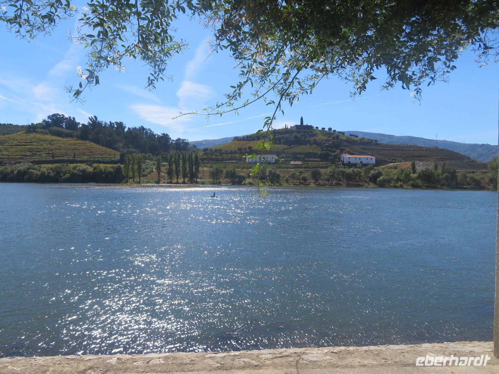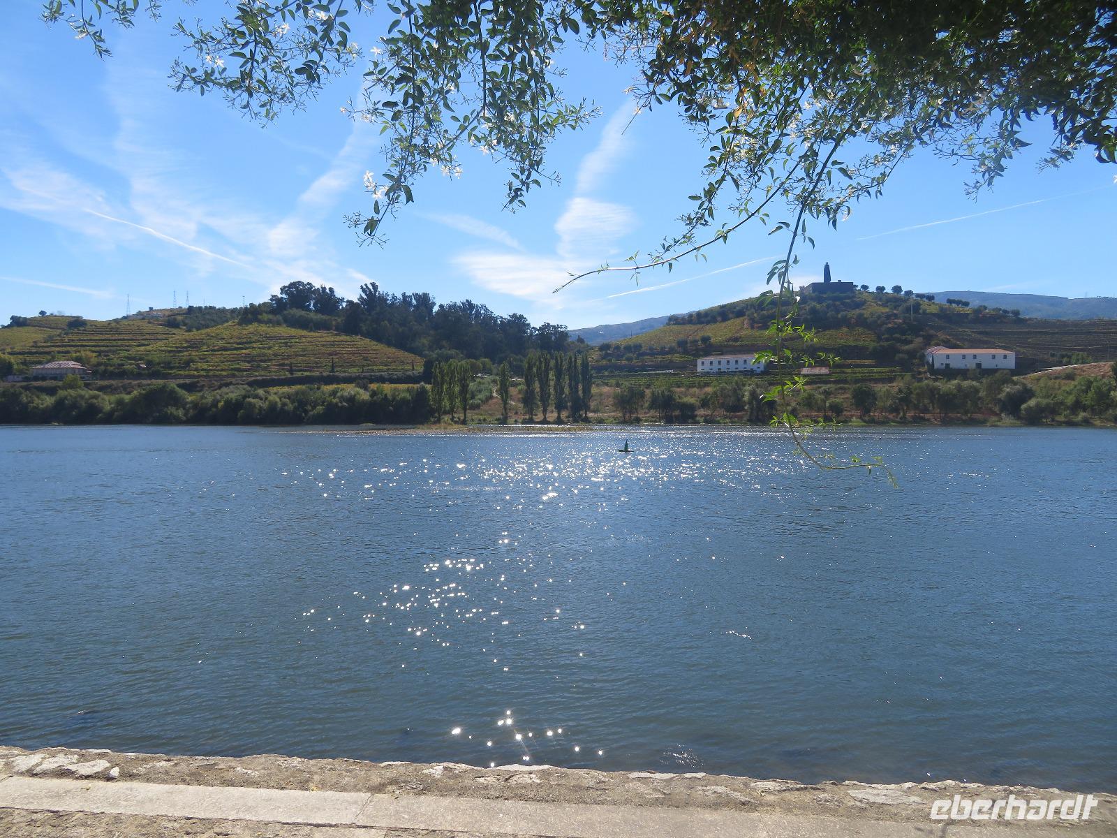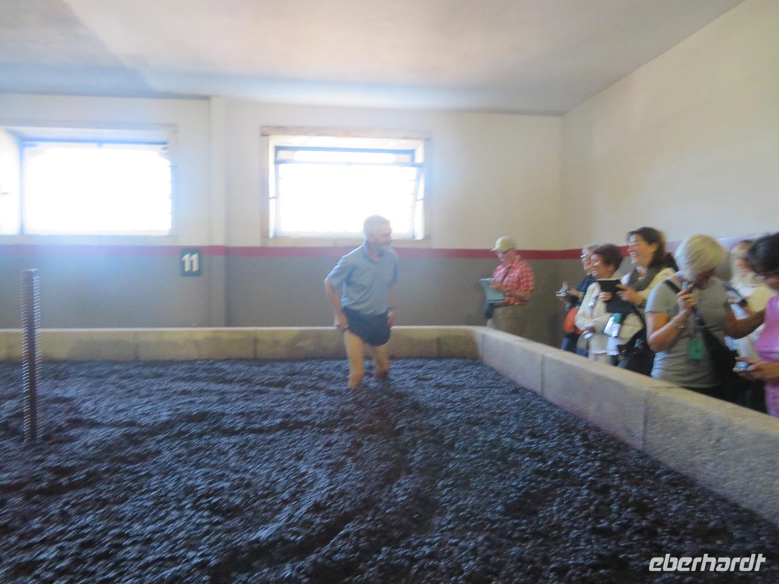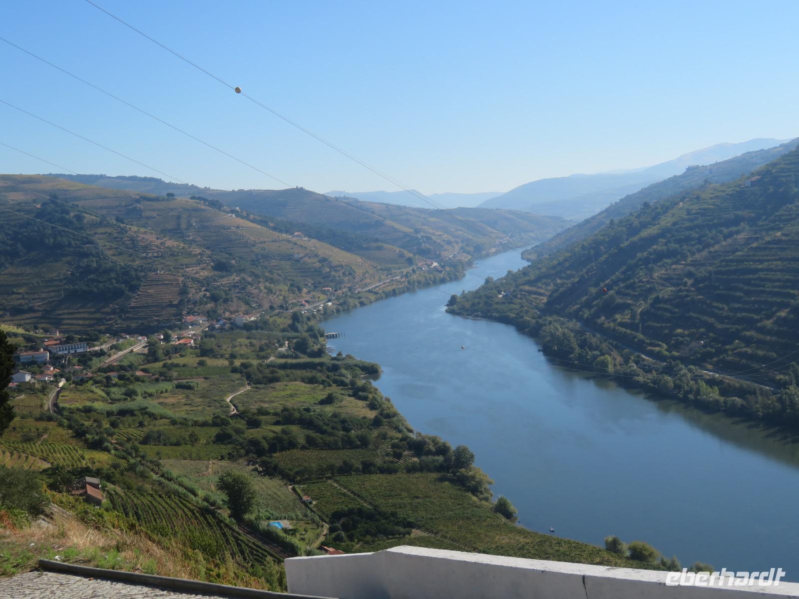 Nach einem zeitigen Frühstück verließen wir unser Hotel in Richtung Dourotal. Noch versteckte sich die Sonne hinter dickem Nebel aber es sollte trotzdem ein sonniger heißer Tag werden. Zuerst fuhren wir nach Amrante. Dort liefen wir durch den Ortskern und über die Römerbrücke zur Klosterkirche Sao Goncalo. Diese Römerbrücke wurde 1790 von Carlos de Cruz Amarante wieder aufgebaut nachdem diese 1763 eingestürzt war. Die Klosterkirche Sao Goncalo wurde 1540 von Joao III. und seiner Frau Catarina von Kastilien gegründet. Wir schauten uns individuell die Klosterkirche und ihren Klostergarten an bevor wir gemütlich zum Bus zurück spazierten. Nun fuhren wir in das Douro Tal. Während der Fahrt erzählte uns Isabell immer wieder interessante Dinge über das Gesundheitswesen, das Schulsystem, die Steuern, das Einkommen, die Arbeitslosigkeit aber auch über die Verkehrsmittel und den Verkehr in Portugal. Wir machten einen kurzen Fotostopp mit einem atemberaubenden Panoramablick über den Douro und die Weinberge. Anschließend ging es für uns weiter nach Peso da Régua. Wir fuhren an unserem Hotel für die Nacht vorbei über eine der Zahlreichen Brücken auf die andere Seite des Douros. Hier machten wir Halt an der Weinkellerei Quinta ta Pacheca in der unsere nächste kleine Führung stattfindet. Vorbei an großen Becken wo Touristen das stampfen der Trauben selber probierten, weiter hinab in den Weinkeller wo riesige Fässer mit dem Wein lagerten. Auch hier wird uns erzählt wie der Wein geerntet und verarbeitet wird. Auch über die verschiedenen Weinsorten auf dem Weingut erfahren wir viel Interessantes. Nach der ganzen Theorie durfte nun probiert werden. Alle Reisegäste durften 4 Weine probieren: einen Pacheca Colheita White und Red, einen Pacheca White Port und einen Pacheca Tawny Port 20 Anos. Nachdem wir den Wein genossen und ausgetrunken hatten gingen wir zurück zum Bus um mit dem Bus in den Ortskern von Peso da Regua zu fahren. Hier machten wir eine ausgiebige Mittagspause. Jeder wie er es mag, einige Reisegäste setzten sich in ein Restaurant, andere spazierten am Douro entlang oder man setzte sich einfach an den Douro und genoss die Sonne und das Treiben am Douro. Unser letzter Halt für heute war der Bahnhof in Pinhao. Nach einer 30 minütigen Fahrt entlang des Douros hielten wir am Bahnhof an. Der Bahnhof ist wunderschön mit Kachelgemälden verziert die die Geschichte des Weinanbaus, der Ernte und der Verarbeitung erzählen. Eigentlich hatten wir vor mit dem Regionalzug zurück nach Peso da Regua zu fahren aber leider machte uns der Fahrplan einen Strich durch die Rechnung. Wir ließen uns die Laune nicht verderben und fuhren mit dem Bus entlang des Douros zurück zum Hotel. Im Hotel eingecheckt hatte jeder bis zum Abendessen Freizeit. Ein sehr leckeres Abendessen erwartete uns heute und so ließen wir es uns bei einem Gläschen Wein gut schmecken.