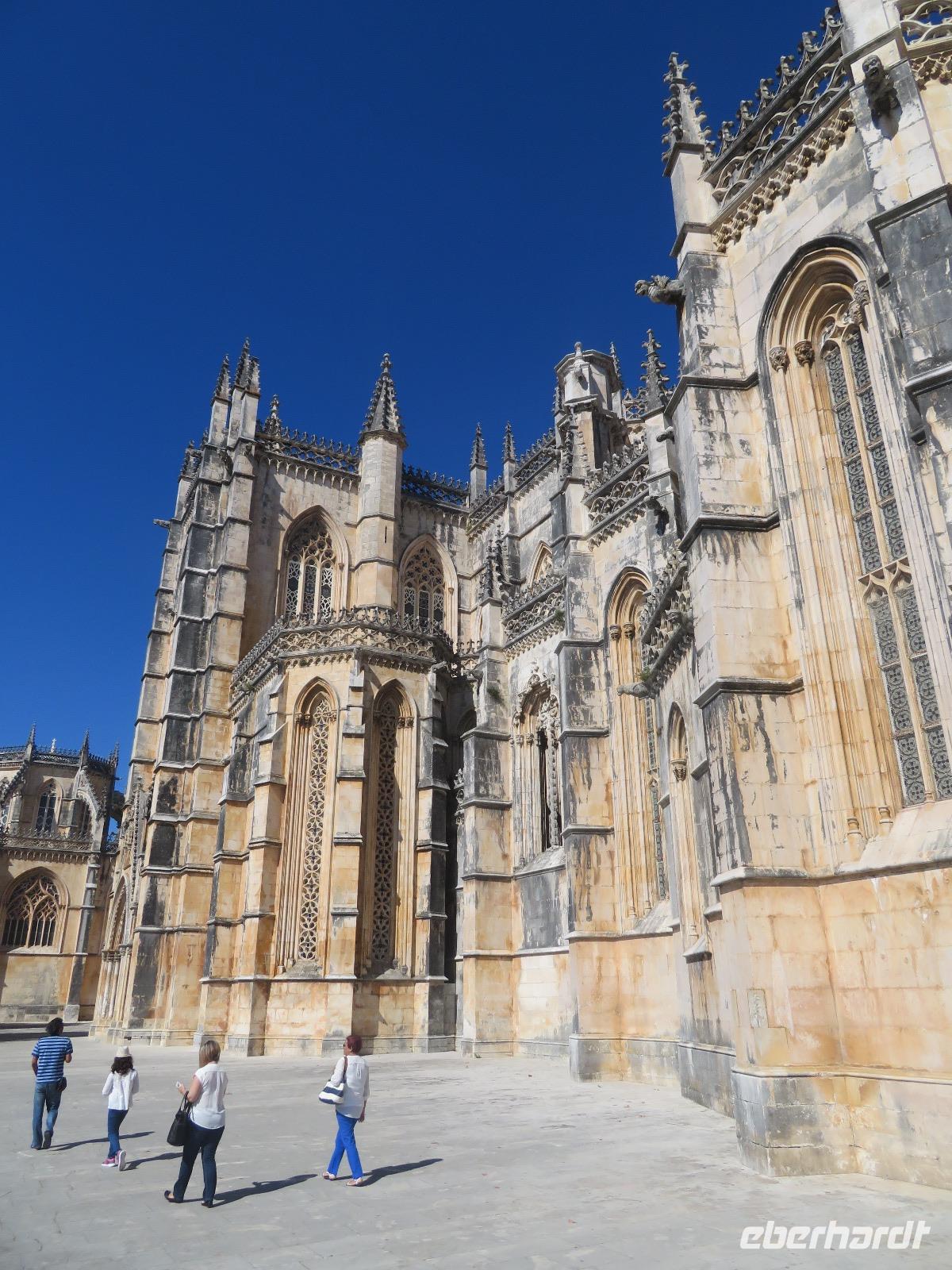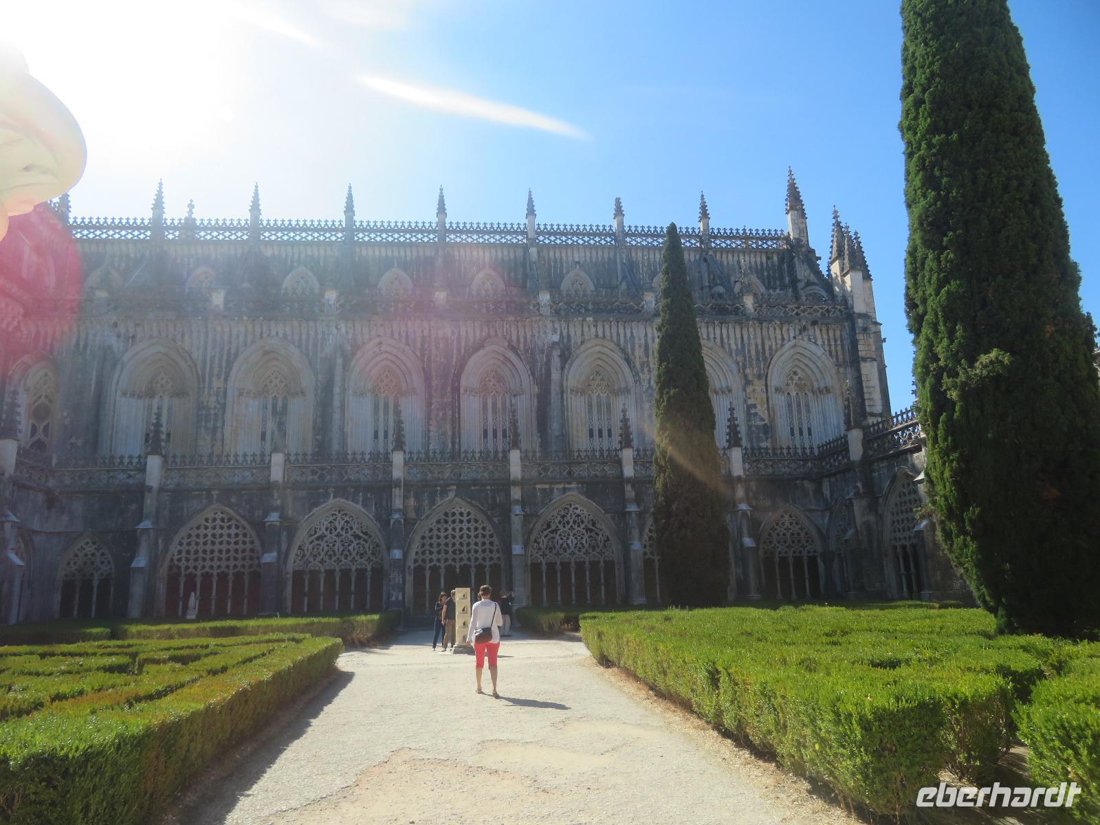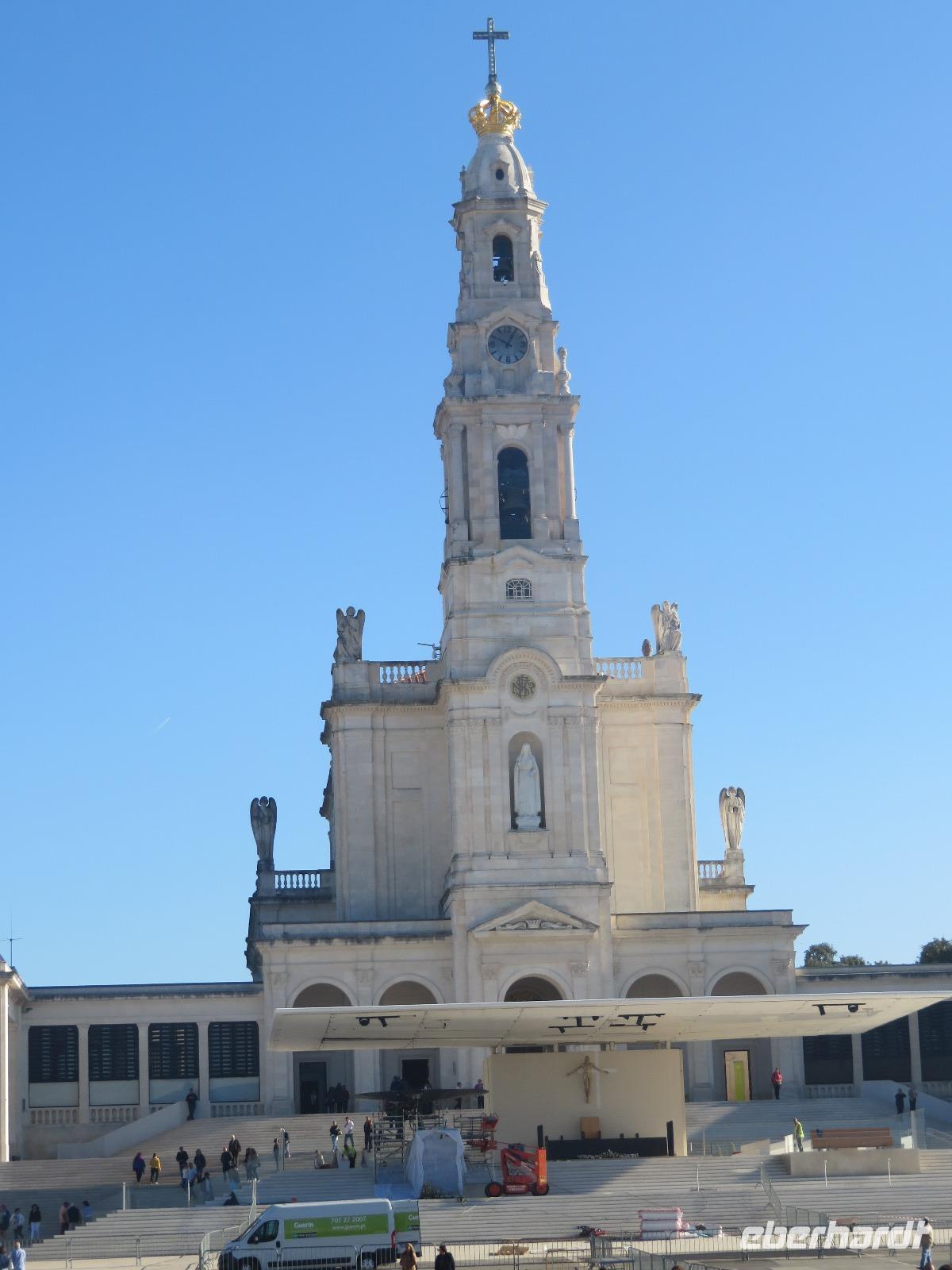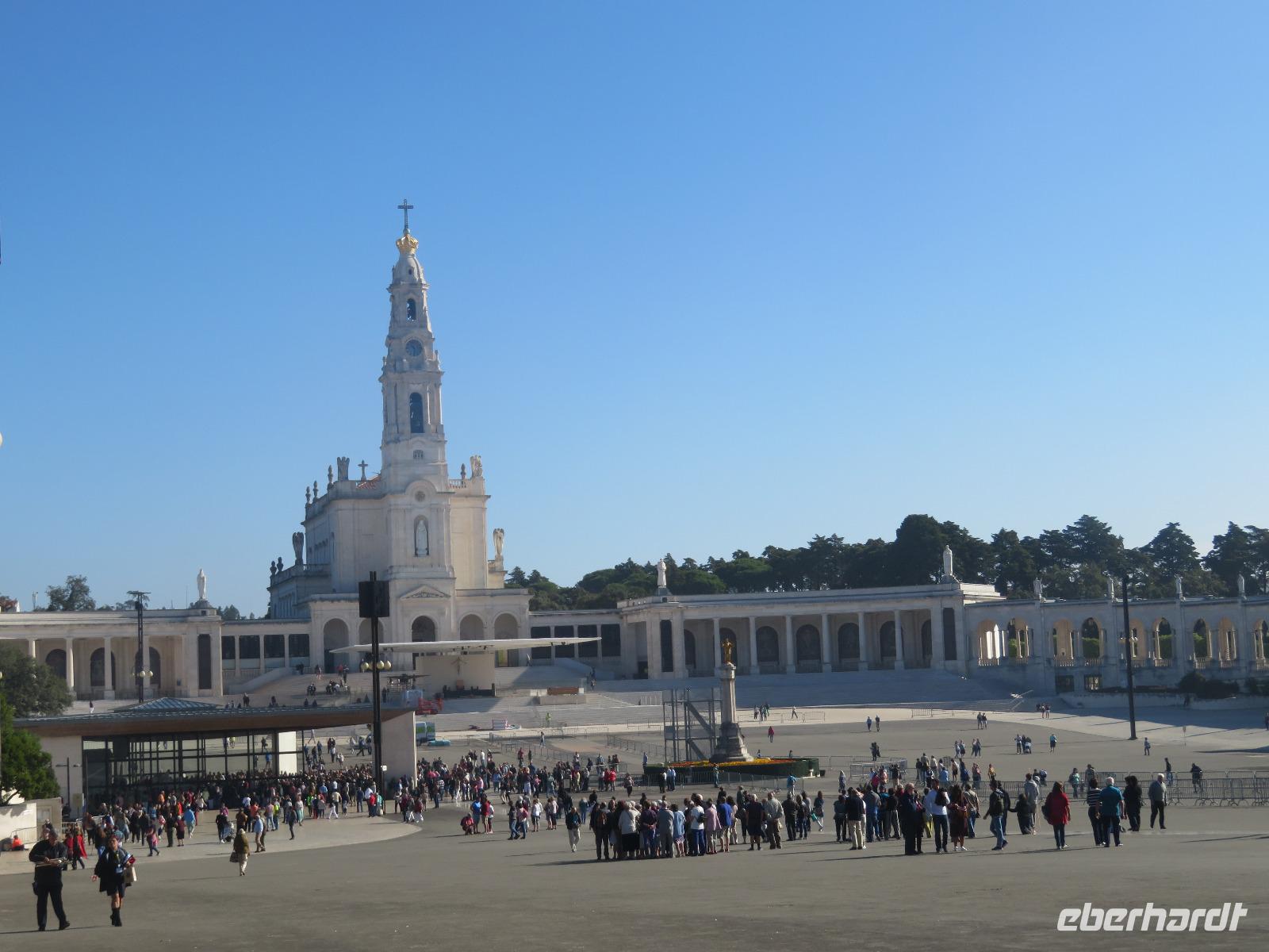 Die Wallfahrtskirche Fatima war nach unserem Frühstück heute unser erstes Ziel. 1928 wurde mit dem Bau der Rosenkranzbasillika begonnen, nachdem 1917 den Hirtenkindern Lucia, Francisco und Jacinta die Muttergottes dort erschienen ist. Diese Erscheinung wiederholte sich jeweils am 13. Tag der folgenden 5 Monate. Nach einer 8 jährigen Untersuchung erkannte der Vatikan die Madonnaverehrung an. Der Platz mit der Kirche und der Basilika umfasst 152000m³ und ist somit doppelt so groß wieder der Petersplatz in Rom. Jährlich pilgern tausende von Menschen nach Fatima.