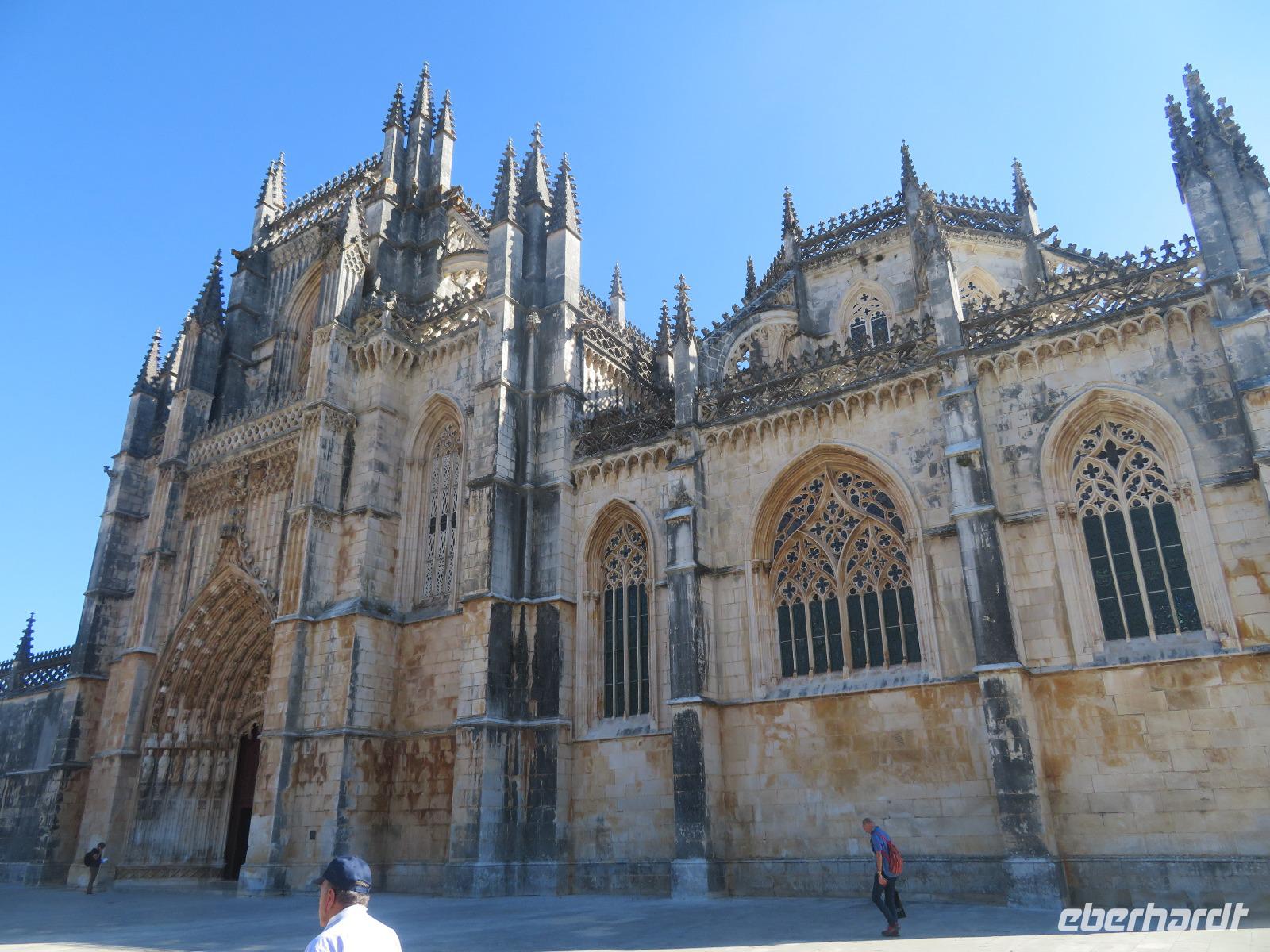 Der Bus fuhr uns nun weiter nach Süden zum Kloster Batahla. Wir besichtigten die Kirche, zwei Klosterhöfe und zwei königliche Grablegen. Vor dem Kloster entdecken wir noch die Statur des Feldherrn Nuno Alvares Pereira. Anschließend fuhren wir direkt zum Atlantik nach Nazare. Hier verbrachten wir unsere Mittagspause. Die einen genossen im Restaurant einen guten Fisch, andere spazierten die Promenade entlang oder man ging direkt auf Tuchführung mit dem Sand und dem Meer und spazierte dort entlang. Als letzten Punkt für heute fuhren wir nach Obidos. Obidos wird von einer 13m hohen Ringmauer umschlossen welche auf bestiegen werden kann. Wir spazierten zuerst in den Ortskern. Unterwegs probierten wir alle den Gina d´Obidos, der Kirschlikör mit Kirchen wird traditionell in Obidos hergestellt. Wow der war echt lecker ;-). Im Ortskern angekommen schauten wir uns die Kapelle an und spazierten individuell durch den Ort. Viele trauten sich auch hinauf auf die Stadtmauer und überblickten Obidos bei schönstem Sonnenschein. Nach diesen vielen Erlebnissen fuhren wir nach Lissabon und freuten uns auf das Abendessen.