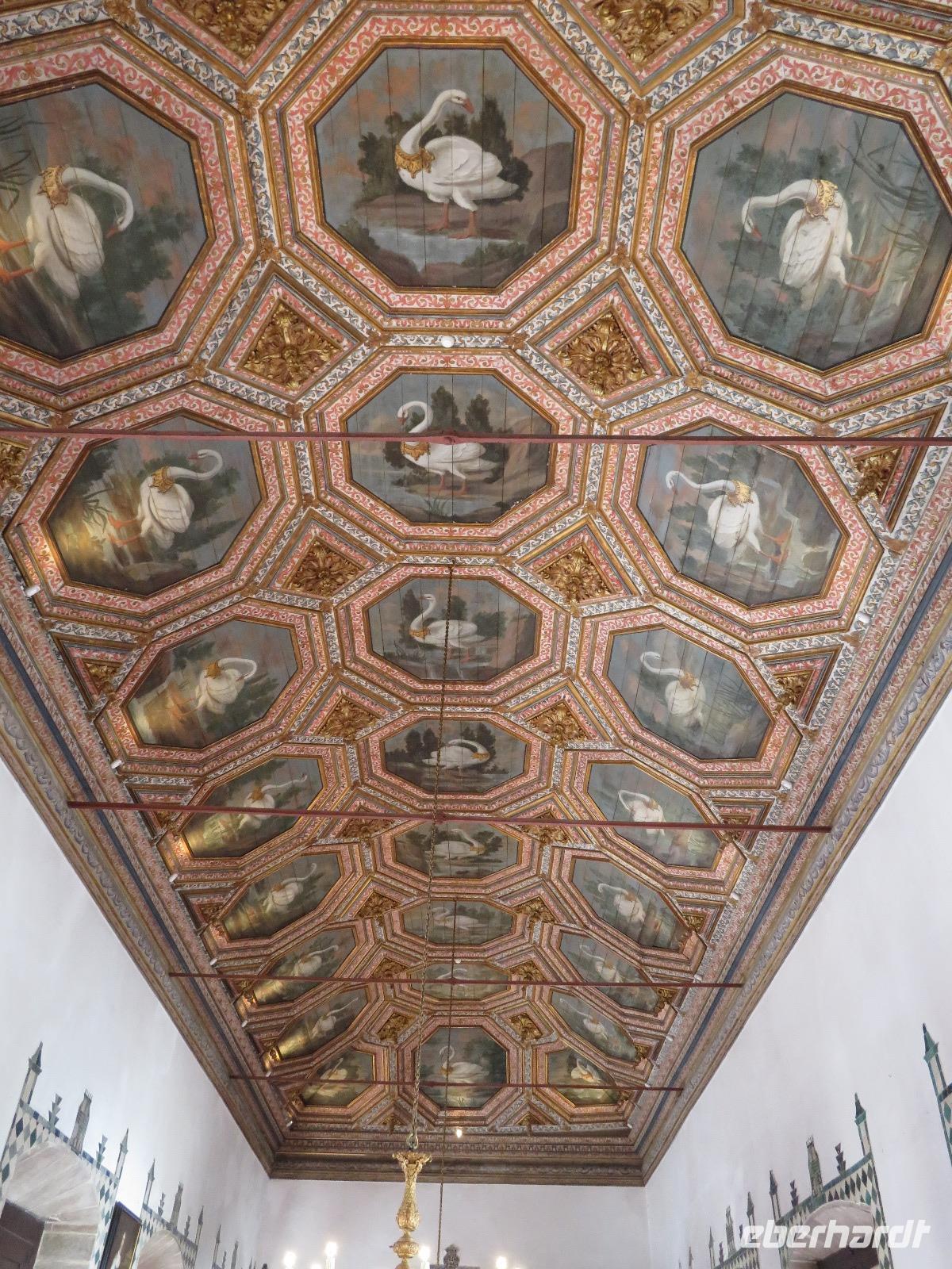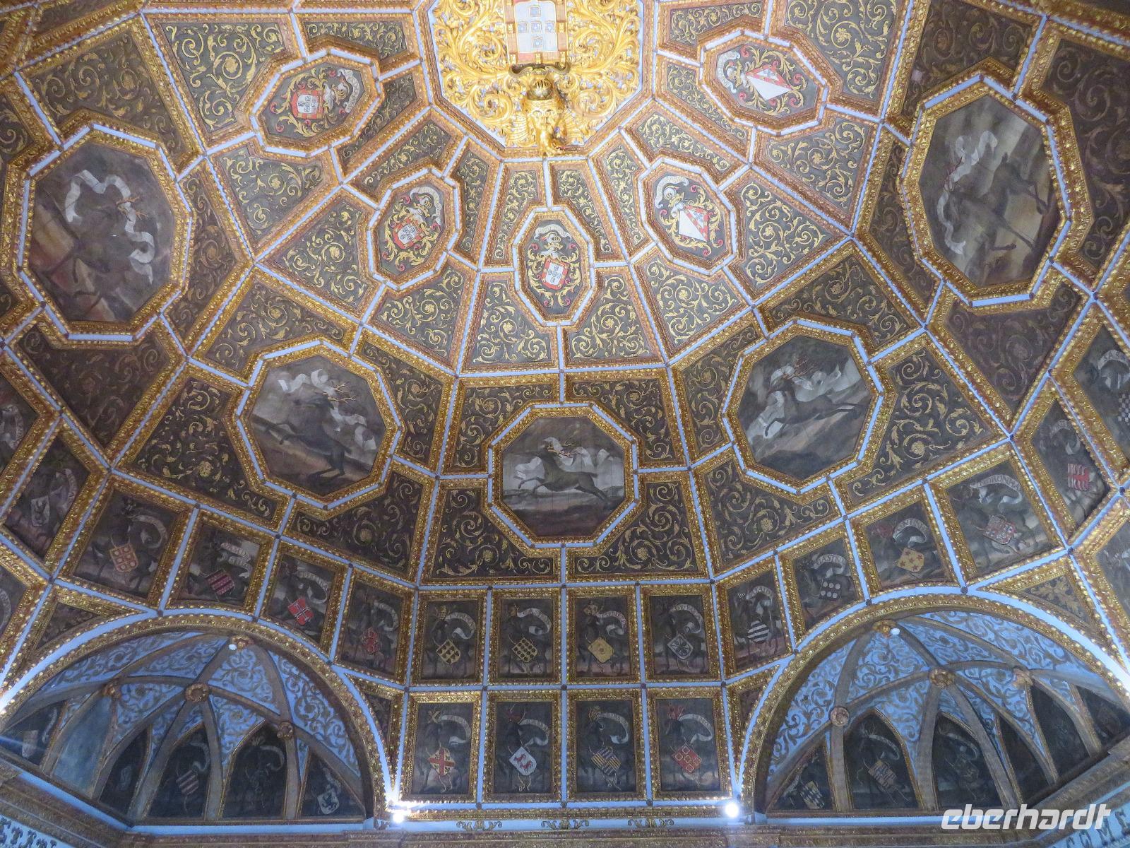 Nach einem ausgiebigen Frühstück fuhren wir mit dem Bus zur Mündung des Rio Tejo in den Atlantik. Entlang am Atlantik und durch den Bade- und Kurort Estoril machten wir unseren ersten Stopp in Cascais. Wir spazierten vom Yachthafen entlang bis zum alten Rathaus. Hier hatte jeder etwas Freizeit um sich den Ort individuell anzuschauen. Anschließend fuhren wir zum westlichsten Punkt Kontinental-Europas dem Cabo da Roca. Ein rot-weißer Leuchtturm, von weitem sichtbar, markiert diesen westlichsten Punkt. Unser letzter großer Stopp für heute war Sintra. Nach einer Mittagspause im Stadtkern unternahmen wir einen Rundgang durch das Nationalschloss. Wir durchquerten den Schwanensaal, der Raum der Elstern, betrachteten das Bett in dem König Sebastiao das letzte Mal in Portugal genächtigt hat bis hinauf in den Wappensaal. Die Fliesenbilder zeigen Jagdszenen aus dem 18. Jahrhundert. Hoch und hinunter ging es quer durch das Schloss bis wir jeden Raum entdeckt hatten. Nach diesen tollen Impressionen fuhren wir zurück zum Schloss um uns frisch zu machen. Wir besuchten am Abend noch ein familiäres portugiesisches Restaurant. Nach der Vorspeise mit Brot und Paté, sowie gebackenen Fleischbällchen, gibt es Reise mit Meeresfrüchten und anschließend Kalbfleisch mit Kartoffeln. Ein leckerer Obstsalat und ein Espresso runden das Menü ab. Satt und Glücklich, sowie mit einer kleinen portugiesischen Erinnerung fuhren wir alle zufrieden in Hotel.