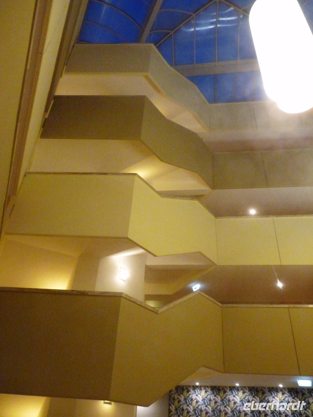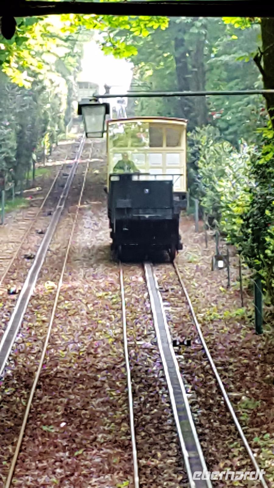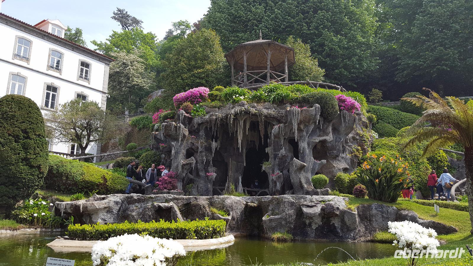 Weiter ging die Fahrt nach Bom Jesus einen Heiligtum in Tenões , außerhalb der Stadt Braga mit einer monumentalen, barocken Treppe , 116 Meter lang = 881 Stufen. Sein Name bedeutet guter Jesus des Berges. Unsere Gruppe wählte jedoch den bequemeren Weg mit der Alten Zahnradbahn. Der Bau der Anlage begann im Jahre 1722. Die Pilgerstätte entstand am Standort einer Kapelle aus dem 14. Jahrhundert. Die neoklassizistische Kirche liegt inmitten eines großen Parks mit Waldbestand, üppiger Blumenpracht und einem kleinen See. Mit der Bergterrasse und der imposanten breiten barocken Treppenanlage in drei Abschnitten gilt Bom Jesus do Monte als schönste Wallfahrtskirche Portugals, wenn nicht weltweit.