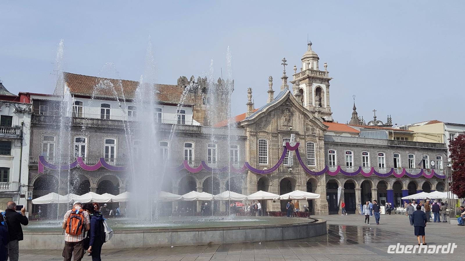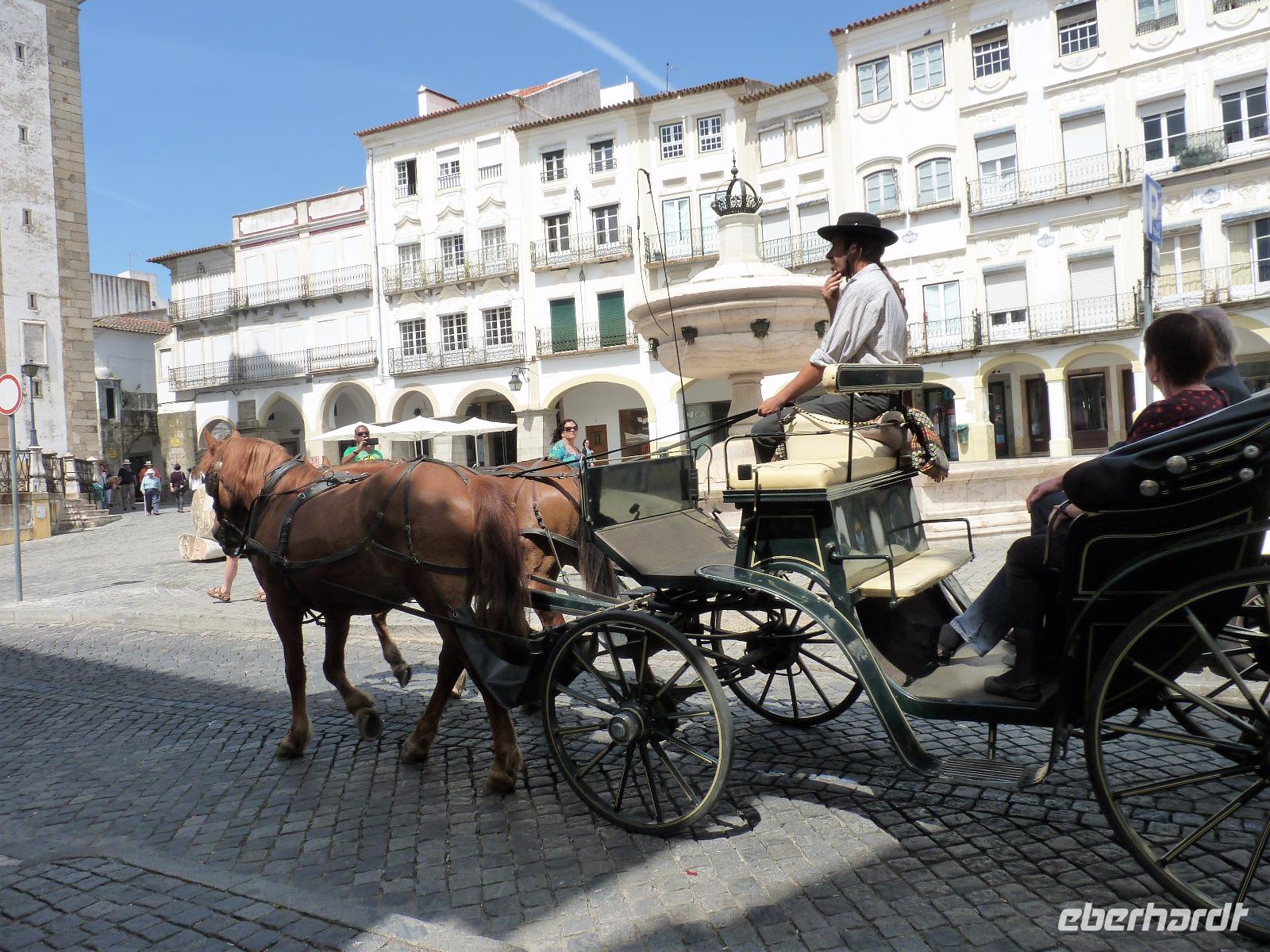 In Evoa gab es den nächsten Halt Ana begann die Stadtbesichtigung am Diana-Tempel aus römischer Zeit. Weitere Sehenswürdigkeiten sind die Kathedrale Se, der ehemalige Königssitz Paço dos Condes de Basto und 365 geschützte Bauwerke, sowie die Burg und das Aquädukt. Der im Stadtzentrum gelegene Praça do Giraldo genannte Platz mit dem Marmorbrunnen und den Arkaden bildete die Kulisse für unser Gruppenfoto.