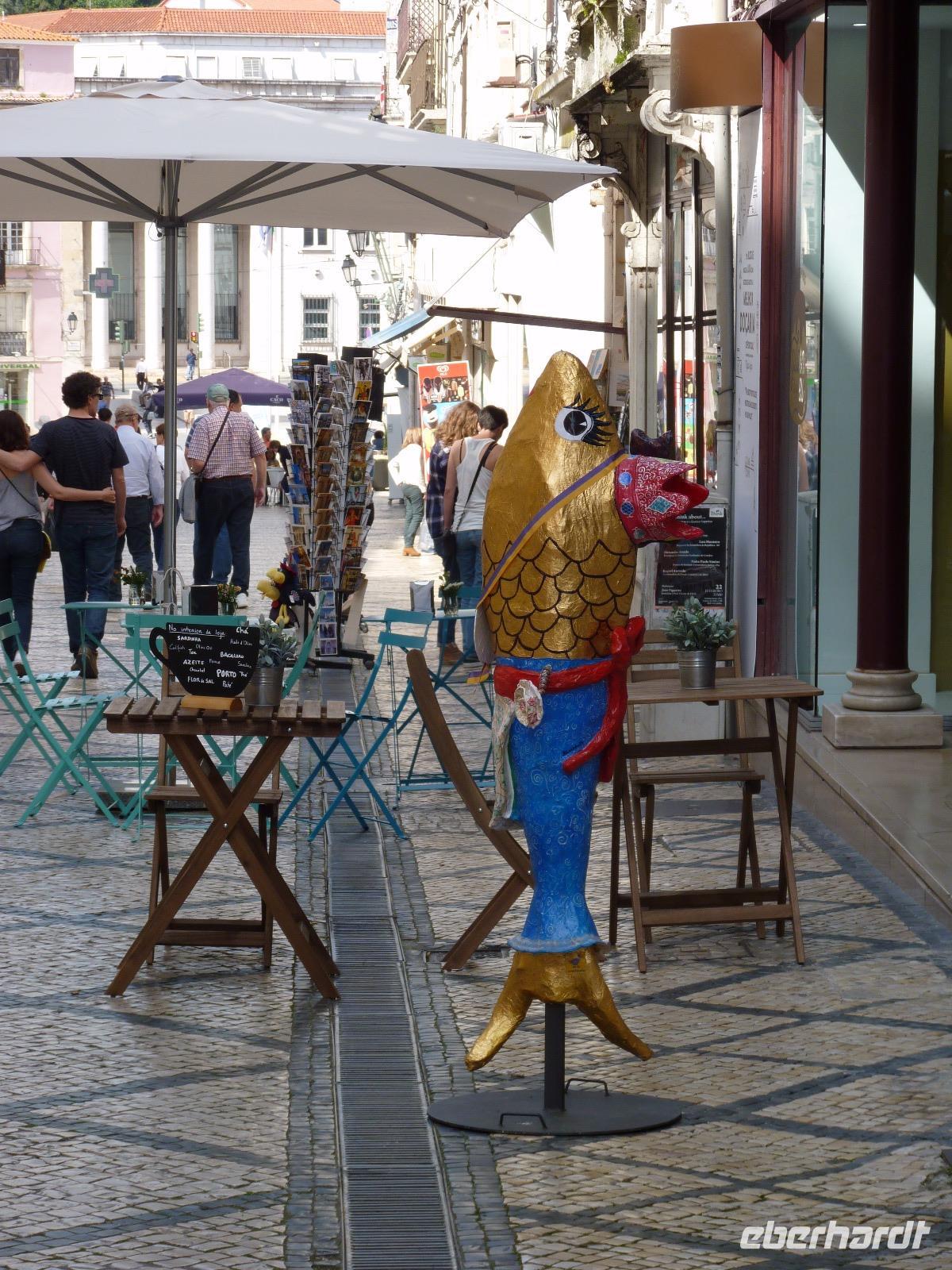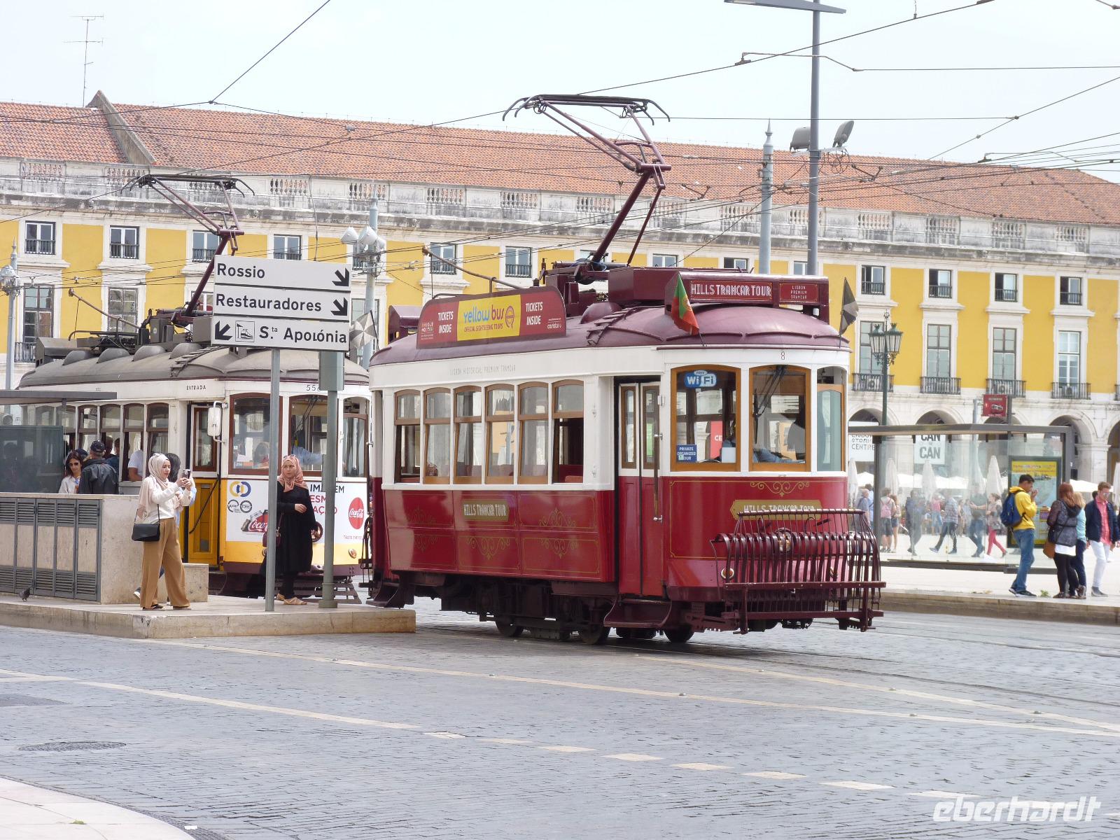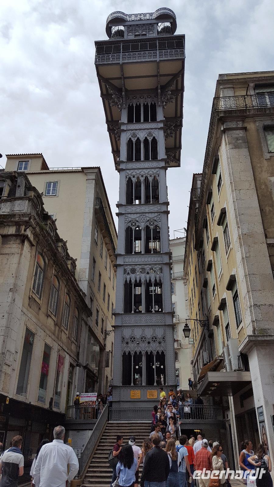 In der Mittagspause insspizierten wir individuell die Hauptstadt und die größte Stadt Portugals, im äußersten Südwesten Europas an der Atlantikküste der Iberischen Halbinsel. Der Handelshafen an der Tejo-Bucht wurde vor der römischen Herrschaft Alis Ubbo genannt. Lissabon, eine Gründung der Phönizier, erhielt zu Zeiten Julius Caesars unter dem Namen Colonia Felicitas Iulia römisches Stadtrecht. Nach der Verlegung des Königssitzes von Coimbra wurde die Stadt im Jahr 1256 unter König Afonso III. zur Hauptstadt des Königreichs Portugal. Um 1500 erlebte Lissabon einen brillanten Aufstieg zu einer der glanzvollsten Handels- und Hafenstädte der damaligen Zeit. Davon konnten wir uns nun selbst überzeugen. Am schönsten ist eine Stadtrundfahrt mit der Hiistorischen Roten oder Gelben 28E/12E Straßenbahn. Sie prägen das Stadtbild. Auch ein Blick vom Elevador de Santa Justa ist eindrucksvoll. Errichtet wurde die markante Stahlkonstruktion im Jahre 1902 nach Plänen des Ingenieurs Raoul Mesnier de Ponsard. Der ursprüngliche Antrieb war eine Dampfmaschine, diese wurde jedoch 1907 durch Elektromotoren ersetzt. Der Aufzug ist 45 m hoch und hat zwei original mit Holz dekorierte und mit Glasscheiben und Messingbeschlägen ausgestattete Kabinen, die je 24 Personen fassen. Ein Stockwerk über dem oberen Ausgang sind die zwei originalen Liftmaschinen im Betrieb zu sehen. Nochmals ein Stockwerk darüber ist ein Café mit spektakulärer Aussicht über die Stadt: Baixa, Chiado, Castelo de São Jorge.