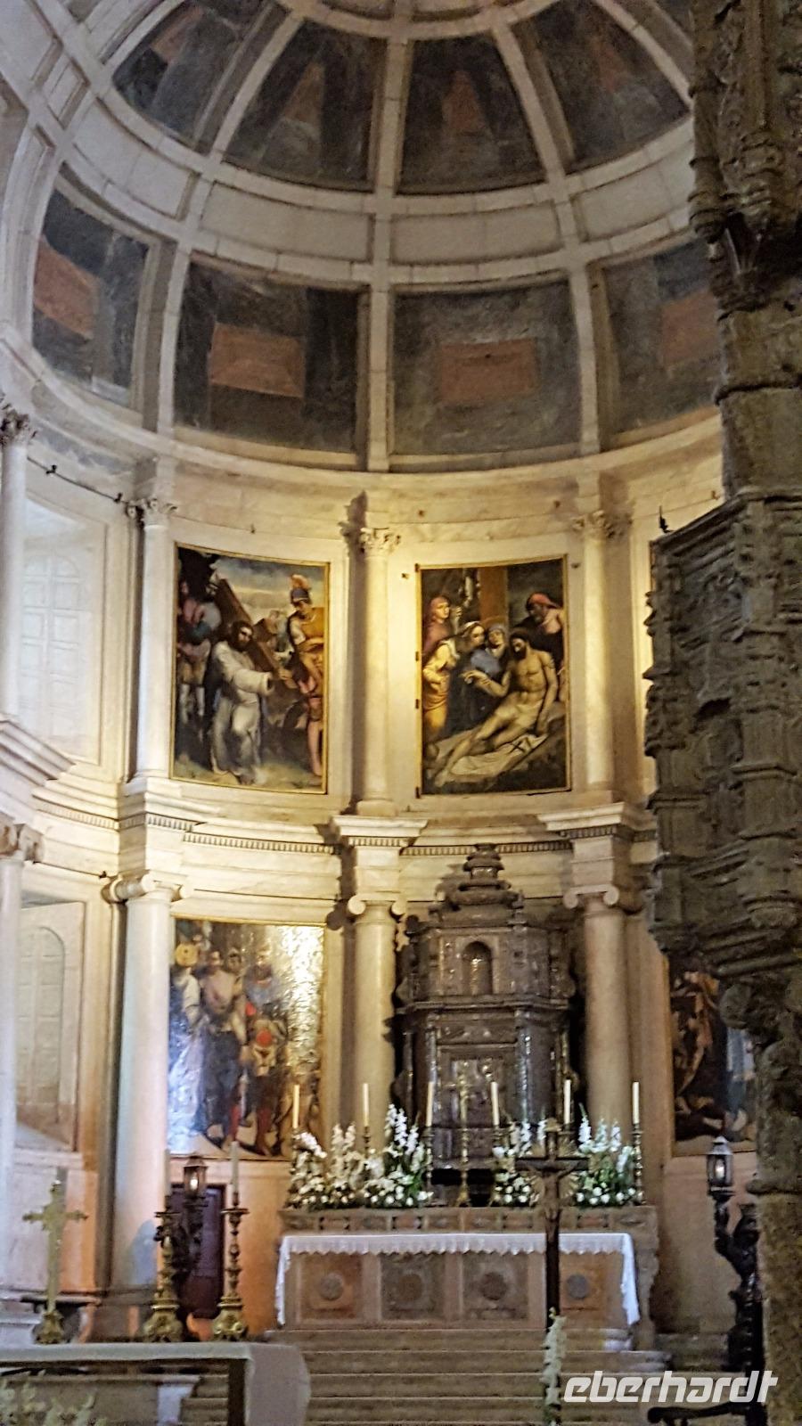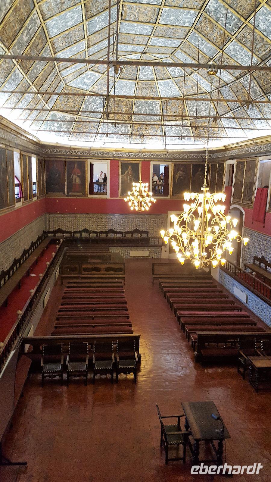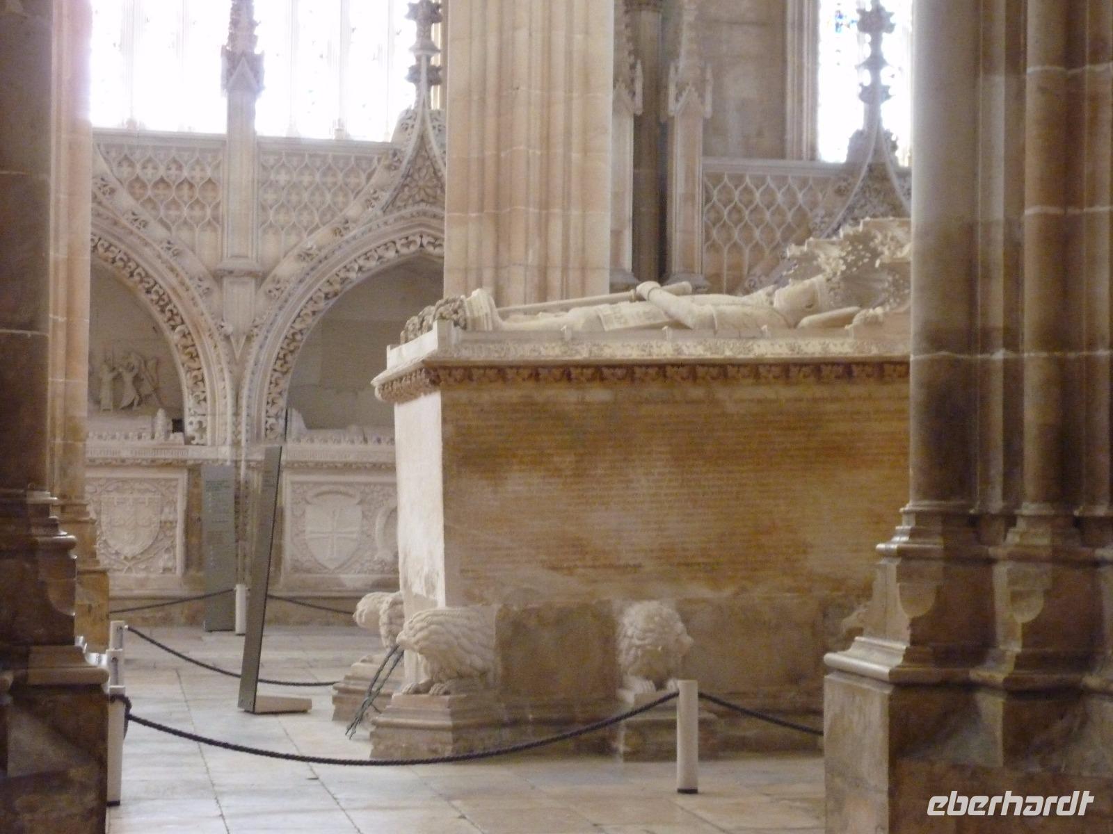 Der Doppelsarkophag des Gründerpaares steht in der Mitte des Raumes, während sich die Grabmäler ihrer Nachkommen in den Wandnischen des Umbaus befinden. Ihr bekanntester Sohn ist Dom Henrique o Navegador (Heinrich der Seefahrer). Leider war zum Feiertag nur eine Außenbesichtigung des Monuments möglich.
