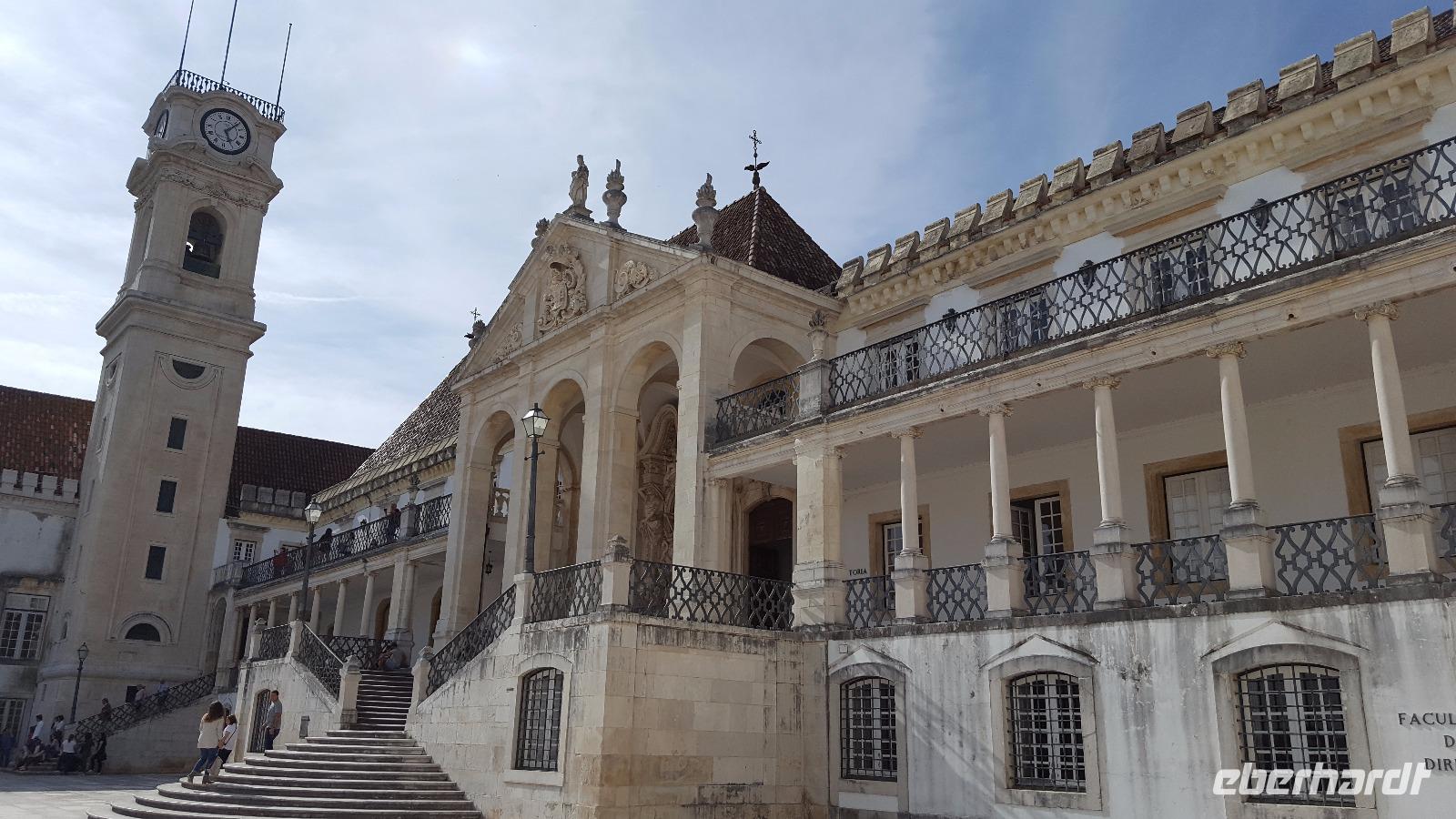 1728 wurde die umfangreiche und reich verzierte Universitätsbibliothek Biblioteca Joanina fertiggestellt. Über Jahrhunderte war die Universität Zentrum der Wissenschaften in Portugal, und aufwendig geschmückte Bauten wie die Universitätskirche und die -bibliothek zeugen vom Reichtum des ehemaligen portugiesischen Kolonialreiches. Sie gilt heute als eine der spektakulärsten Bibliotheken der Welt. Die Universität Coimbra hat heute ca. 22.000 Studenten und besteht aus acht Fakultäten: Philosophie (Faculdade de Letras), Rechtswissenschaften (Faculdade de direito), Medizin (Faculdade de medicina), Technologie (Faculdade de Ciências e Tecnologia), Pharmazie (Faculdade de Farmácia), Ökonomie (Faculdade de Economia), Psychologie und Erziehungswissenschaften (Faculdade de Psicologia e Ciências da Educação), Sportwissenschaften (Faculdade de Ciências do Desporto e Educação Física). Jeder Fakultät ist eine Farbe zugeordnet, die sich u. a. in den Bändern widerspiegelt, die von den Studenten getragen werden. Diese werden am Ende des Studiums bei dem traditionellen Studentenfest Queima das Fitas (wörtlich: Verbrennen der Bänder) verbrannt.