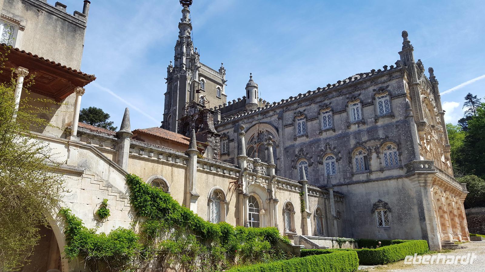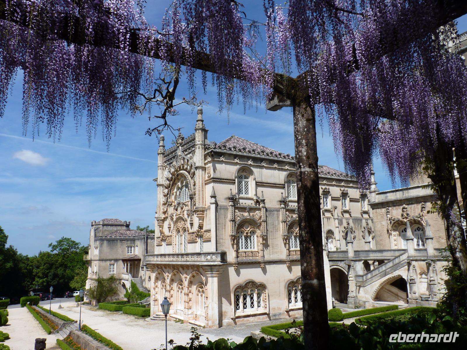 Weiter geht unsere Reise nach Serra do Buçaco. Im Laufe der Portugiesischen Kolonialgeschichte brachten Seefahrer Pflanzen aus den neuentdeckten Ländern mit, so dass der oft auch als verwunschener Märchenwald bezeichnete, von beschilderten Wander- und Spazierwegen durchzogene Wald mit 300 exotischen und 400 einheimischen Arten von Bäumen und Sträuchern entstand. 1628 hatte das neuentstandene Karmeliterkloster Convento de Santa Cruz do Buçaco die Bewahrung des Waldes übernommen. Durch die Karmeliter wurde er durch eine 5,7 km lange Mauer mit zehn Toren umgeben. Im Wald befindet sich ein parkähnlicher Bereich mit einer Quelle mit Wassertreppe, Grotten und einem Teich sowie mehreren Kapellen und Gebetsstationen. Ende des 19. Jahrhunderts ließ König Carlos hier einen neo-manuelinischen Sommerpalast errichten, seit 1905 das heutige Palácio Hotel do Buçaco. Um die Schönheit dieser Anlage richtig genießen zu können legte unsere EHT-Gruppe einen Spaziergang ein. Von da ging es direkt zur Universitätsstadt Coimbra, gelegen am Rio Mondega.