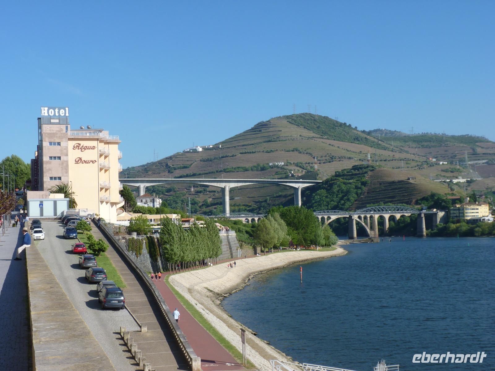 Mit einer historische Lokfahrt zum Bahnhof in Régua erreichten wir unser heutiges Etappenziel. Unser Hotel gleichen Namens lag direkt gegenüber am Ufer des Douro. In der Freizeit spazierten wir an der Promenade und ließen uns von der Sonne verwöhnen. Aus Telefonaten mit Daheim wussten wir, dass es dort im Moment bitterkalt war und sogar Gebietsweise schneite.