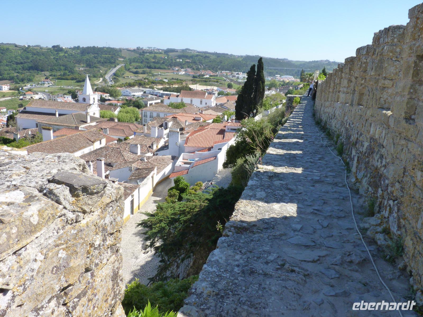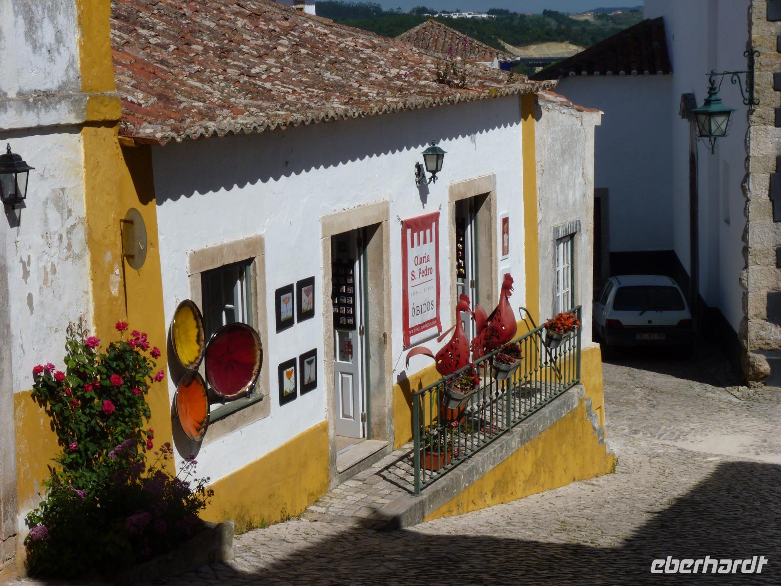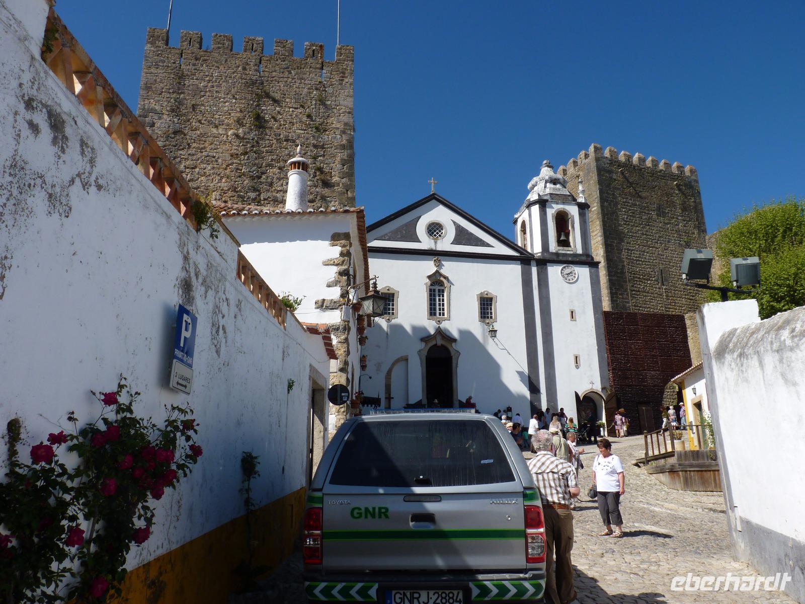 Am Nachmittag fuhren wir in die Unterregion Oeste im historischen Gebiet Estremadura. Der Ort ist für seinen erhalten gebliebenen, vollständig von begehbaren Stadtmauern umgebenen, und von blumengeschmückten Gassen durchzogenen und hat einen historischen Ortskern. Als erstes jedoch probierten wir den leckeren Kirschlikör aus Schockoladenbechern., dann hatten wir Freizeit.