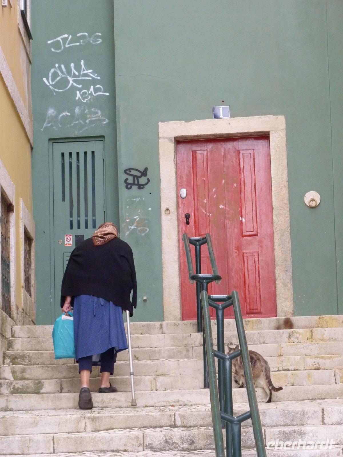 Nach dem Mittag besichtigten wir bei einem gemeinsamen Spaziergang die Hauptkirche der Stadt Lissabon und die Kathedrale des Patriarchats, die Catedral Sé Patriarcal und die Alfama mit der Stadtmauer. Zahlreichen Sehenswürdigkeiten wie dem Panteão Nacional und dem Castelo de São Jorge, sowie zahlreichen Restaurants und Fadolokale prägen die Altstadt. Die Bezeichnung stammt vermutlich vom arabischen Al-hamma, das in etwa „Quellen" oder „Bäder" bedeutet.