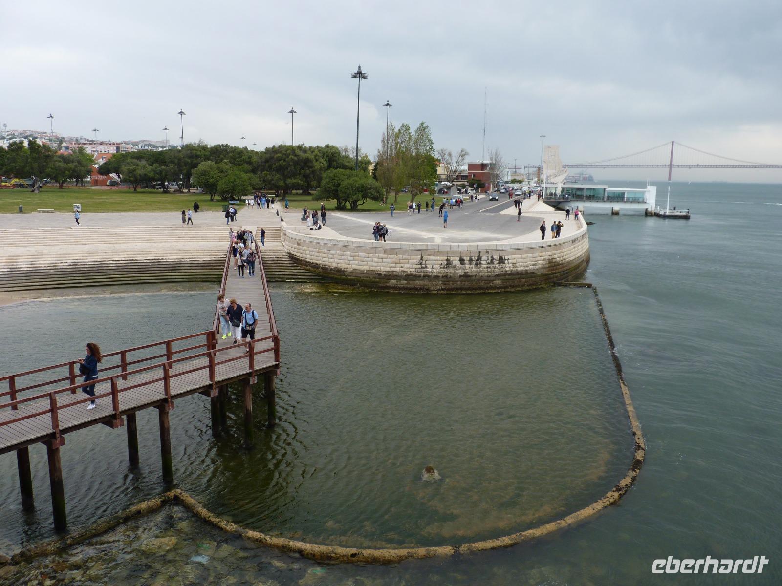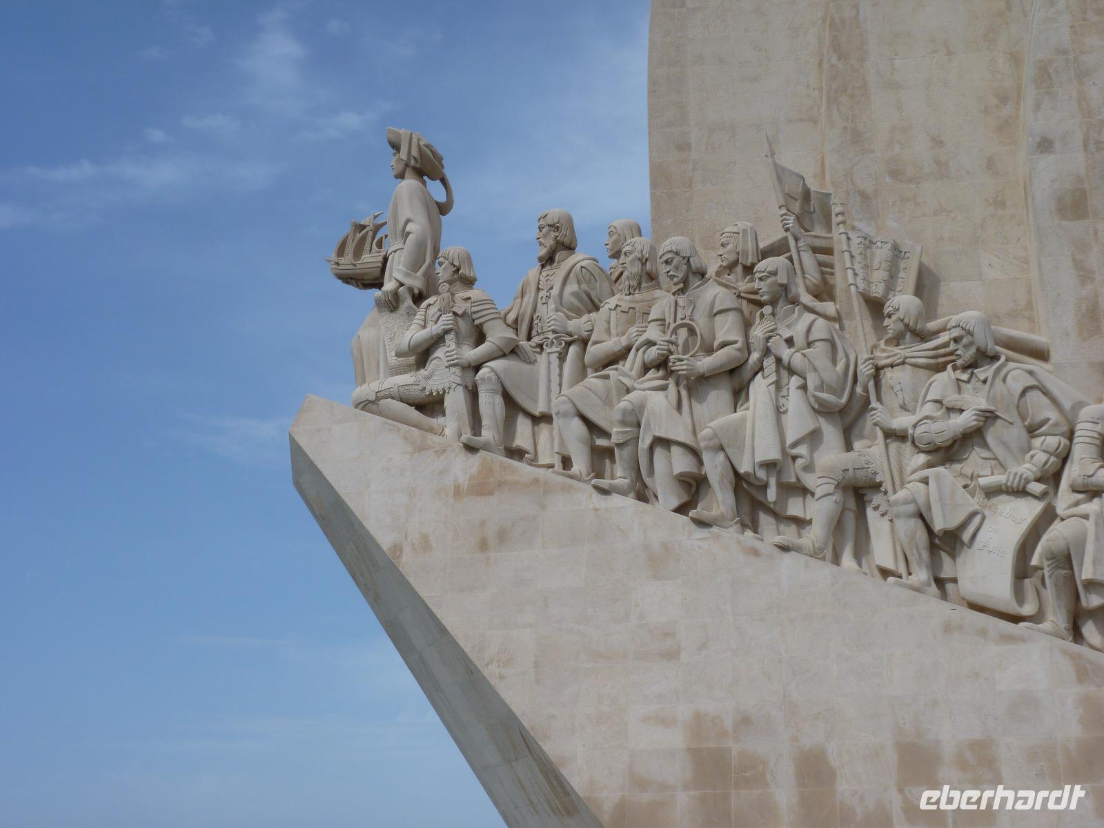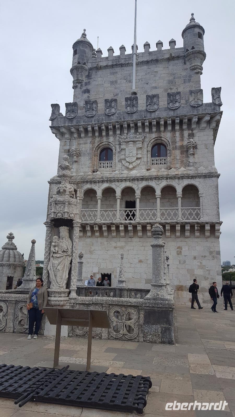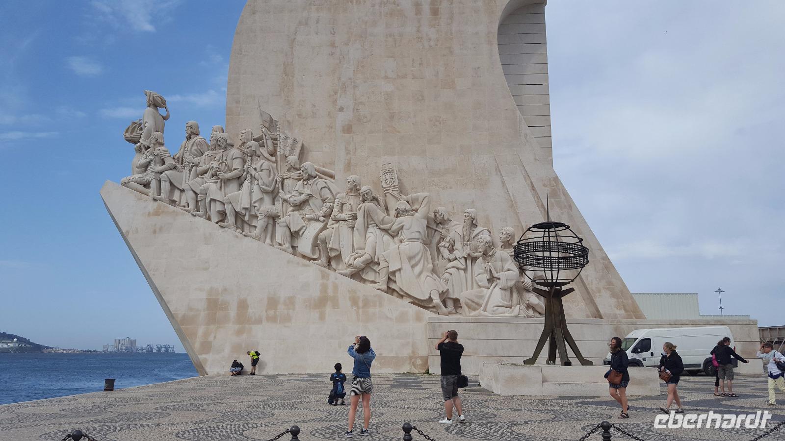 Unsere Stadtbesichtigung begannen wir mit einer Panoramafahrt entlang der Küste. Erster Stopp am Torre de Belém im Stadtteil Belém an der Tejomündung. Der Turm gehört zu den wenigen herausragenden Bauwerken des manuelinischen Stils, die das Erdbeben von Lissabon überstanden haben. Die oberste, 35 Meter hohe, freiliegende Etage des Turms ist heute eine Aussichtsplattform. Als Leuchtturm auf einem Felsen im Mündungstrichter des Tejo gelegen, begrüßte er die ankommenden Entdecker und Handelsschiffe. Nächster Halt am Padrão dos Descobrimentos. Es wurde 1960 zum 500. Todestag von Heinrich dem Seefahrer durch das Salazar-Regime errichtet. as Denkmal soll an das Zeitalter der Entdeckungen erinnern und zeigt 33 wichtige Persönlichkeiten des Spätmittelalters in Portugal. Z.B. Prinz Heinrich der Seefahrer, Prinz Peter von Portugal, Königin Philippa von Lancaster, Fernão Mendes Pinto (Schriftsteller), Gonçalo de Carvalho (Dominikaner, der in Indien und im Kongo predigte).....