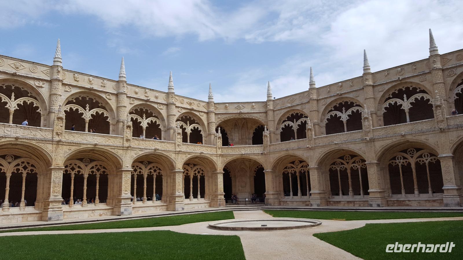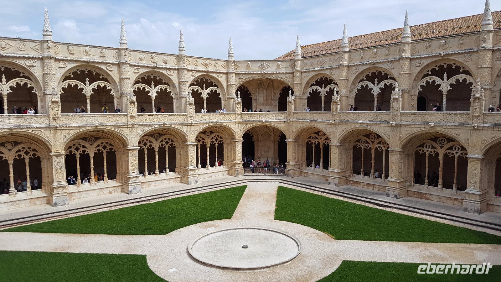 Ein weiteres Muss Mosteiro dos Jerónimos, das Hieronymitenkloster. Er gilt als bedeutendster Bau der Manuelinik (Manuel I., 1495-1521), einer portugiesischen Variante der Spätgotik, die auch einige Elemente der Renaissance enthält. Unter anderem beherbergt es die Sarkophage von Fernando Pessoa, Vasco da Gama und Luís de Camões und verschiedener portugiesischer Könige. Der Bau wurde zu großen Teilen durch die nun sprudelnden Einnahmen des Überseehandels finanziert. Kurz zur Geschichte des Baues. Das Kloster beherbergte bis 1834 die Hieronymiten, den Orden des Heiligen Hieronymus, der dem Kloster auch den Namen gab. Das Erdbeben von 1755 überstand es ohne größere Schäden, nur durch die Truppen Napoleon Bonapartes Anfang des 19. Jahrhunderts wurde es verwüstet. Sehenswert heute das Südportal des Mosteiro dos Jerónimos und der wunderschöne Kreuzgang und Innenhof des Klosters.
