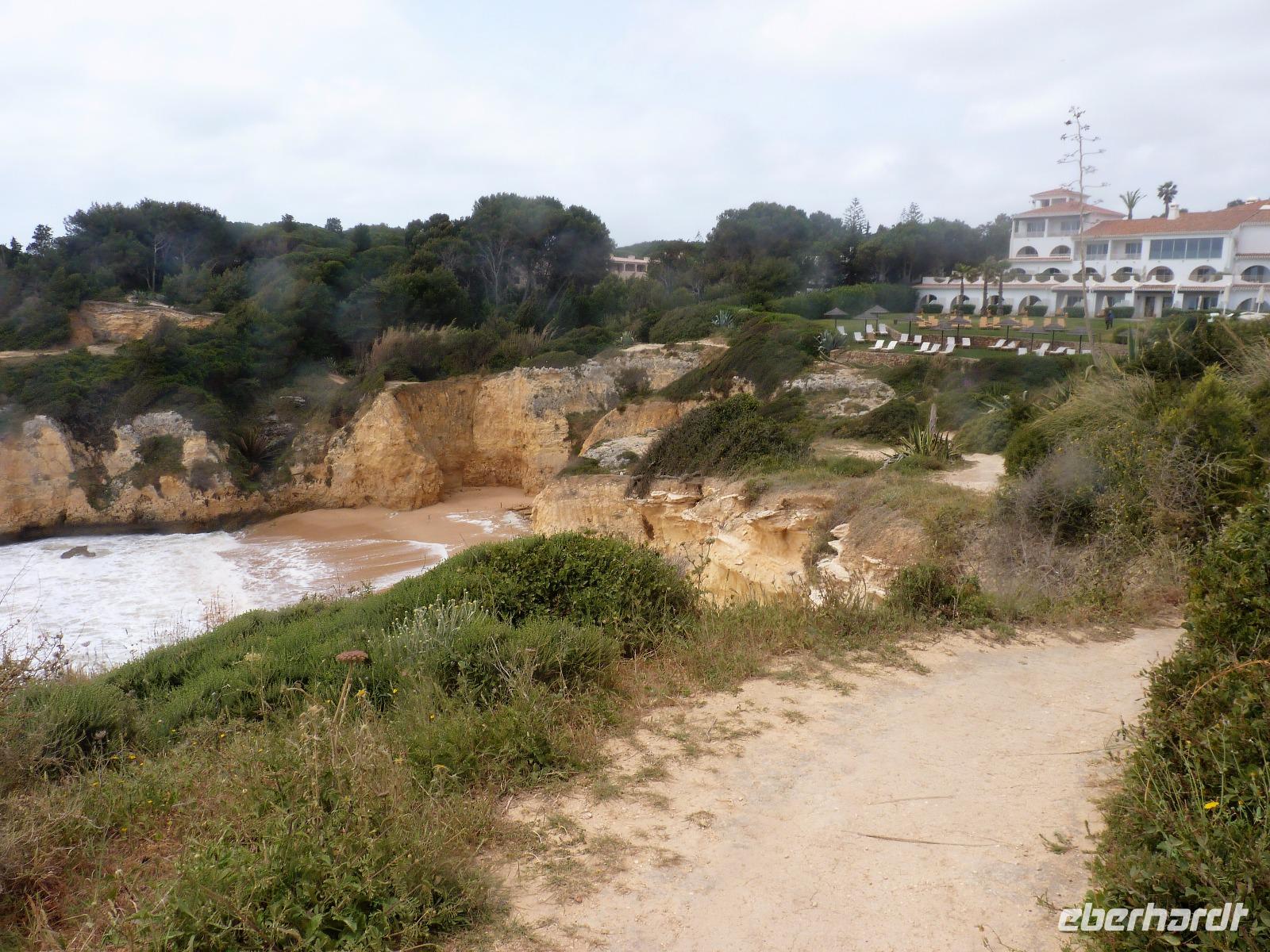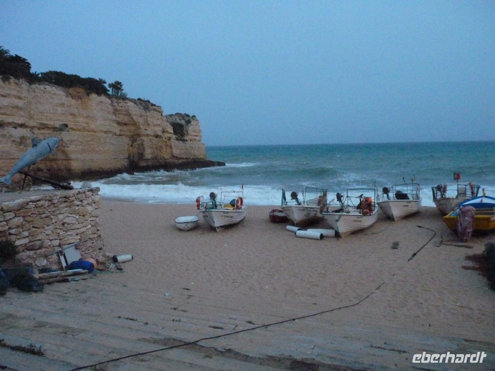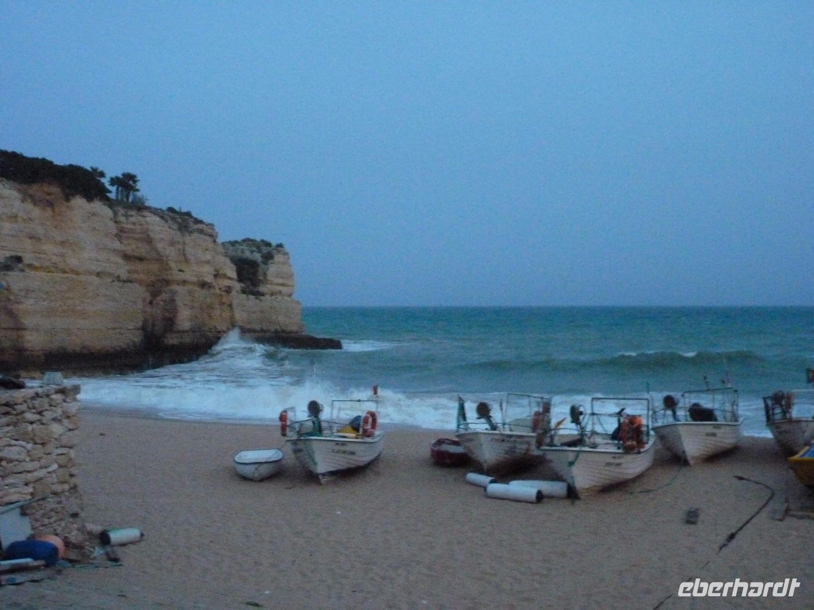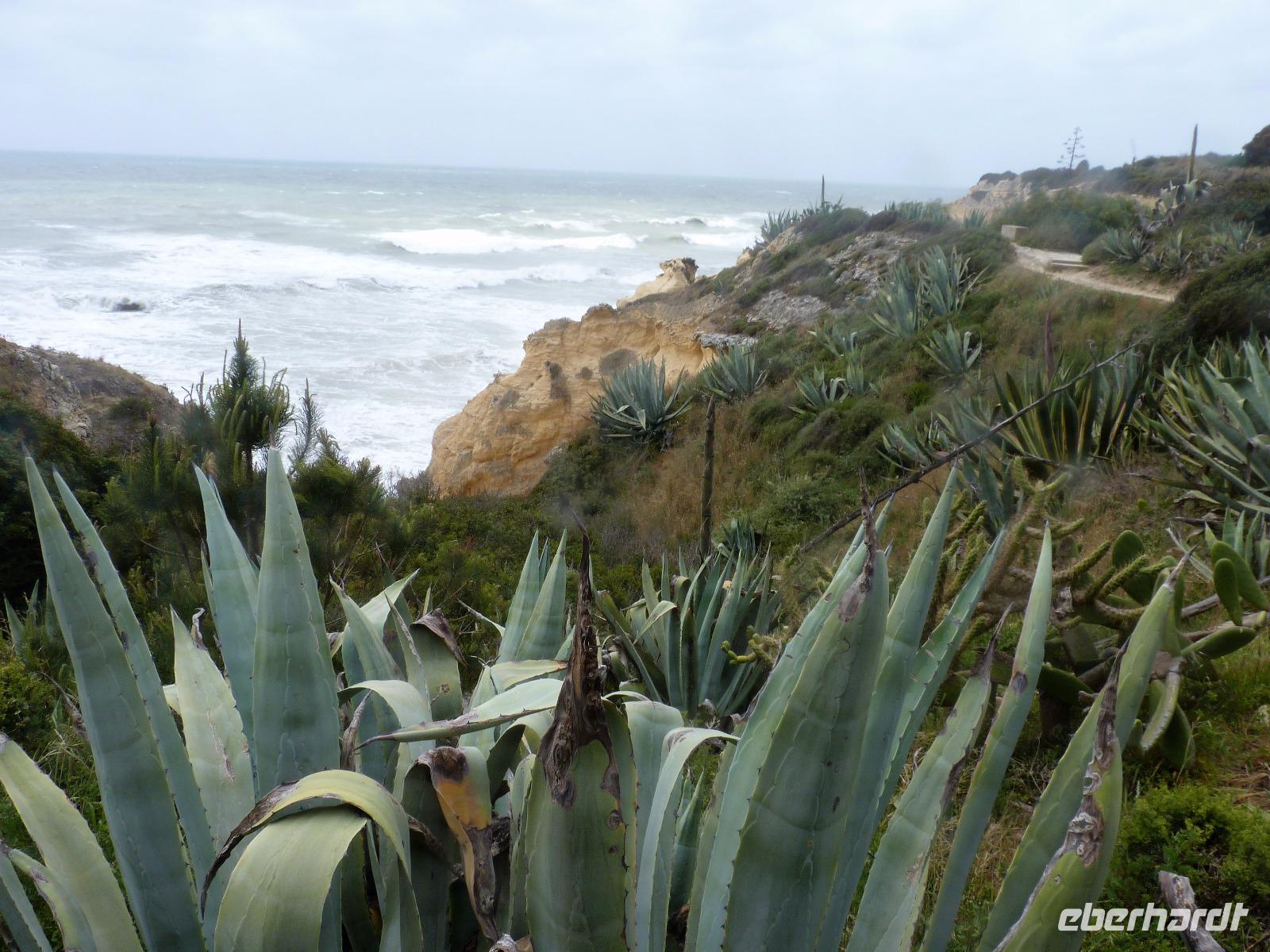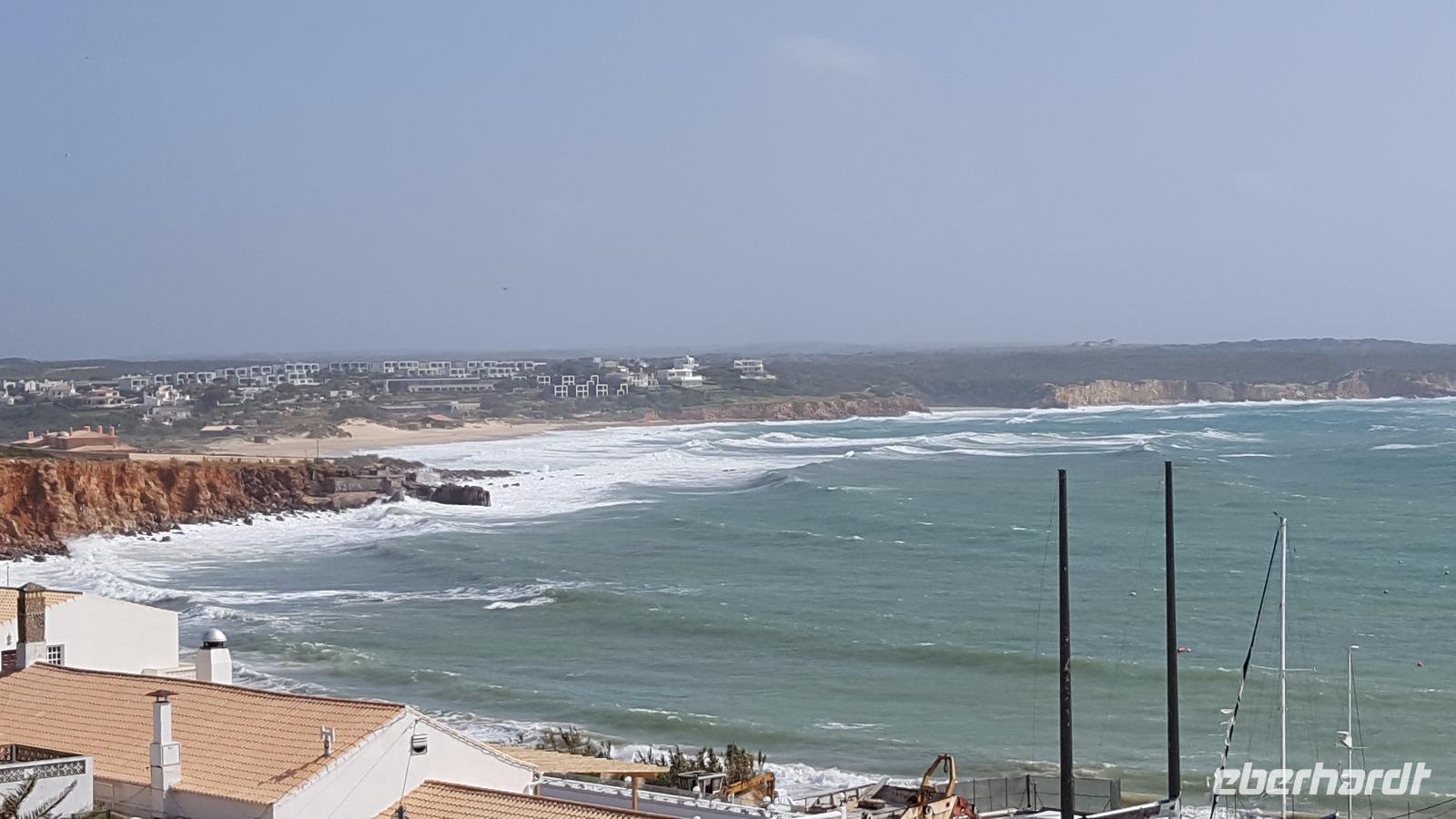 Wunderschöne Panoramablicke gab es beim Spazieren entlang der Kalksteinklippen bei stürmischer See. Nicht umsonst ist die Algarve ein Surferparadies. Ca. 3,6 Kilometer westlich von Armação de Pêra befindet sich eine malerische kleine Kapelle Nossa Senhora da Rocha, auf einer Landspitze gelegen.