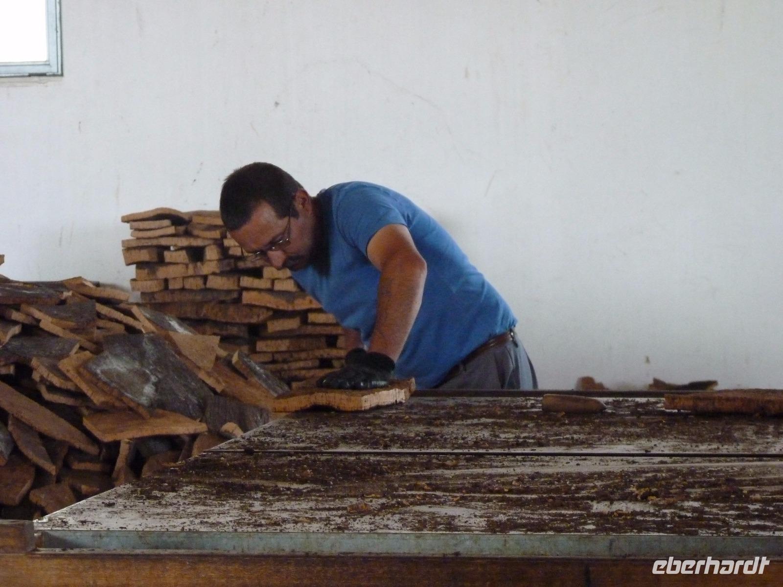 Zwischenstopp in einer Korkfabrik mit langer Familientradition. Portugal ist weltweit der Hauptkorkerzeuger, verantwortlich für mehr als 60% des Volumens der weltweiten Exporte und verfügt über eine Korkeichenfläche, die 25% der vorhandenen Fläche auf der ganzen Welt entspricht.
