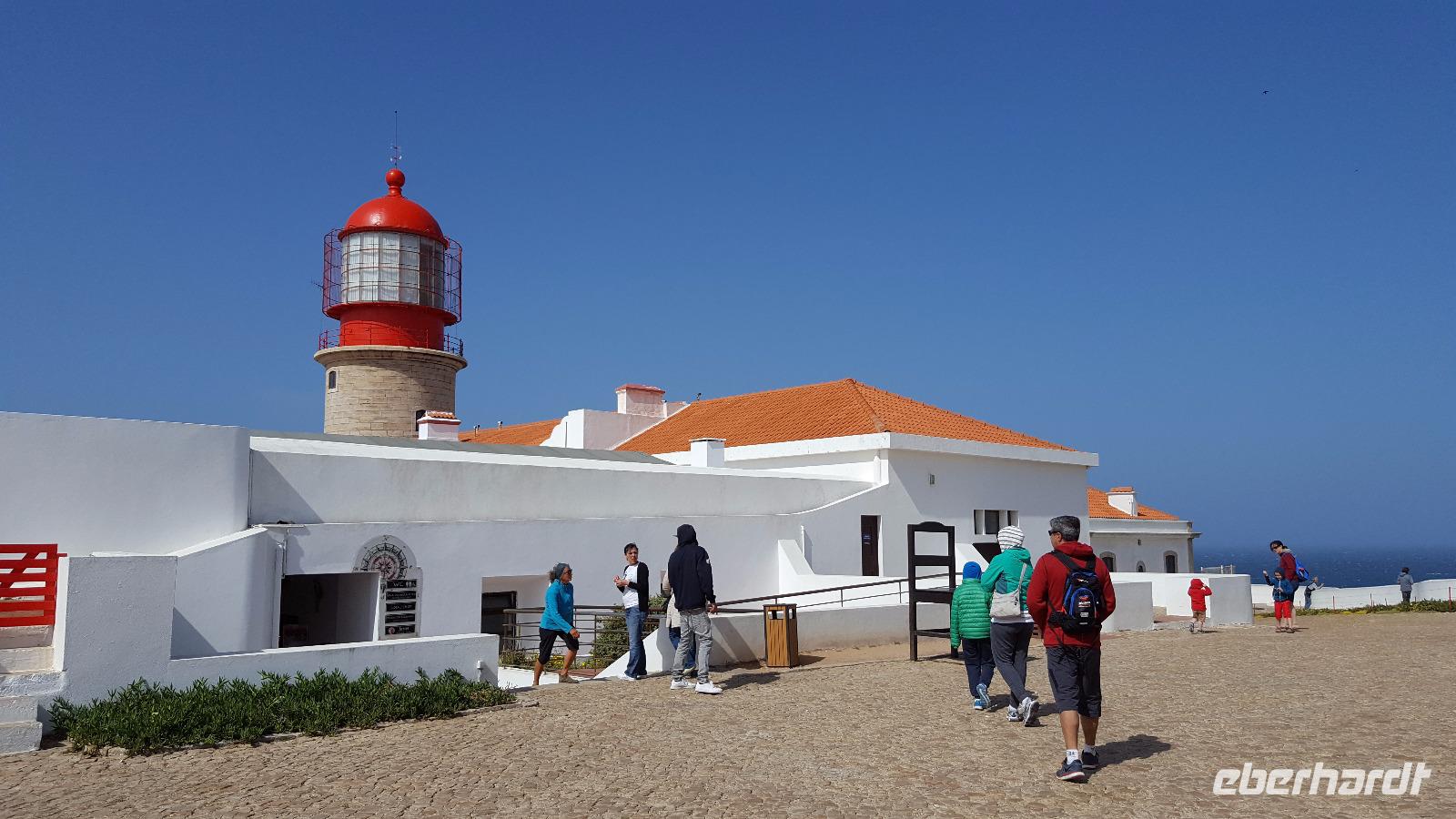 Unser Fakultativer Ausflug brachte uns als erstes zum Ponta da Piedade. Es gilt als eine der schönsten Sehenswürdigkeiten in Portugal und als die schönste Felsformation der Algarve. Oberhalb der Felsen steht ein Leuchtturm mit einem Parkplatz, man kann auf die Höhlen und Grotten der Felswände hinabsehen. Zu diesen Felsen kann man seit 2004 über eine steile Treppe mit fast 200 Stufen nahe dem Leuchtturm hinabsteigen. Die Ponta da Piedade besteht aus rot - gelbem Fels. Durch die durch das Meer über Jahrtausende ausgewaschenen Höhlen und Grotten fließt das Meerwasser. Zweiter Halt Cabo de São Vicente (Kap Sankt Vinzenz) bei Sagres. Gemeinsam mit der benachbarten Ponta de Sagres bildet es die Südwestspitze des europäischen Festlands. Die Algarve endet dort in einer felsigen, bis zu 70 Meter hohen Steilküste mit karger, baumloser Vegetation.
