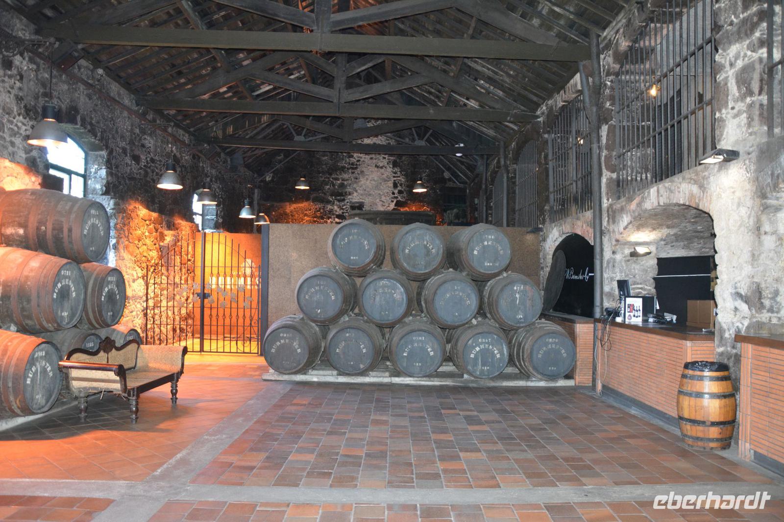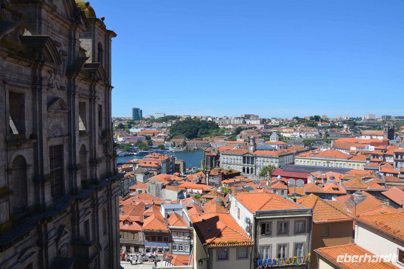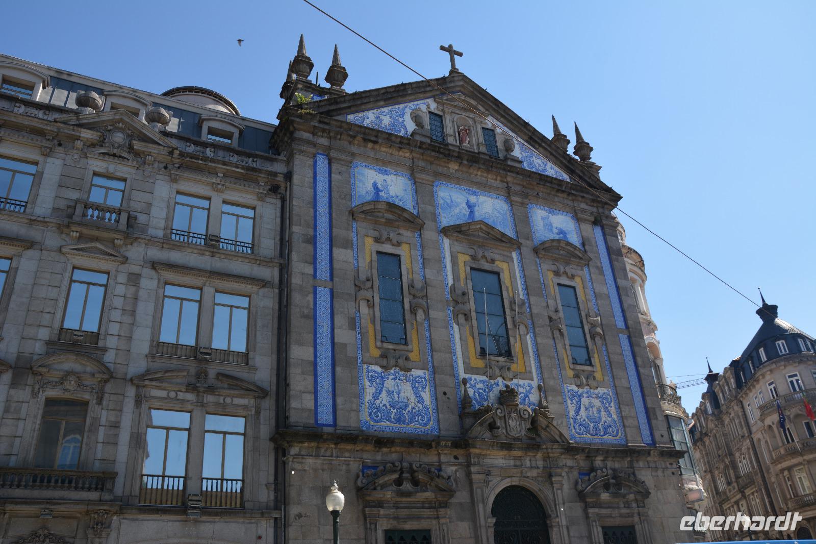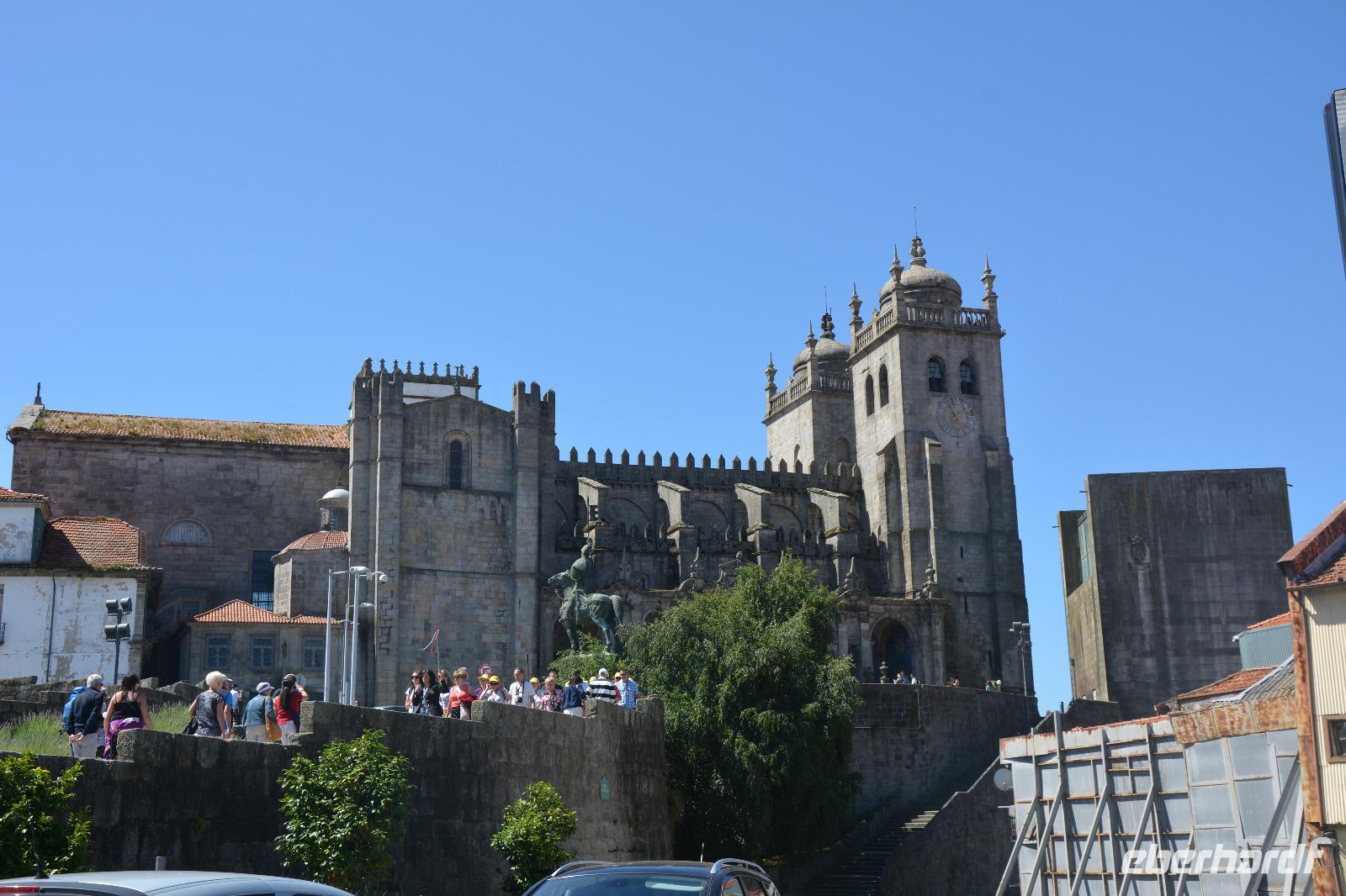 Unser Busfahrer brachte uns ersteinmal in das Zentrum der Stadt, wo wir am Centro Português de Fotografia ausstiegen. Alle mit Audioguide ausgestattet, machten wir uns auf den Weg durch die Stadt, wobei Maria uns allerhand wissenswerte Fakten zur Stadt und den einzelnen Sehenswürdigkeiten lieferte. Von hier aus sahen wir natürlich schon den Torre dos Clérgos (Kleriker-Turm), aber wir machten noch einen kleinen Abstecher über die Rua do Dr. Ferreira da Silva zum neogothischen Gebäude der Buchhandlung Livaria Lello, wo man auch einen kleinen Blick auf die Carmo- und Carmelitas-Kirchen erhaschen konnte. Danach ging es aber zur Besichtigung des Torre dos Clérigos, einem wichtigen Wahrzeichen Portos. Er ist der Glockenturm der barocken Kleriker-Kirche, deren herrliche Ansicht man eigentlich erst richtig on der Rua dos Clérigos aus betrachten kann, die wir dann auch runter spazierten. So gelangten wir zum Praça da Liberdade, dem Platz der Freiheit. Nach einem kurzen Reinschauen in die Katholische Kirche Igreja de Santo António dos Congregados liefen wir weiter zum Bahnhof Porto São Bento. Diese mit den typischen blau weißen Azulejos verkleidete Eingangshalle des Bahnhofs entstand um 1900, und zeigt wichtige Elemente des portugiesischen Königshauses. Aus dem emsigen Gedrängel des Bahnhofs ging es nun den Berg hoch zur Kathedrale von Porto. Nach einer kurzen Besichtigung der durch einen Gottesdienst stark gefüllten Kathedrale, liefen wir weiter vorbei an dem mittelalterlichem Turm Torre de Rua de D. Pedro Pitões und kamen wenige Schritte später zu einer Art Aussichtspunkt. Hier hatte man neben der Igreja de São Lourenço schon einen netten Ausblick auf die Stadt am Duoro. Anschließend bummelten wir gemütlich durch ein paar enge Gassen und konnten die vielfältigen Häuser mit ihren bunten Türen, ihren herrlichen Balkonen und Azulejo bestückten Hauswänden bewundern. Durch die verwinkelten Gassen kamen wir schließlich wieder auf die Cais da Ribeira- ans Duoroufer. Hier meldete Maria uns zur Bootsfahrt auf dem Duoro an. Nachdem sich alle auf dem Boot verteilt hatten, legten wir ab und schipperten flussaufwärts. Nun fuhren wir unter einigen der bekanntesten Brücken Portos hinunter durch, wie zum Beispiel der Ponte Dom Luís I, der Ponte da Arrábida oder der Ponte do Infante; anschließend drehte das Boot und wir fuhren wieder zurück in Richtung Atlantik, konnten bis zur Mündung des Flusses schauen und nach einer Stunde Fahrt kamen wir wieder da an, wo wir schon eingestiegen waren. Jetzt war es mittlerweile 13 Uhr und Zeit für eine Mittagspause hier am wunderschönen Duoroufer. Hier gab es nicht nur eine Vielzahl an verschiedenen Restaurants, sondern auch Souvenirgeschäfte. Nach anderthalb Stunden trafen wir uns an der Bootsanlegestelle wieder, um gemeinsam über die Brücke Dom Luis I. zur Weinkellerei Burmester zu laufen. Hier bekamen wir durch Manuela eine Führung durch den Weinkeller und sehr interessante Erklärungen zur Herstellung, Lagerung und Einteilung der verschiedenen Portweine. So lernten wir über die roten Portweine, die keinen Sauerstoff während der Gärung bekommen, und deswegen ein fruchtiger vollmundiger Wein ist. Oder auch über die Tawny Portweine, deren gold-Karamellfarbe in kleineren Fässern zu Stande kommt, wo sie Luft bekommen und somit diese Farbe annehmen. Anschließend erfolgte dann die Verkostung eines weißen und roten Portweins, den man im Shop natürlich auch kaufen konnte. Anschließend gab es ein wenig Freizeit, um selbstständig die schöne Stadt zu entdecken. Gegen 19:30 Uhr waren wir auch alle wieder vollständig und konnten uns bei dem Abendessen in unserem Hotel über das Erlebte unterhalten. Das Essen war lecker, nur der doch für unseren deutschen Gaumen recht merkwürdig schmeckende Nachtisch, war nicht ganz unser Fall. Kurz nach 21 Uhr konnten wir sogar dank der schönen Lage des Restaurants im Dachgeschoss des Hotels den Sonnenuntergang über der Stadt sehen.