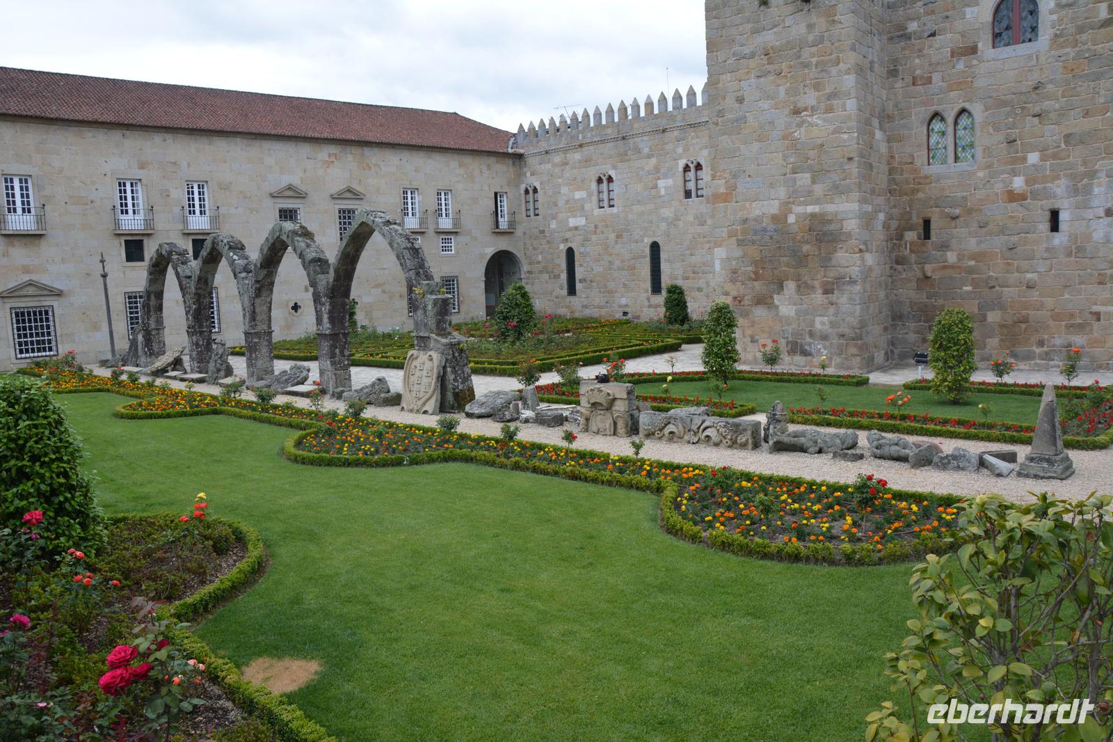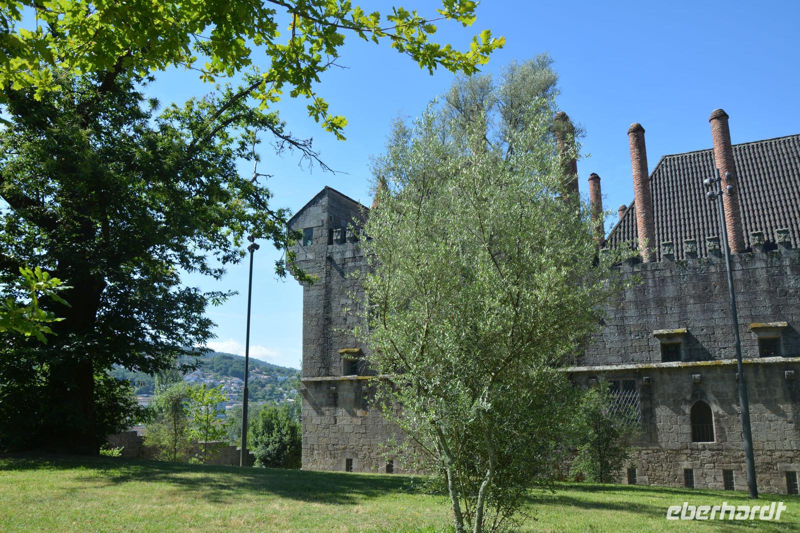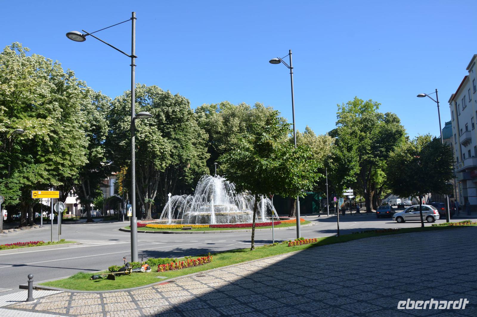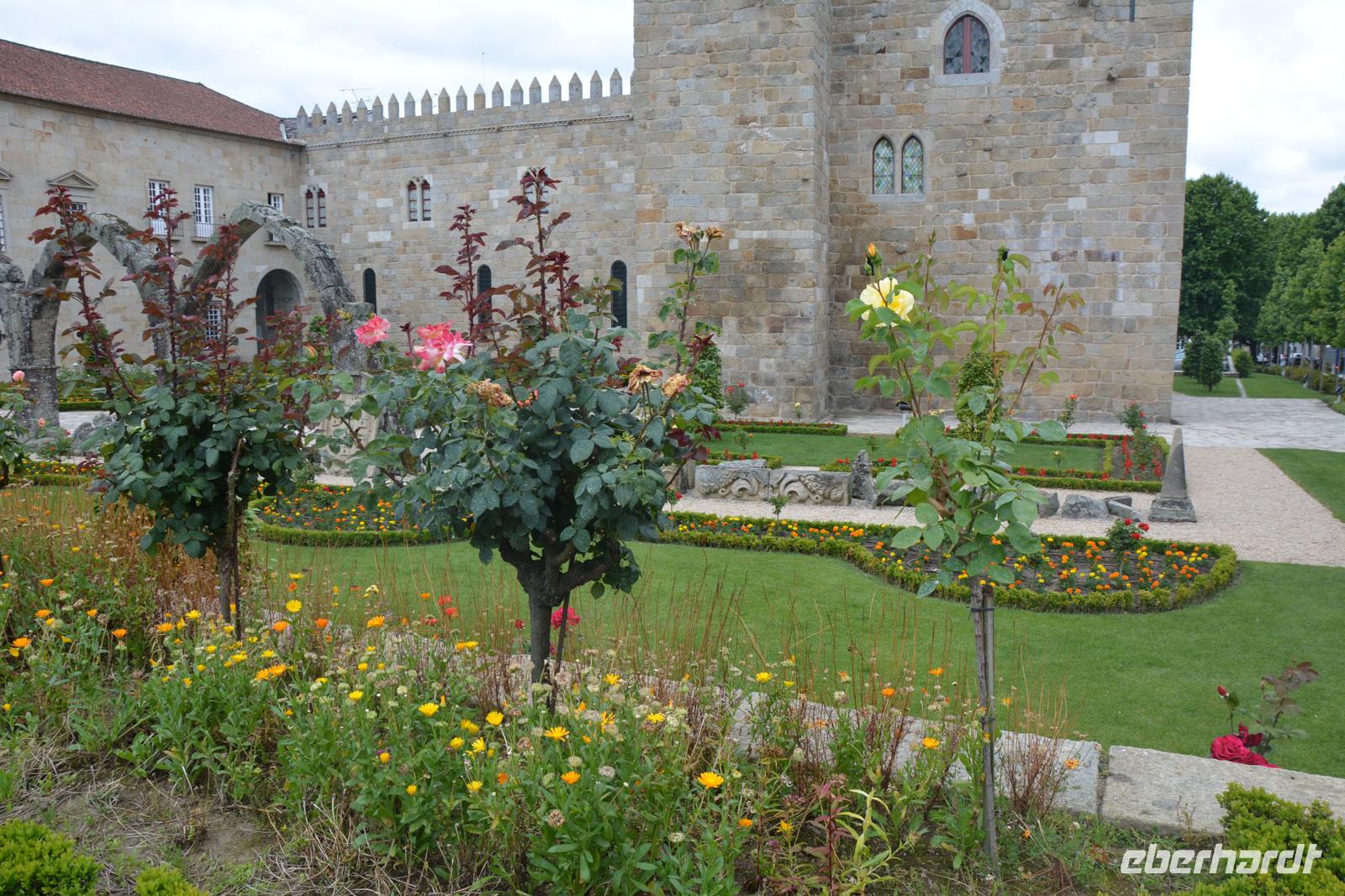 Nach einem gemütlichen Frühstück ist um 9 Uhr Abfahrt nach Guimarães. Durch die Fahrt durch Wälder von Eukalyptusbäumen, spricht Maria über Klima und Vegetation in Portugal. Nur eine Stunde später kommen wir in der UNESCO-Weltkulturerbestadt Guimarães an. Nach einer kurzen Toilettenpause liefen wir den Hügel hoch zu der Burg. Diese romanische Burg aus dem 10. Jahrhundert soll der Geburtsort des im 12. Jahrhundert geborenen ersten Königs von Portugal Alfons I. gewesen sein. Auch an der Capela São Miguel do Castelo, wo der König getauft wurde machten wir Halt. Nach einer Runde entlang der Burg kamen wir auf dem Rückweg auch wieder am Paço Dos Duques De Bragança vorbei, dem Palast des Königs. Anschließend spazierten wir die Straße runter vorbei an Largo Martins Sarmento, an der Kirche Capela a Virgem Maria, Senhora Nossa und dem Nonnenkloster Lar De Santa Estefânia vorbei. Weiter an dem Câmara Municipal de Guimarães vorbei, auf die Rua de Santa Maria, der mittelalterlichen Straße. Die hübsche Altstadt präsentierte sich uns bei der Besichtigung des Praça de São Tiago und dem Ölbaumplatz mit dem Alpendre, der quadratischen Säulenhalle. Hier besichtigten wir auch kurz die Igreja de Nossa Senhora da Oliveira. Hier war wieder eine schöne Gelegenheit sich ein nettes Plätzchen für die Mittagspause zu suchen oder die hübschen Gassen zu durchschlendern.Gegen 13:00 Uhr trafen wir uns dann alle bei der Bushaltestelle nahe der Igreja dos Santos-Passos und fuhren zu der Wallfahrtskirche nach Bom Jesus. Nur dreißig Minuten später standen wir vor dem Eingang zu der 1882 errichteten, ältesten Wasserballastbahn (Standseilbahn) der Welt, mit der wir den Berg hoch zur Kirche hinauffuhren. Nur wenige Minuten später sind wir oben, und steigen aus und können diesen herrlichen Ausblick kaum fassen. Maria sagte nach Ankunft einiges Wissenswertes und anschließend hatten wir genügend Zeit für individuelle Erkundungen der Kirche und der Anlage. Anschließend konnte man mit der Bahn wieder hinunterfahren oder die Via Sacra nach unten gehen. 570 Stufen bis ganz runter, wurden gezählt! Nachdem alle wieder im Bus saßen, konnten wir die Weiterfahrt nach Braga antreten. Bei Einfahrt in die Stadt Braga blicken uns 80er-Jahre Plattenbauten entgegen, die nicht sonderlich einladend aussahen, aber nach kurzer Fahrt erreichen wir das hübsche Innere der Stadt. Hier stiegen wir aus und unternahmen einen Nachmittagsspaziergang durch die Fußgängerzonen von Braga. Durch den Torbogen Arco da Nova Porta aus dem 16. Jahrhundert ging es vorbei an unzähligen Geschäften. Wir kamen an dem Episcopal Palace vorbei und dem herrlichen Rosengarten, an der Residence of the Crivos Casa dos Crivos und besichtigten die Igreja de Santa Cruz.