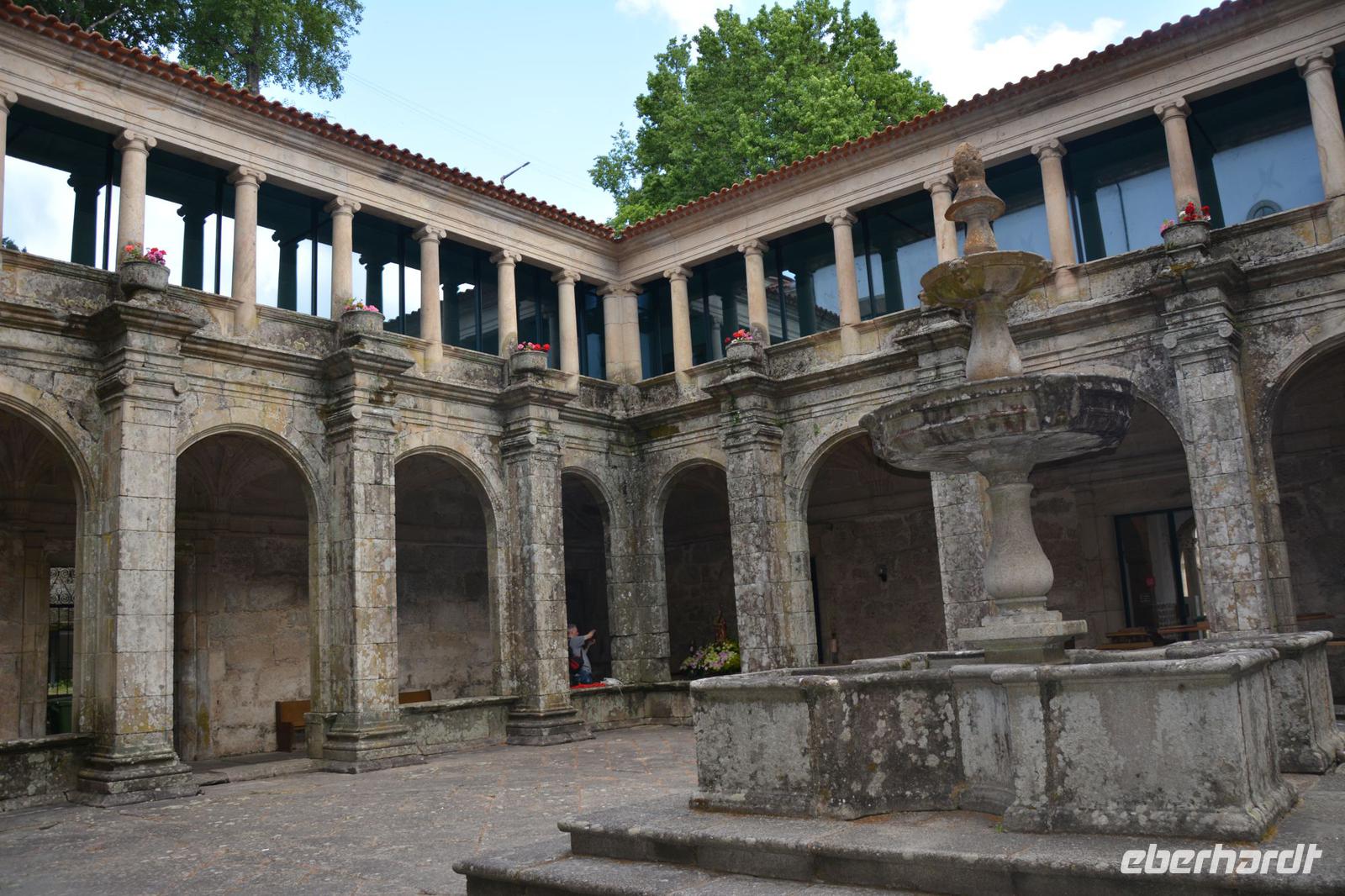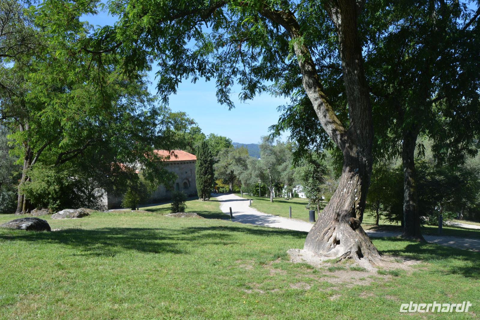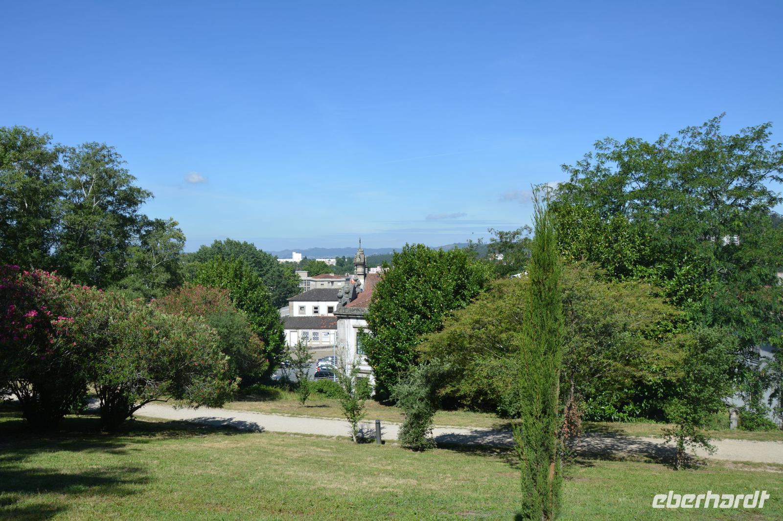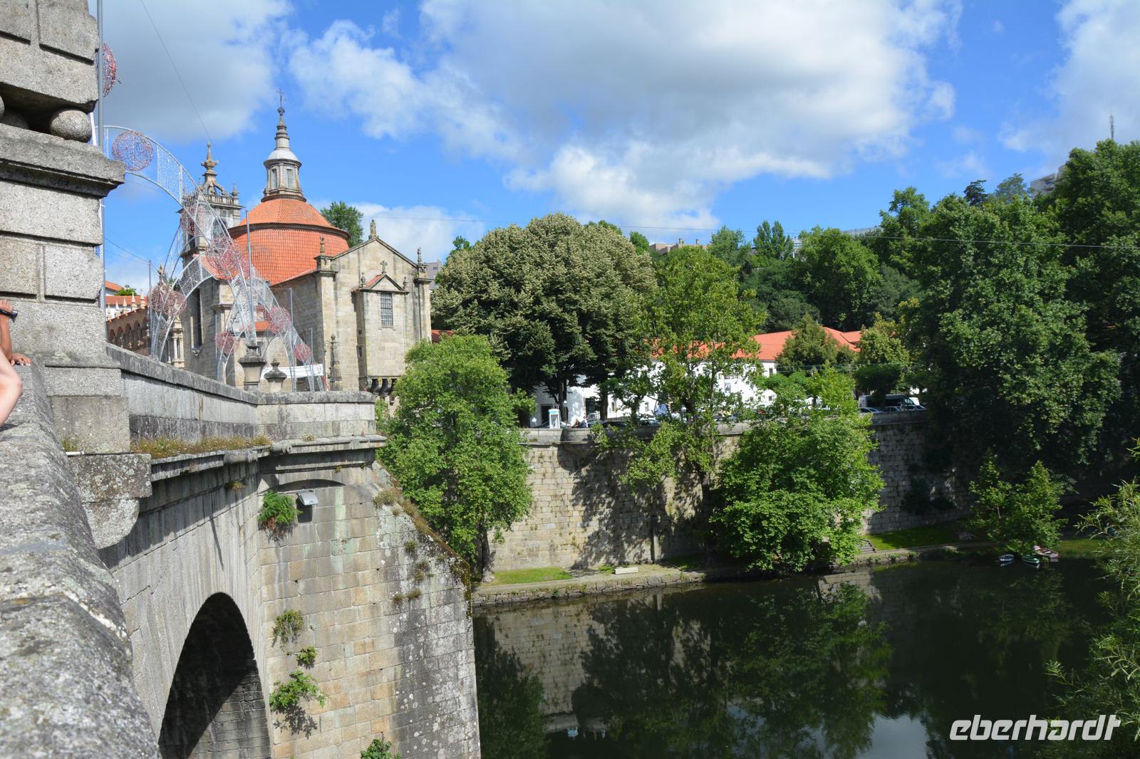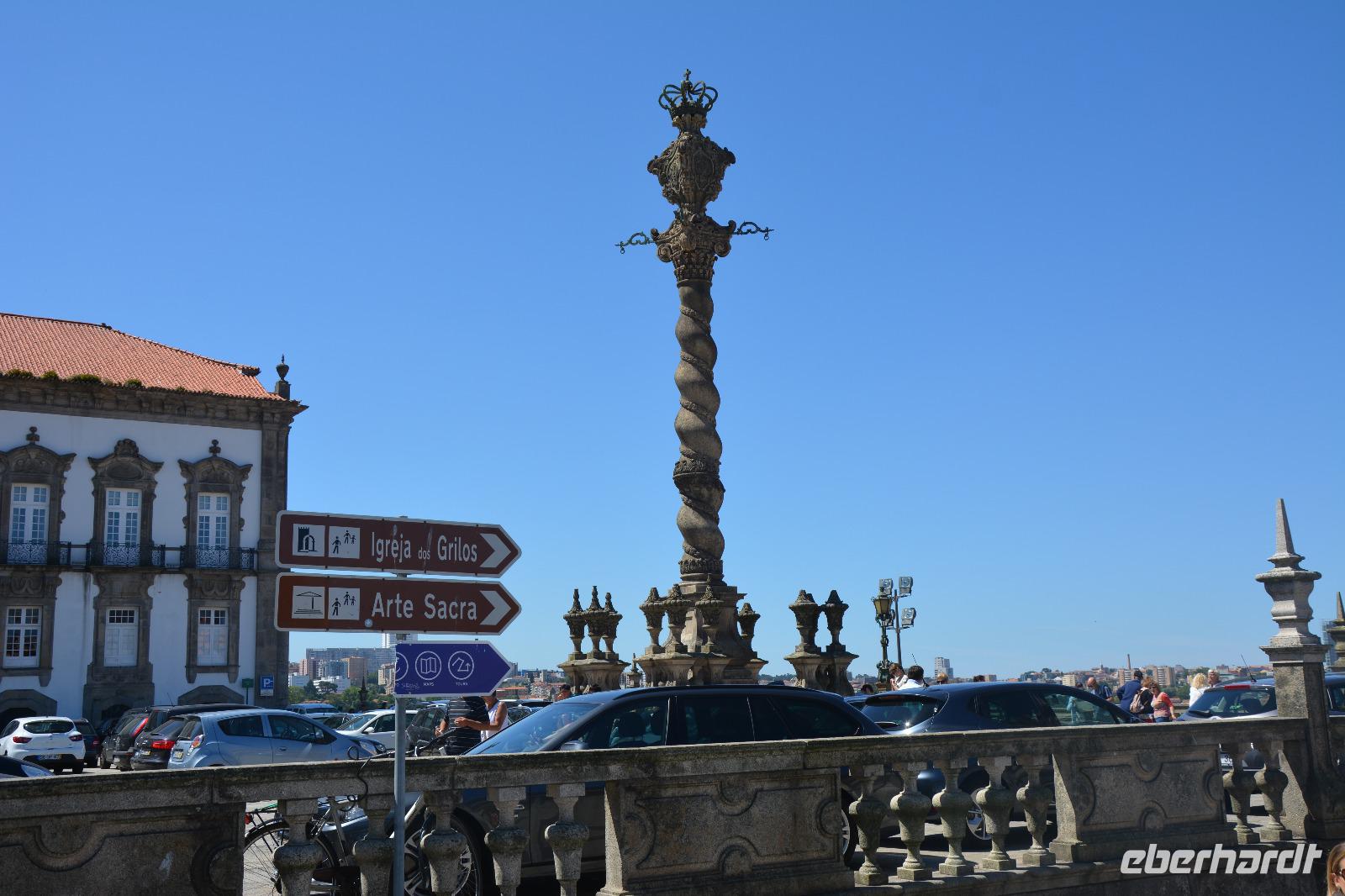 Nach einem gemütlichen Frühstück ist um 9 Uhr Abfahrt nach Guimarães. Durch die Fahrt durch Wälder von Eukalyptusbäumen, spricht Maria über Klima und Vegetation in Portugal. Nur eine Stunde später kommen wir in der UNESCO-Weltkulturerbestadt Guimarães an. Nach einer kurzen Toilettenpause liefen wir den Hügel hoch zu der Burg. Diese romanische Burg aus dem 10. Jahrhundert soll der Geburtsort des im 12. Jahrhundert geborenen ersten Königs von Portugal Alfons I. gewesen sein. Auch an der Capela São Miguel do Castelo, wo der König getauft wurde machten wir Halt. Nach einer Runde entlang der Burg kamen wir auf dem Rückweg auch wieder am Paço Dos Duques De Bragança vorbei, dem Palast des Königs. Anschließend spazierten wir die Straße runter vorbei an Largo Martins Sarmento, an der Kirche Capela a Virgem Maria, Senhora Nossa und dem Nonnenkloster Lar De Santa Estefânia vorbei. Weiter an dem Câmara Municipal de Guimarães vorbei, auf die Rua de Santa Maria, der mittelalterlichen Straße. Die hübsche Altstadt präsentierte sich uns bei der Besichtigung des Praça de São Tiago und dem Ölbaumplatz mit dem Alpendre, der quadratischen Säulenhalle. Hier besichtigten wir auch kurz die Igreja de Nossa Senhora da Oliveira. Hier war wieder eine schöne Gelegenheit sich ein nettes Plätzchen für die Mittagspause zu suchen oder die hübschen Gassen zu durchschlendern.Gegen 13:00 Uhr trafen wir uns dann alle bei der Bushaltestelle nahe der Igreja dos Santos-Passos und fuhren zu der Wallfahrtskirche nach Bom Jesus. Nur dreißig Minuten später standen wir vor dem Eingang zu der 1882 errichteten, ältesten Wasserballastbahn (Standseilbahn) der Welt, mit der wir den Berg hoch zur Kirche hinauffuhren. Nur wenige Minuten später sind wir oben, und steigen aus und können diesen herrlichen Ausblick kaum fassen. Maria sagte nach Ankunft einiges Wissenswertes und anschließend hatten wir genügend Zeit für individuelle Erkundungen der Kirche und der Anlage. Anschließend konnte man mit der Bahn wieder hinunterfahren oder die Via Sacra nach unten gehen. 570 Stufen bis ganz runter, wurden gezählt! Nachdem alle wieder im Bus saßen, konnten wir die Weiterfahrt nach Braga antreten. Bei Einfahrt in die Stadt Braga blicken uns 80er-Jahre Plattenbauten entgegen, die nicht sonderlich einladend aussahen, aber nach kurzer Fahrt erreichen wir das hübsche Innere der Stadt. Hier stiegen wir aus und unternahmen einen Nachmittagsspaziergang durch die Fußgängerzonen von Braga. Durch den Torbogen Arco da Nova Porta aus dem 16. Jahrhundert ging es vorbei an unzähligen Geschäften. Wir kamen an dem Episcopal Palace vorbei und dem herrlichen Rosengarten, an der Residence of the Crivos Casa dos Crivos und besichtigten die Igreja de Santa Cruz.