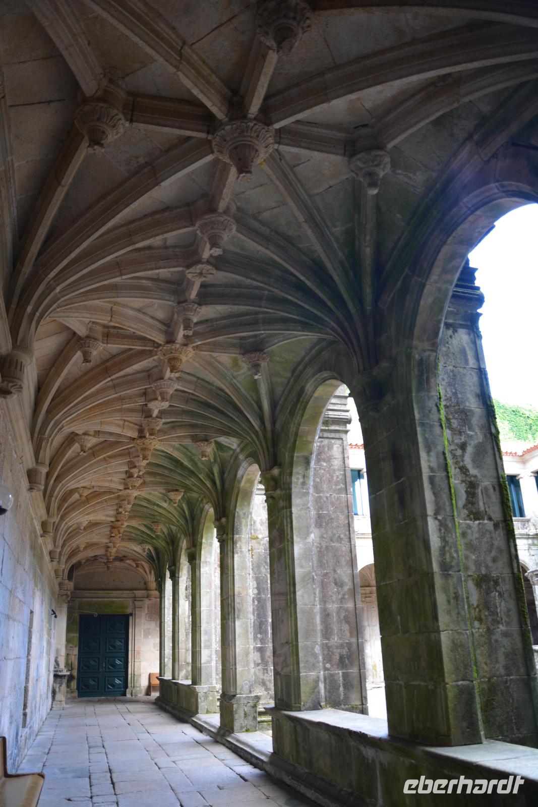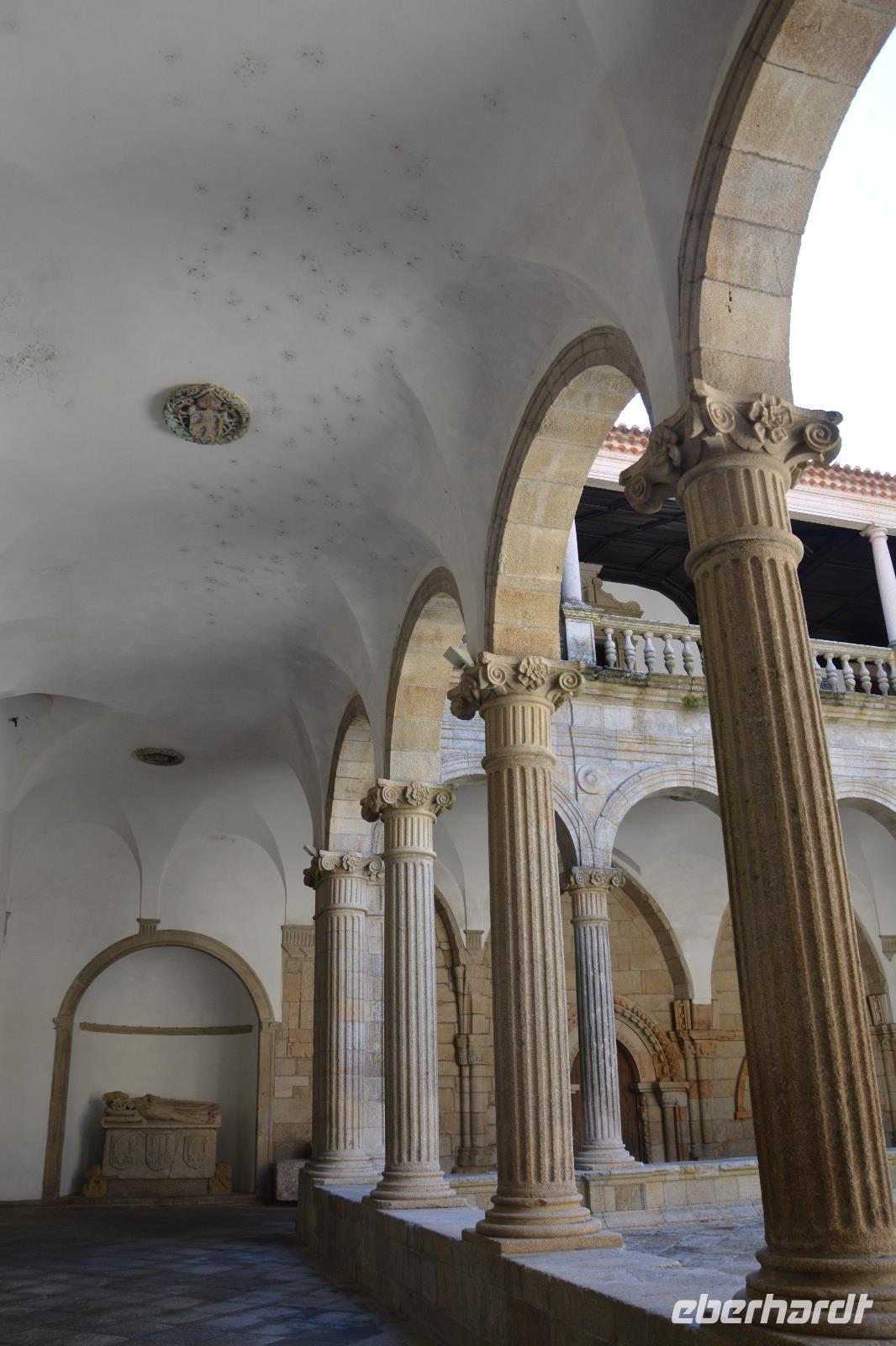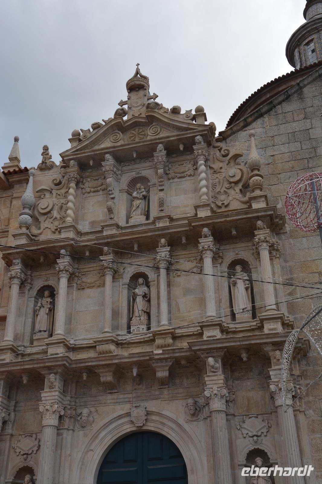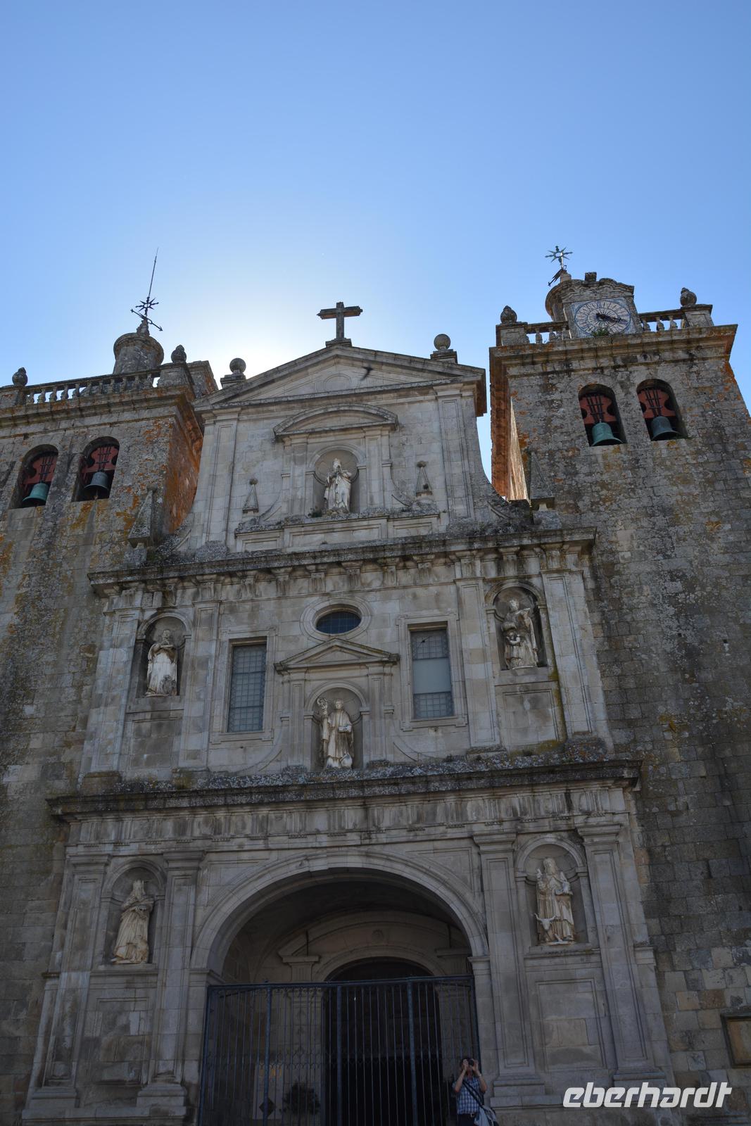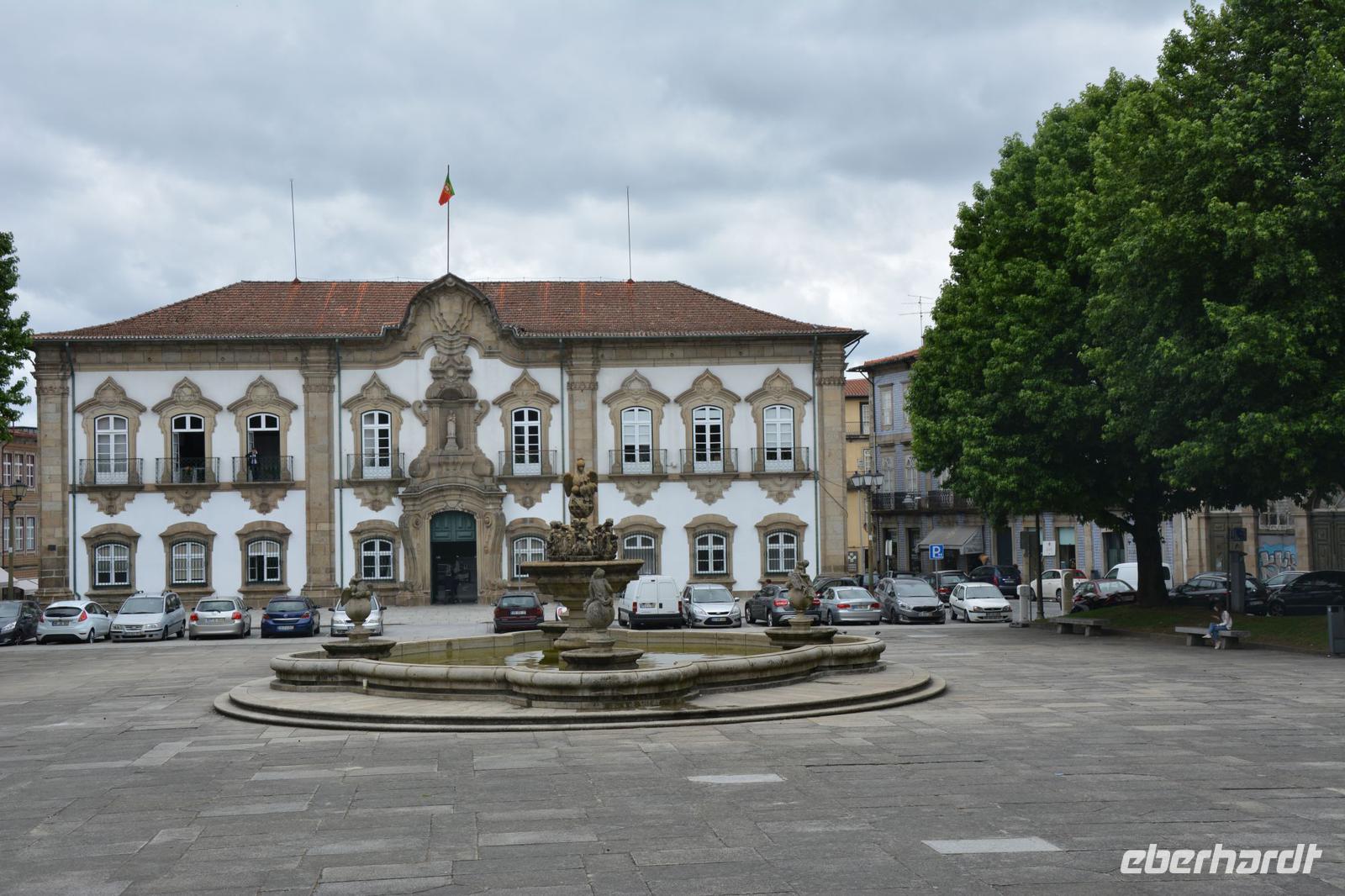 Nach einem gemütlichen Frühstück ist um 9 Uhr Abfahrt nach Guimarães. Durch die Fahrt durch Wälder von Eukalyptusbäumen, spricht Maria über Klima und Vegetation in Portugal. Nur eine Stunde später kommen wir in der UNESCO-Weltkulturerbestadt Guimarães an. Nach einer kurzen Toilettenpause liefen wir den Hügel hoch zu der Burg. Diese romanische Burg aus dem 10. Jahrhundert soll der Geburtsort des im 12. Jahrhundert geborenen ersten Königs von Portugal Alfons I. gewesen sein. Auch an der Capela São Miguel do Castelo, wo der König getauft wurde machten wir Halt. Nach einer Runde entlang der Burg kamen wir auf dem Rückweg auch wieder am Paço Dos Duques De Bragança vorbei, dem Palast des Königs. Anschließend spazierten wir die Straße runter vorbei an Largo Martins Sarmento, an der Kirche Capela a Virgem Maria, Senhora Nossa und dem Nonnenkloster Lar De Santa Estefânia vorbei. Weiter an dem Câmara Municipal de Guimarães vorbei, auf die Rua de Santa Maria, der mittelalterlichen Straße. Die hübsche Altstadt präsentierte sich uns bei der Besichtigung des Praça de São Tiago und dem Ölbaumplatz mit dem Alpendre, der quadratischen Säulenhalle. Hier besichtigten wir auch kurz die Igreja de Nossa Senhora da Oliveira. Hier war wieder eine schöne Gelegenheit sich ein nettes Plätzchen für die Mittagspause zu suchen oder die hübschen Gassen zu durchschlendern.Gegen 13:00 Uhr trafen wir uns dann alle bei der Bushaltestelle nahe der Igreja dos Santos-Passos und fuhren zu der Wallfahrtskirche nach Bom Jesus. Nur dreißig Minuten später standen wir vor dem Eingang zu der 1882 errichteten, ältesten Wasserballastbahn (Standseilbahn) der Welt, mit der wir den Berg hoch zur Kirche hinauffuhren. Nur wenige Minuten später sind wir oben, und steigen aus und können diesen herrlichen Ausblick kaum fassen. Maria sagte nach Ankunft einiges Wissenswertes und anschließend hatten wir genügend Zeit für individuelle Erkundungen der Kirche und der Anlage. Anschließend konnte man mit der Bahn wieder hinunterfahren oder die Via Sacra nach unten gehen. 570 Stufen bis ganz runter, wurden gezählt! Nachdem alle wieder im Bus saßen, konnten wir die Weiterfahrt nach Braga antreten. Bei Einfahrt in die Stadt Braga blicken uns 80er-Jahre Plattenbauten entgegen, die nicht sonderlich einladend aussahen, aber nach kurzer Fahrt erreichen wir das hübsche Innere der Stadt. Hier stiegen wir aus und unternahmen einen Nachmittagsspaziergang durch die Fußgängerzonen von Braga. Durch den Torbogen Arco da Nova Porta aus dem 16. Jahrhundert ging es vorbei an unzähligen Geschäften. Wir kamen an dem Episcopal Palace vorbei und dem herrlichen Rosengarten, an der Residence of the Crivos Casa dos Crivos und besichtigten die Igreja de Santa Cruz.