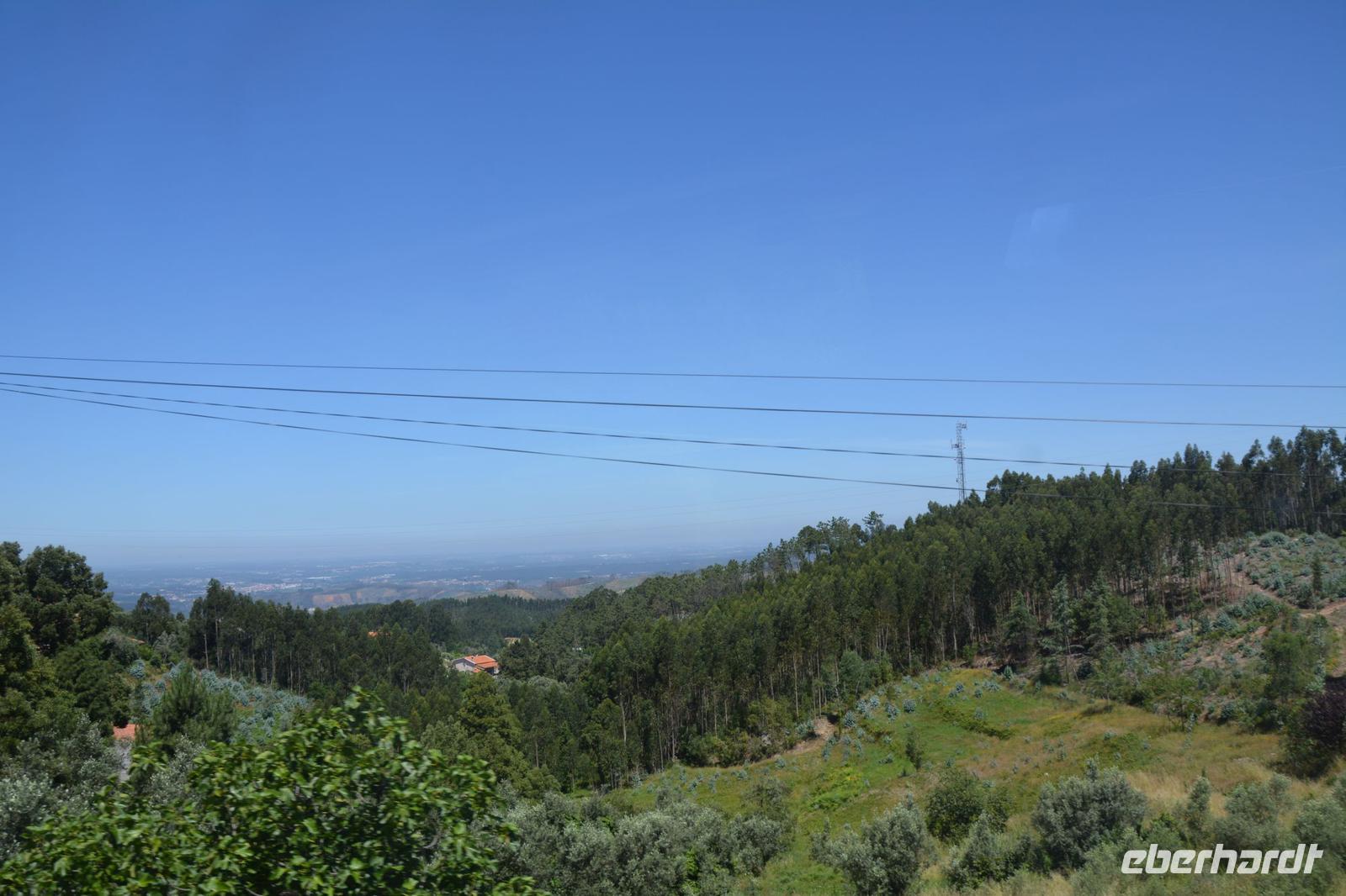 Gegen um neun Uhr fuhren wir nach einem leckeren Frühstücksbuffet auch schon wieder aus Peso da Régua, dem schönen Städtchen am Duoro ab. Heute fuhren wir als erstes nach Viseu. Jetzt waren erst 17° C, aber es fühlte sich schon bedeutend wärmer an. Isabel erklärte uns den heutigen Tagesablauf. Wir durchfuhren Kirsch- und Olivenbaumwälder, sahen blühende Esskastanien in dem Gebiet zwischen den Flüssen Duoro und Montego. Für die heutige Schulstunde hatte Isabel Themen, wie das Schulsystem, Sozial-und Gesundheitssystem auf Lager. Auch die schwierige Wirtschaftslage und die Arbeitssituation wurde angesprochen. Und so fuhren wir durch herrliche Wälder, über Brücken und durch Kurven mit steilen Felswänden. Die Weinlandschaften mit den Stufen des Duorotals verschwinden nun langsam und es zeigt sich eine grüne Weite mit vereinzelten Dörfern, deren meist weiße Häuser schon aus einiger Entfernung erkennbar sind.