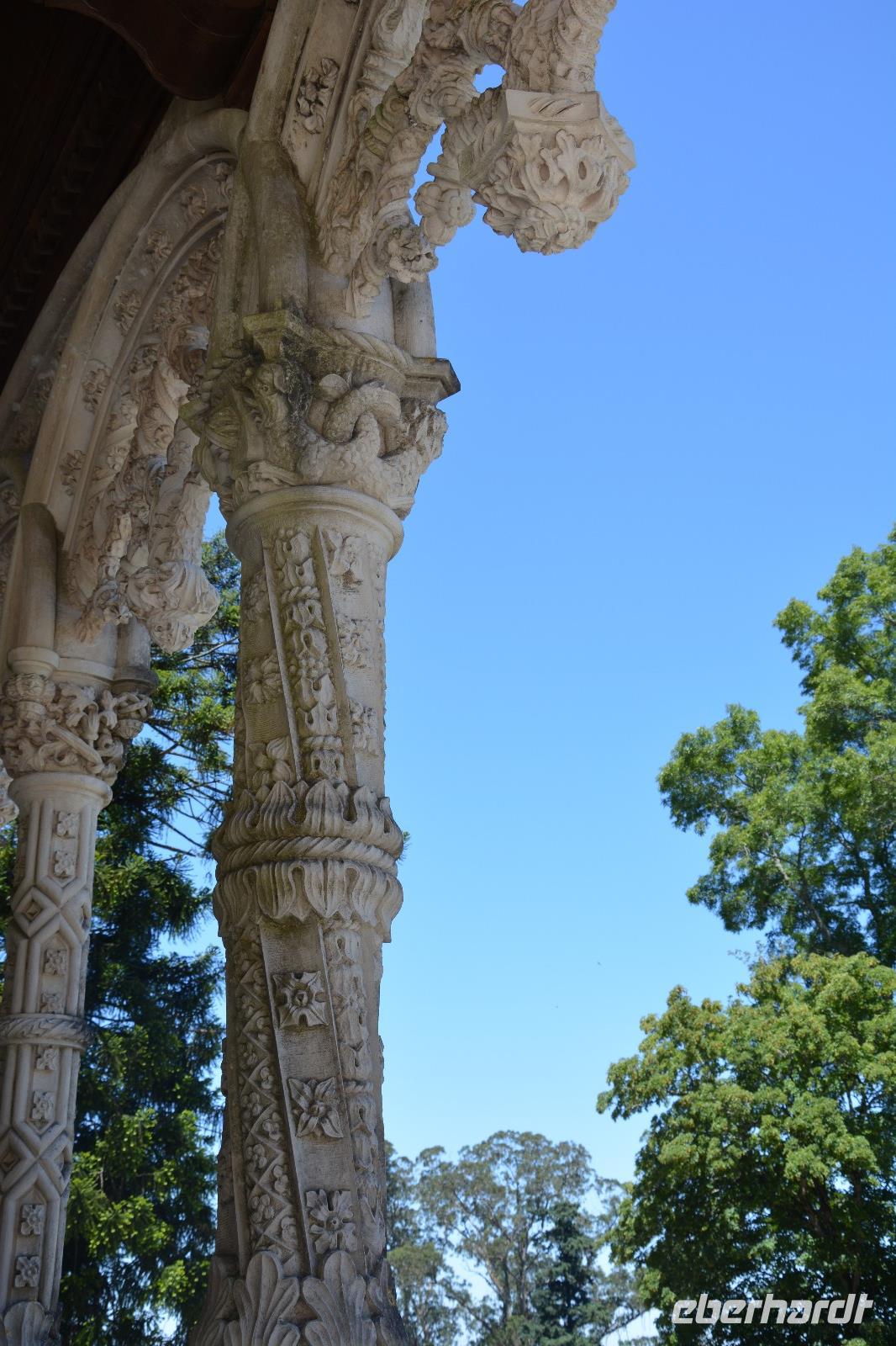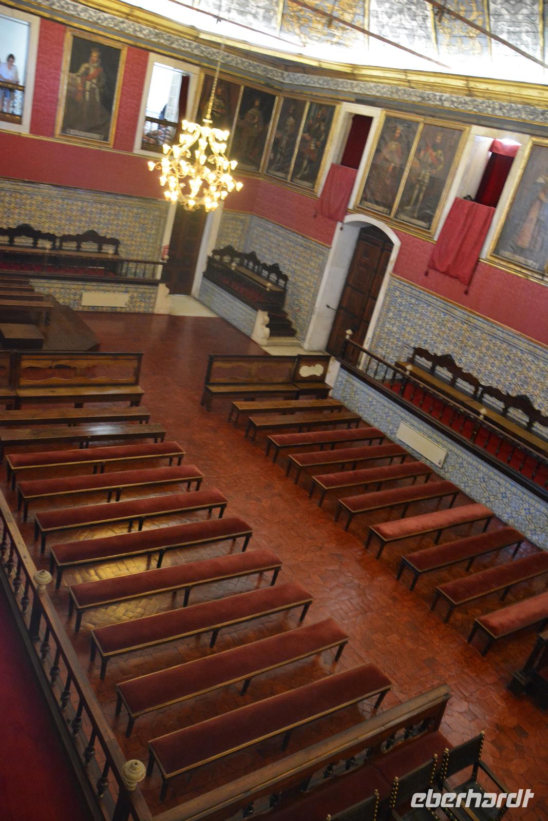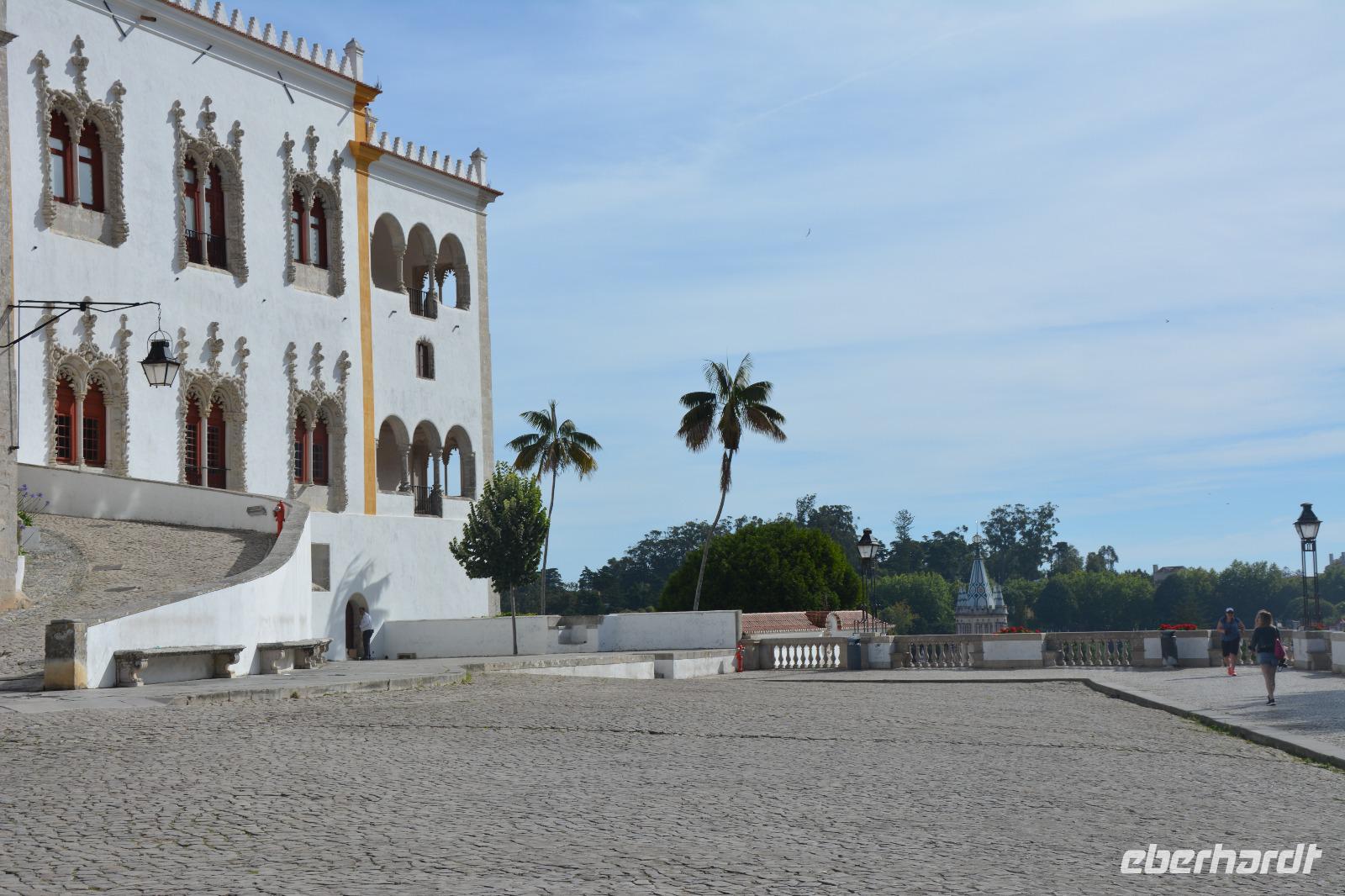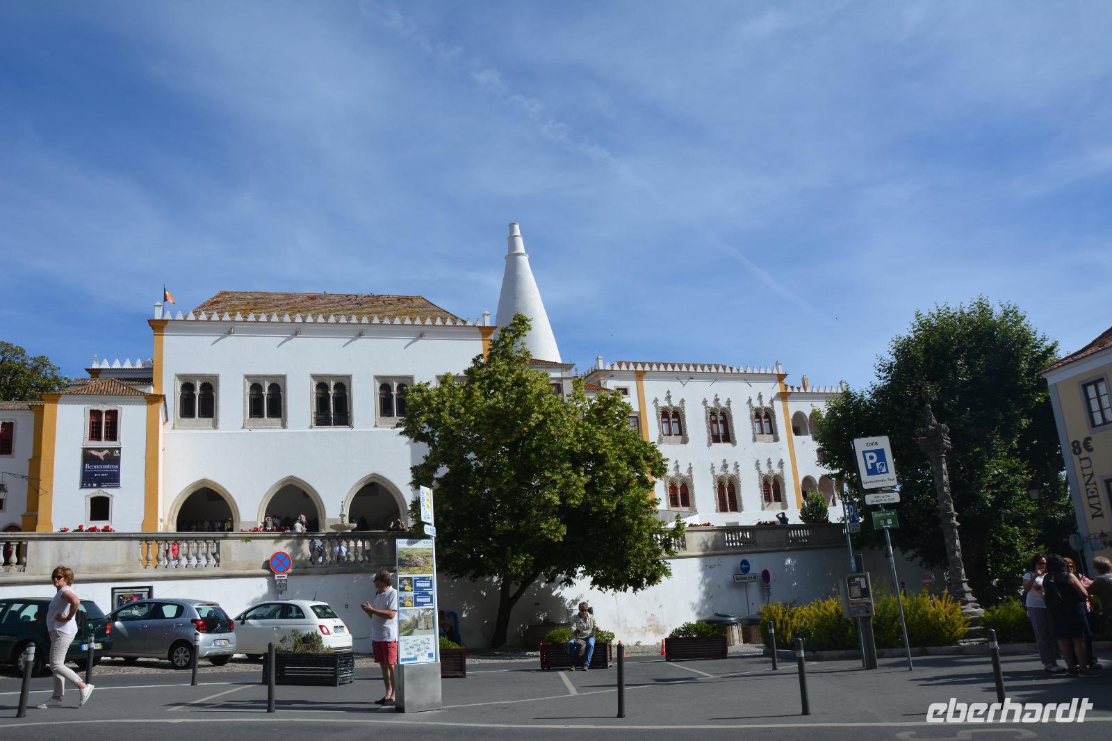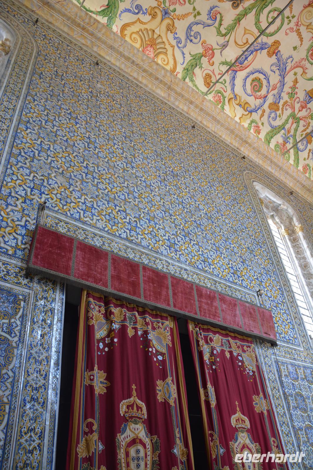 Dieses Schloss, welches im 16. Jahrhundert seine heutige Form erhielt, hat maurische Züge und beinhaltet eine Sammlung an kostbaren alten Möbeln. Wir besichtigten als erstes den unter König Joao I. errichteten Schwanensaal. Und so ging es von Raum zu Raum- jeder war anders gestaltet. Aus den Fenstern oder den unüberdachten Außentreppen sah man gegenüber in der Ferne auf dem Berg die maurische Burg. Auch der indische Einfluss in der Baukunst und den Möbeln war sichtbar. Aber das Hauptschmuckstück des ganzen Gebäudes ist der prächtige Wappensaal, mit seinen rundherum angebrachten blau weißen Azulejos und der herrlichen goldenen Decke. Nach der Besichtigung des Schlosses hatten wir noch kurz Zeit durch die Stadt zu spazieren, ehe es dann auch wieder in den Bus ging. Anschließend fuhren wir zur Klippe Cabo da Roca.