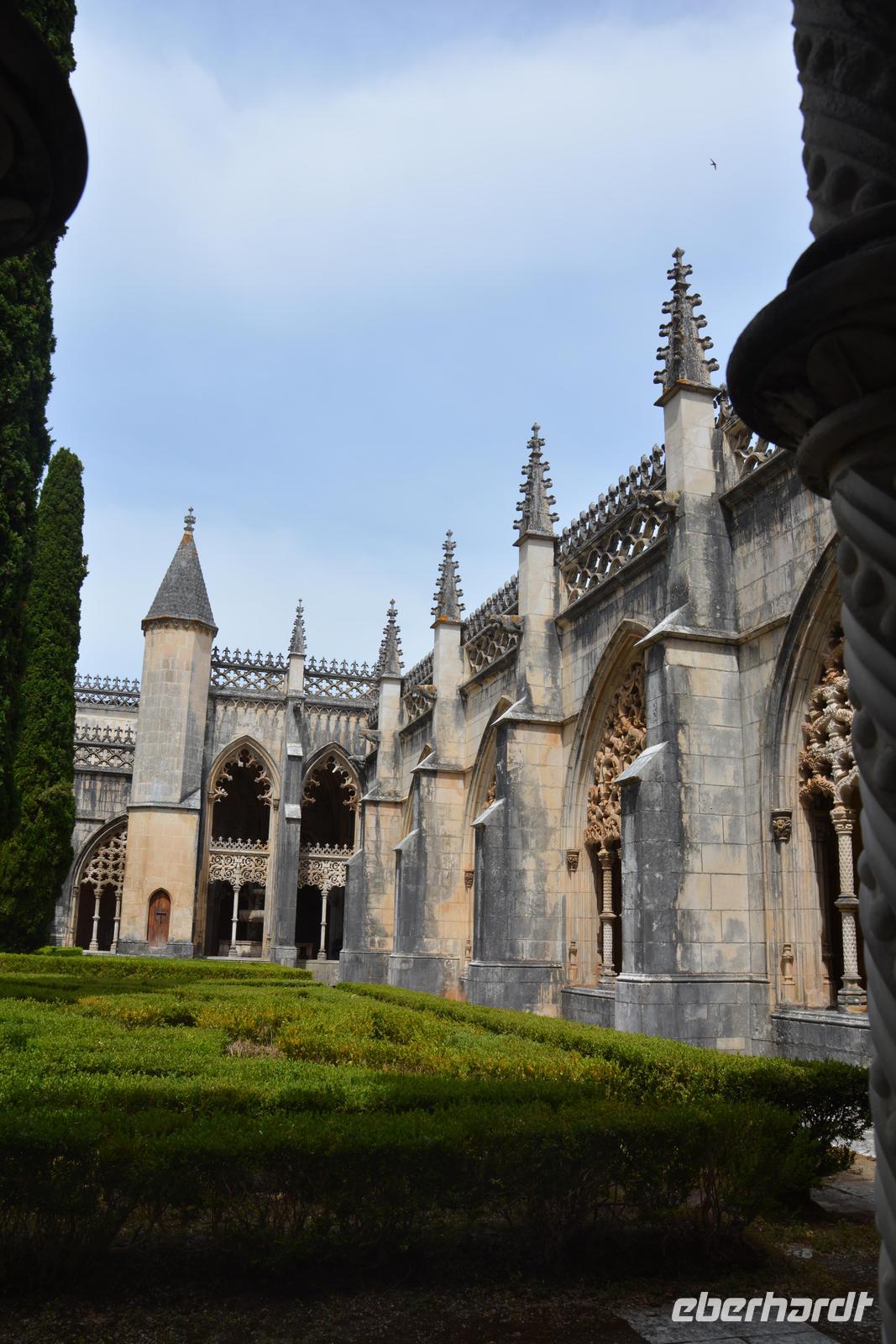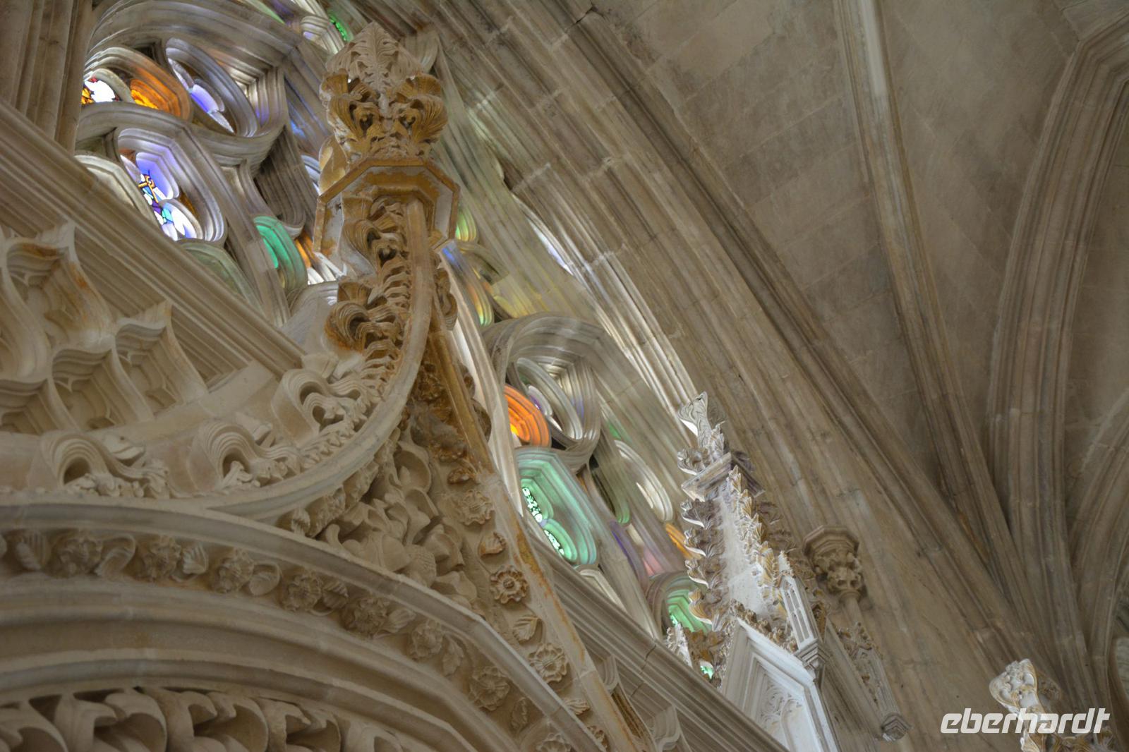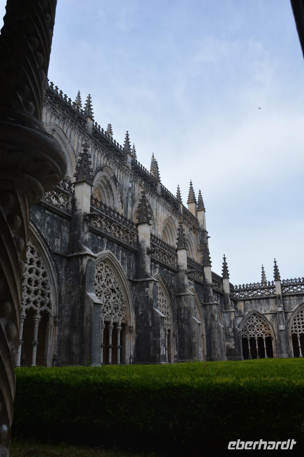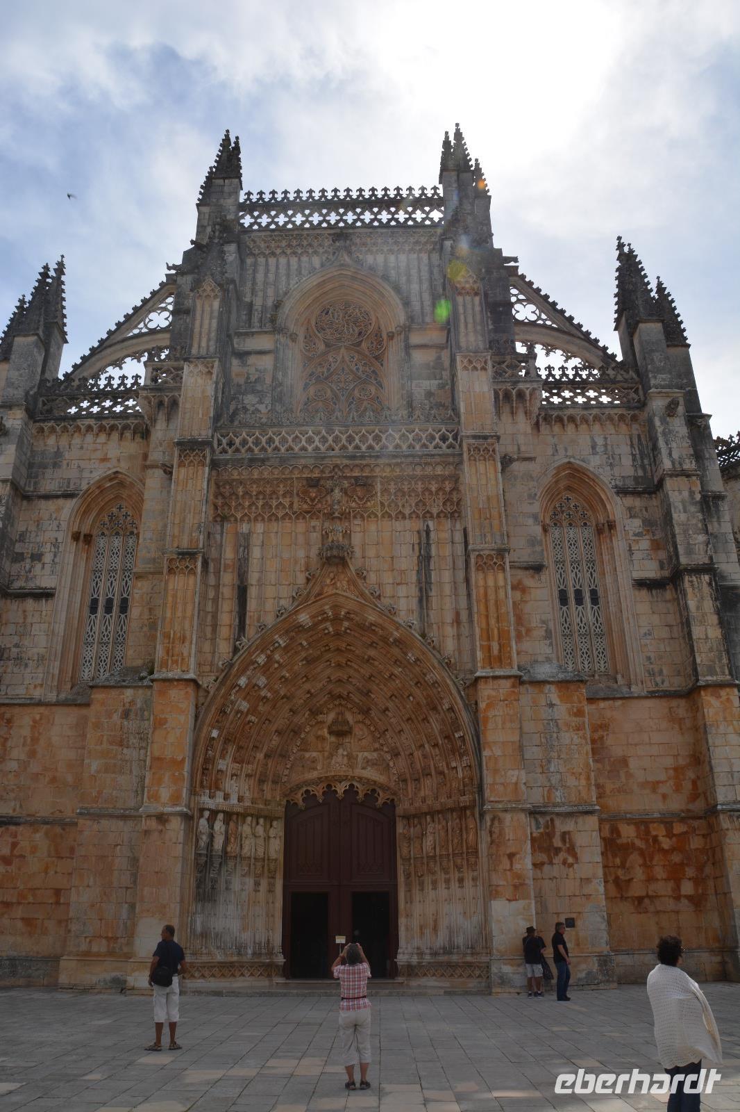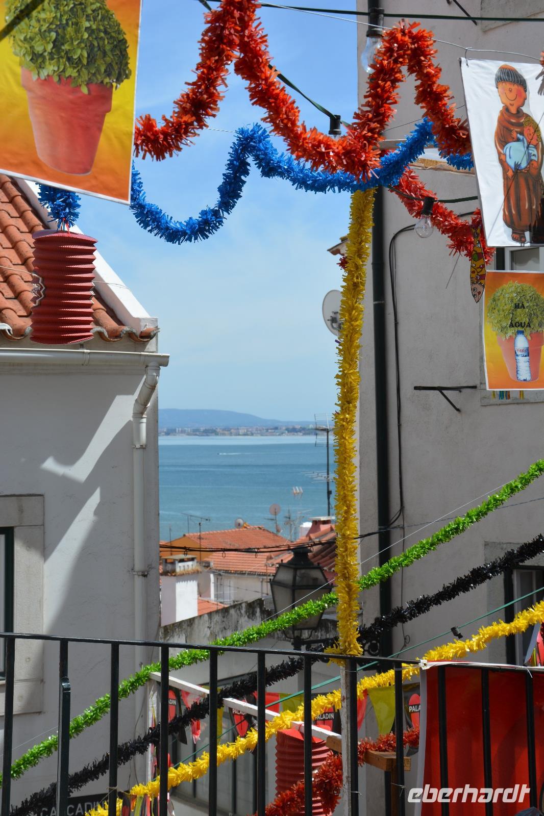 Morgens trafen wir uns alle zu einem gemeinsamen Frühstück und wenig später reisten wir auch schon wieder in Coimbra ab. Gleich am Morgen bekommen wir von Isabel eine kleine Portugiesischkunde und lernen auch über die Entwicklung der portugiesischen Sprache. Nun ging es aus der Stadt raus in das Grün der Wälder. Neben der schönen Landschaft mit seiner abwechslungsreichen Vegetation, war auch die zahlreichen Storchennester in den Hochspannungsleitern ein Höhepunkt der Fahrt. Für heute stand viel auf dem Plan, aber gestärkt durch ein gutes Frühstück und einem Café (com leite) oder Chá (Tee) oder Bica (Espresso) konnte unser Tag beginnen. Als erstes Ziel für heute stand Fátima auf unserer Liste. Mittlerweile hatte sich die Temperaturanzeige im Bus auf 24° hochgearbeitet, als wir nach 40 Minuten Fahrt in Fatima einfuhren. Schon auf den letzten Metern zu unserem Ausstiegsplatz, sahen wir die ganzen Souveniergeschäfte die Marienfiguren in verschiedenen Ausführungen und Größen im Schaufenster ausgestellt hatten. Der Bus hielt gleich in der Nähe des Hauptmarienplatzes in Portugal und wir liefen gemeinsam in Richtung der Kirchen. Isabel erklärte noch kurz was über die Geschichte der Kirchen und über den Papstbesuch im Mai 2017 und über riesige Meneg Menschen auf diesem Platz. Danach hatten wir Zeit die beiden Kirchen, sowohl die Basilika Unserer Lieben Frau des Rosenkranzes und die Kirche der Dreifaltigkeit zu besichtigen. Die beiden Heiligtümer sind sehr verschieden. Die Basilika ist nicht ganz so überladen, wie andere Kirchen, die wir bisher auf unserer Reise durch Portugal gesehen haben. Und die Basilika zur Heiligsten Dreifaltigkeit schlicht, wo man sich wirklich nur auf den Glauben konzentrieren soll. Das war dann auch unser kurzer Besuch in Fátima und wir fuhren entlang der Straßen mit etlichen Souvenirgeschäften. Wir fuhren an schön blühenden Oleandern vorbei nach Bathala. Nach kurzer Bewunderung der herrlich gestalteten Aussenfassade des Klosters von Bathala, besuchten wir als erstes die Capela do Fundador, die Kapelle mit den Gräbern der portugiesischen Herrscherfamilie. Hier waren besonders die bunt bemalten Glasfenster ein Hingucker, durch die das Licht einfiel und sich in bunten Mustern auf dem Boden abbildete. Dann ging es in die eigentliche Kirche und den Kreuzgang. Ein besonderer Anblick bot sich auch durch die Unvollendete Kapelle, wo man dann vom Inneren der Kapelle in den schönen blauen Himmel sehen konnte, da das Dach nie fertiggestellt wurde. Isabel erklärte uns die Baugeschichte dieses Gebäudes, während wir die detailliert verzierten Spitzbögen bewunderten und Schwalben über unsere Köpfe flogen. In den sich anschließenden fünfzehn Minuten Freizeit, konnten wir schnell einmal auf Toilette gehen, Souvenirs oder Gebäck kaufen. Nun setzten wir unsere Fahrt nach Nazaré fort, wo wir dann unsere Mittagspause machen konnten. Aus dem ehemaligen Fischerdorf Nazare in der kleinen Bucht ist ein beschauliches Örtchen geworden, wo Touristen ganz und gar auf ihre Kosten kommen. Hier an der Küste gibt es natürlich eine Vielzahl an leckerem frischen Fisch in den vielen Restaurants an der Promenade. Hier konnte man dann auch nach dem Essen noch die Zeit nutzen, um in den zahlreichen Läden nach Souvenirs oder Süßspeisen zu stöbern, zu shoppen oder einfach nur zu verweilen. Denn hier findet sich alles, was das Touristenherz begehrt. Und natürlich der meterlanger Sandstrand. Halb drei hieß es dann auch schon wieder Abfahrt in die nächste Stadt: nach Obidos. Isabel erklärt über die Tracht der Frauen und die alte Fischergemeinschaft von Nazaré, als wir aus dem kleinen Städtchen wieder herausfuhren. Nach nur vierzig Minuten Fahrt kamen wir in Obidos an, und liefen gemeinsam durch die kleinen Gässchen, durch die sich schon viele Touristen drängten. Obidos mit seinen weißen Häusern und bunten Kanten an den Häusern, den blühenden Blumen und Pflanzen hatte seinen ganz eigenen Kleinstadtcharme. Wir spazierten gemeinsam bis zur Kirche Santa Maria und dann teilten wir uns auf. Weiße Häuser mit verschiedenfarbigen Kanten je Haus. Die im 13. Jahrhundert erbaute Burg von Obidos mit seiner langen Stadtmauer, war auf jeden Fall eine Besichtigung wert. Ansonsten luden auch hier die Souvenirgeschäfte ein, den hier hergestellten Kirschlikör Ginjinha zu probieren. Am späten Nachmittag machten wir uns dann endlich auf den Weg in die Hauptstadt des Landes: Lissabon oder auf Portugiesisch Lisboa. Unser Hotel Roma lag im oberen Teil der Stadt, wo wir dann gegen sechs Uhr abends ankamen. Noch kurz Zeit zum Auspacken und dann gab es auch schon Abendessen im hoteleigenen Restaurant. Diesmal waren Isabel und Nuno nicht mit uns im Hotel untergebracht, da Isabel selber aus Lissabon kommt und Nuno bei Freunden schlief.