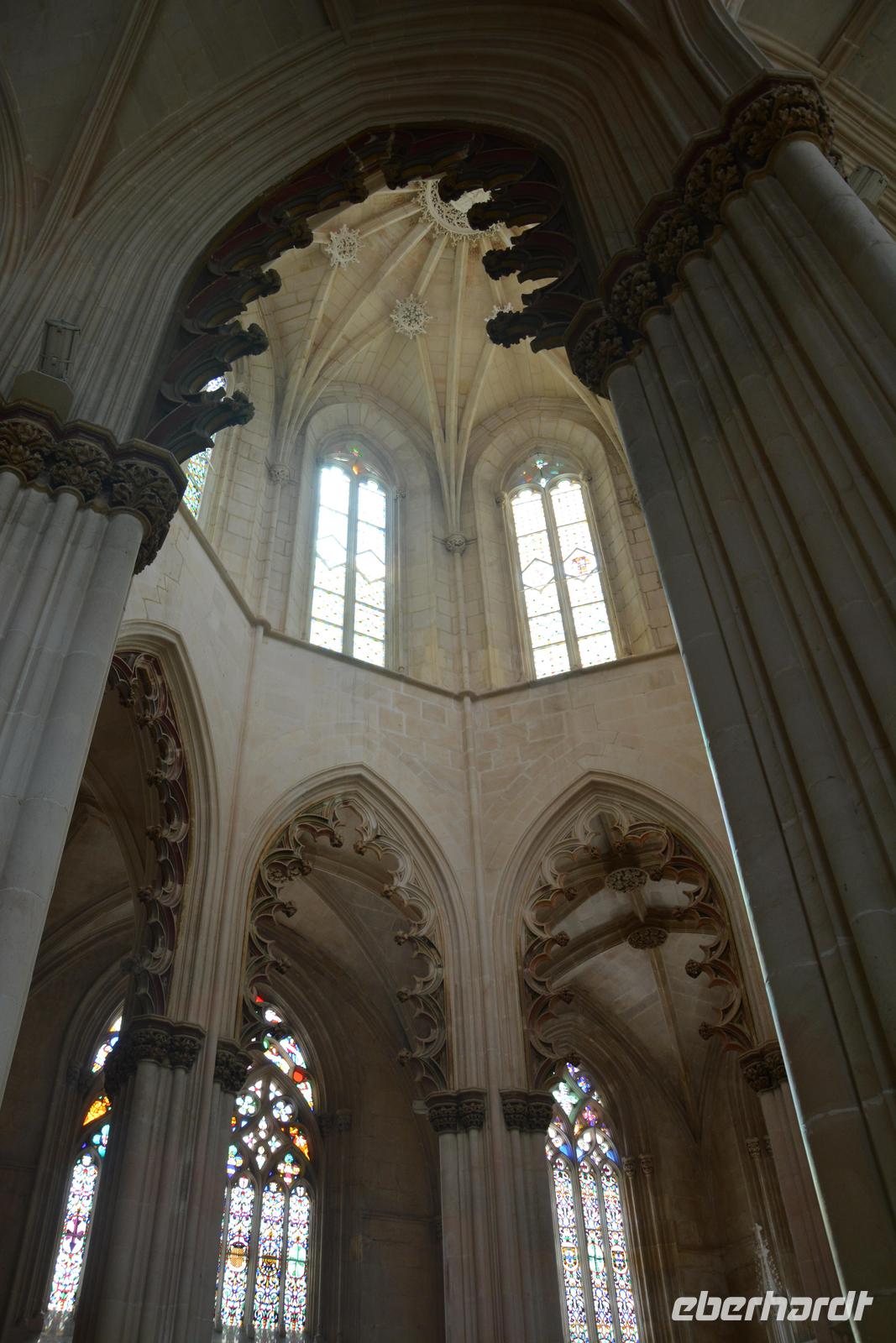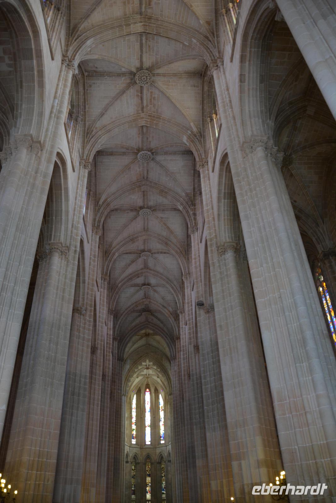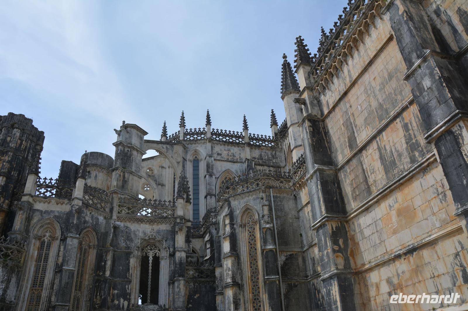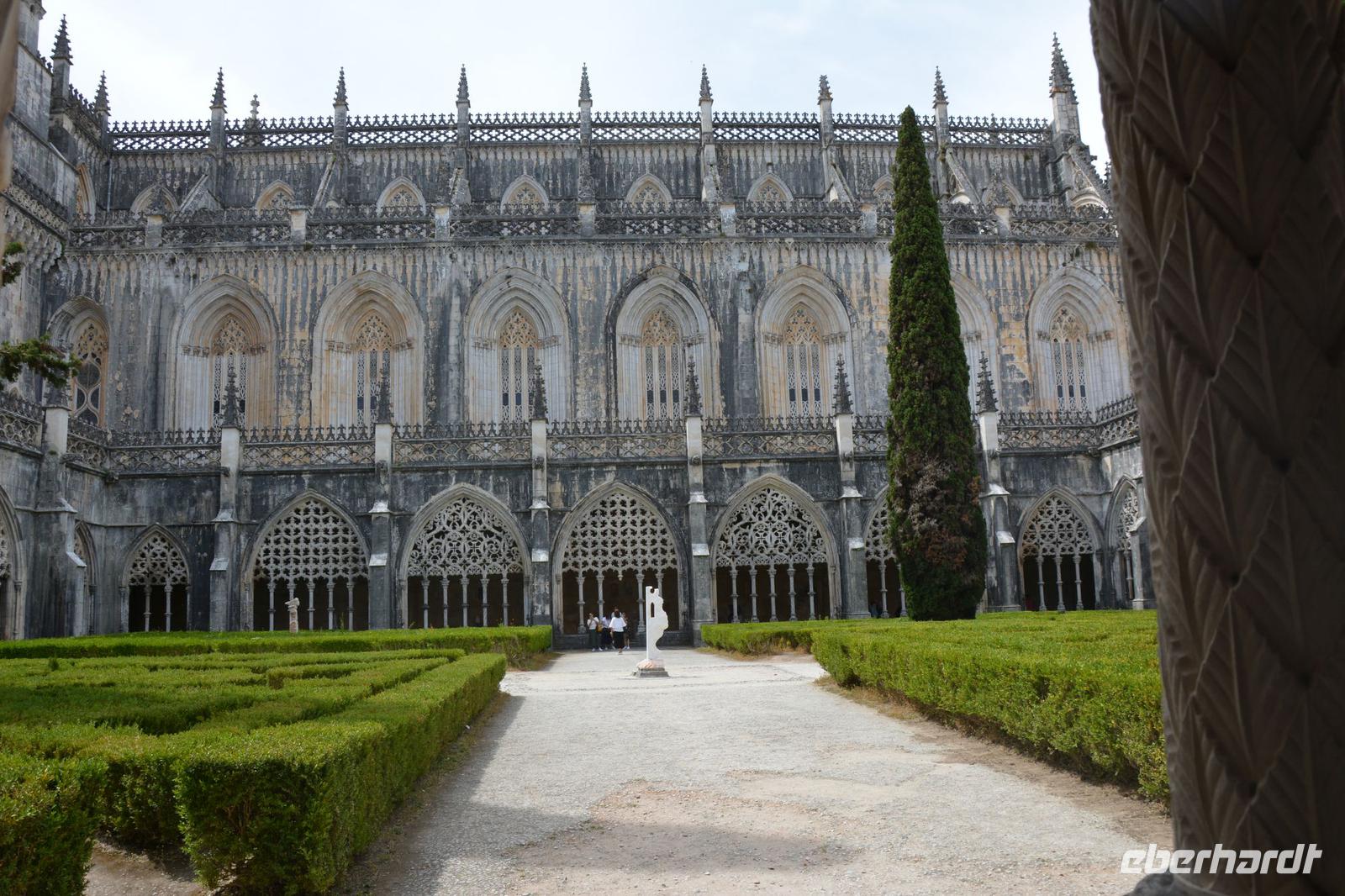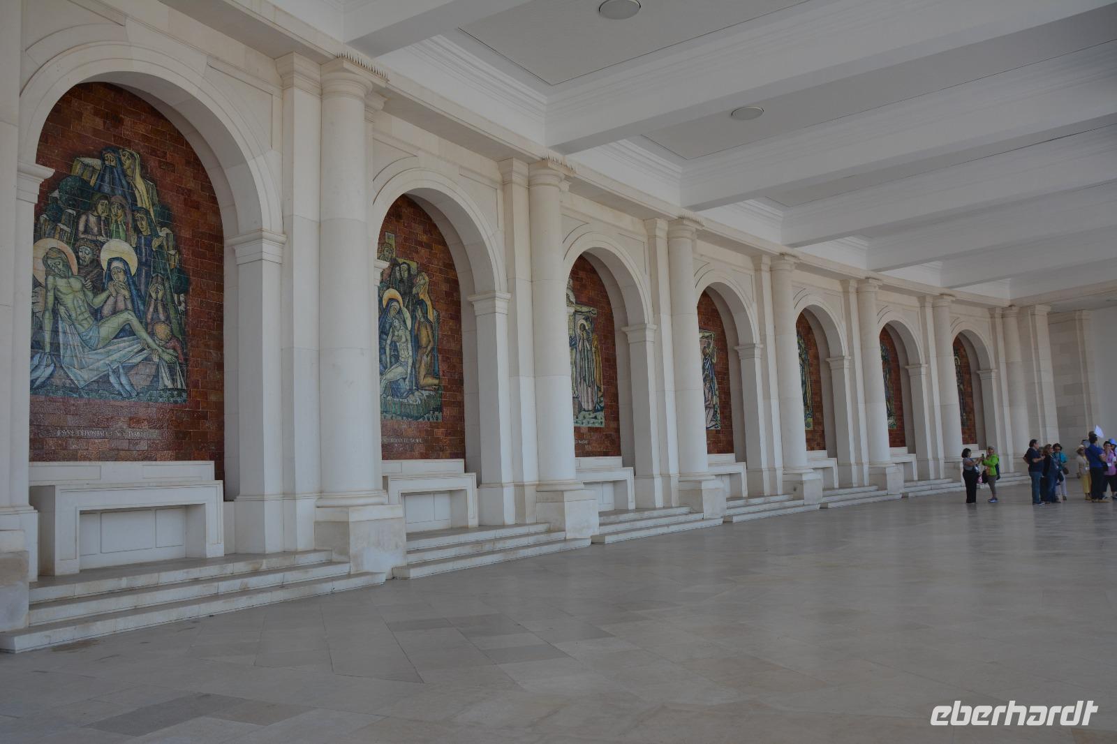 Morgens trafen wir uns alle zu einem gemeinsamen Frühstück und wenig später reisten wir auch schon wieder in Coimbra ab. Gleich am Morgen bekommen wir von Isabel eine kleine Portugiesischkunde und lernen auch über die Entwicklung der portugiesischen Sprache. Nun ging es aus der Stadt raus in das Grün der Wälder. Neben der schönen Landschaft mit seiner abwechslungsreichen Vegetation, war auch die zahlreichen Storchennester in den Hochspannungsleitern ein Höhepunkt der Fahrt. Für heute stand viel auf dem Plan, aber gestärkt durch ein gutes Frühstück und einem Café (com leite) oder Chá (Tee) oder Bica (Espresso) konnte unser Tag beginnen. Als erstes Ziel für heute stand Fátima auf unserer Liste. Mittlerweile hatte sich die Temperaturanzeige im Bus auf 24° hochgearbeitet, als wir nach 40 Minuten Fahrt in Fatima einfuhren. Schon auf den letzten Metern zu unserem Ausstiegsplatz, sahen wir die ganzen Souveniergeschäfte die Marienfiguren in verschiedenen Ausführungen und Größen im Schaufenster ausgestellt hatten. Der Bus hielt gleich in der Nähe des Hauptmarienplatzes in Portugal und wir liefen gemeinsam in Richtung der Kirchen. Isabel erklärte noch kurz was über die Geschichte der Kirchen und über den Papstbesuch im Mai 2017 und über riesige Meneg Menschen auf diesem Platz. Danach hatten wir Zeit die beiden Kirchen, sowohl die Basilika Unserer Lieben Frau des Rosenkranzes und die Kirche der Dreifaltigkeit zu besichtigen. Die beiden Heiligtümer sind sehr verschieden. Die Basilika ist nicht ganz so überladen, wie andere Kirchen, die wir bisher auf unserer Reise durch Portugal gesehen haben. Und die Basilika zur Heiligsten Dreifaltigkeit schlicht, wo man sich wirklich nur auf den Glauben konzentrieren soll. Das war dann auch unser kurzer Besuch in Fátima und wir fuhren entlang der Straßen mit etlichen Souvenirgeschäften. Wir fuhren an schön blühenden Oleandern vorbei nach Bathala. Nach kurzer Bewunderung der herrlich gestalteten Aussenfassade des Klosters von Bathala, besuchten wir als erstes die Capela do Fundador, die Kapelle mit den Gräbern der portugiesischen Herrscherfamilie. Hier waren besonders die bunt bemalten Glasfenster ein Hingucker, durch die das Licht einfiel und sich in bunten Mustern auf dem Boden abbildete. Dann ging es in die eigentliche Kirche und den Kreuzgang. Ein besonderer Anblick bot sich auch durch die Unvollendete Kapelle, wo man dann vom Inneren der Kapelle in den schönen blauen Himmel sehen konnte, da das Dach nie fertiggestellt wurde. Isabel erklärte uns die Baugeschichte dieses Gebäudes, während wir die detailliert verzierten Spitzbögen bewunderten und Schwalben über unsere Köpfe flogen. In den sich anschließenden fünfzehn Minuten Freizeit, konnten wir schnell einmal auf Toilette gehen, Souvenirs oder Gebäck kaufen. Nun setzten wir unsere Fahrt nach Nazaré fort, wo wir dann unsere Mittagspause machen konnten. Aus dem ehemaligen Fischerdorf Nazare in der kleinen Bucht ist ein beschauliches Örtchen geworden, wo Touristen ganz und gar auf ihre Kosten kommen. Hier an der Küste gibt es natürlich eine Vielzahl an leckerem frischen Fisch in den vielen Restaurants an der Promenade. Hier konnte man dann auch nach dem Essen noch die Zeit nutzen, um in den zahlreichen Läden nach Souvenirs oder Süßspeisen zu stöbern, zu shoppen oder einfach nur zu verweilen. Denn hier findet sich alles, was das Touristenherz begehrt. Und natürlich der meterlanger Sandstrand. Halb drei hieß es dann auch schon wieder Abfahrt in die nächste Stadt: nach Obidos. Isabel erklärt über die Tracht der Frauen und die alte Fischergemeinschaft von Nazaré, als wir aus dem kleinen Städtchen wieder herausfuhren. Nach nur vierzig Minuten Fahrt kamen wir in Obidos an, und liefen gemeinsam durch die kleinen Gässchen, durch die sich schon viele Touristen drängten. Obidos mit seinen weißen Häusern und bunten Kanten an den Häusern, den blühenden Blumen und Pflanzen hatte seinen ganz eigenen Kleinstadtcharme. Wir spazierten gemeinsam bis zur Kirche Santa Maria und dann teilten wir uns auf. Weiße Häuser mit verschiedenfarbigen Kanten je Haus. Die im 13. Jahrhundert erbaute Burg von Obidos mit seiner langen Stadtmauer, war auf jeden Fall eine Besichtigung wert. Ansonsten luden auch hier die Souvenirgeschäfte ein, den hier hergestellten Kirschlikör Ginjinha zu probieren. Am späten Nachmittag machten wir uns dann endlich auf den Weg in die Hauptstadt des Landes: Lissabon oder auf Portugiesisch Lisboa. Unser Hotel Roma lag im oberen Teil der Stadt, wo wir dann gegen sechs Uhr abends ankamen. Noch kurz Zeit zum Auspacken und dann gab es auch schon Abendessen im hoteleigenen Restaurant. Diesmal waren Isabel und Nuno nicht mit uns im Hotel untergebracht, da Isabel selber aus Lissabon kommt und Nuno bei Freunden schlief.