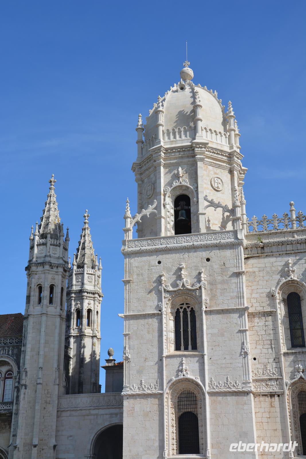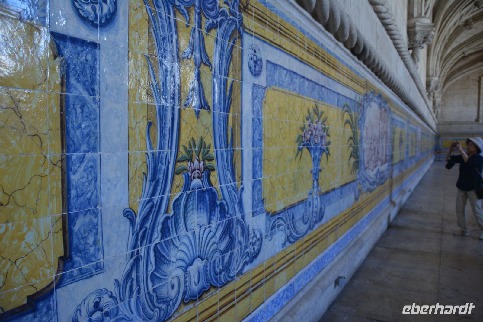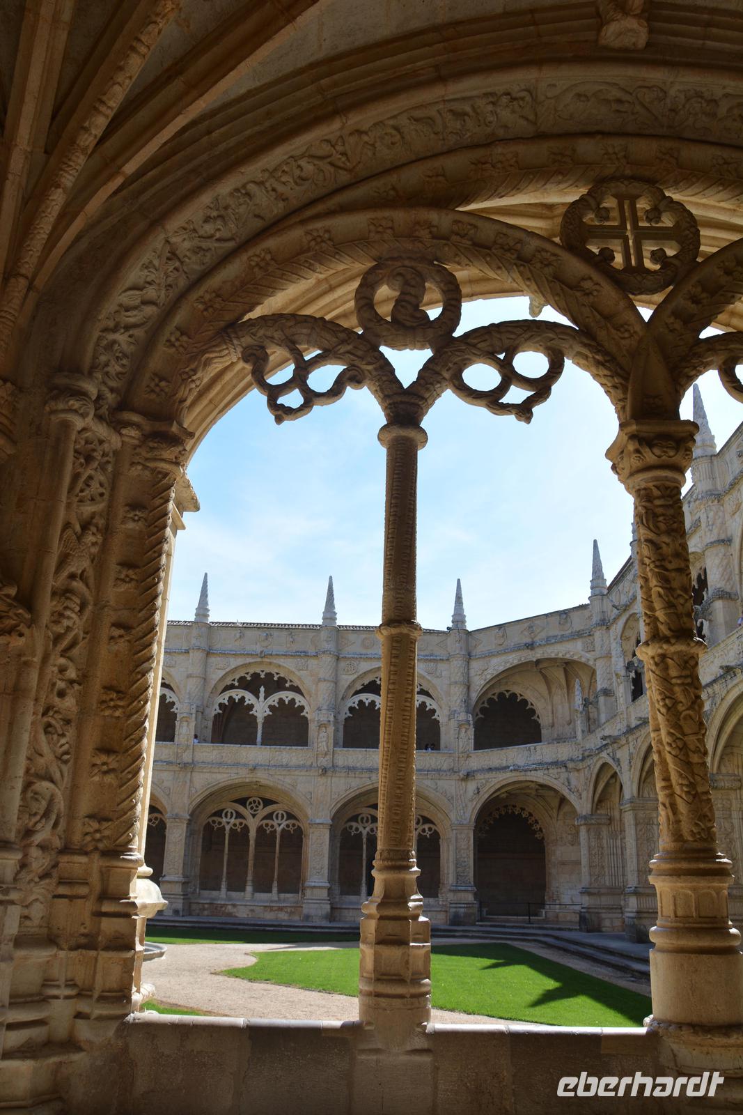 An unserem ersten Tag in Lissabon ging es nach dem stärkenden Frühstücksbuffet um neun Uhr los zur Stadterkundung. Wir durchfuhren das Viertel Campo pequeno, sahen das große Aquädukt mit seinen mächtigen Bögen, herrliche blau blühende Blumen, die an Zäunen sich langrankten, bis wir einen Hügel hinab direkt auf den Torre de Belem zufuhren. Doch dieser kam später an der Reihe. Unser erster Besichtigungsstopp war das Hieronymuskloster. Isabel erzählte von dem schweren Erdbeben 1755 und dem anschließenden verheerenden Brand, wovon das Hieronymuskloster jedoch verschont wurde. Am Kloster ausgestiegen bewunderten wir seine weiße glänzende Fassade. Nach einer kurzen Wartezeit, bis das Kloster öffnete, strömten wir mit den andern Touristen in das Innere. Wir liefen eine Runde durch das schöne Innere des Klosters. Als erstes ging es an dem Grab von dem portugiesischen Nationaldichter Luis de Camoues vorbei. Die Decke aus dem 16. Jahrhundert spiegelte gotische Kunst wieder, die nachgebildeten Glasfenster warfen ihr Muster auf den Boden, und das Grab von dem Seefahrer Vasco da Gama zeigte die Kunst der vielfältigen Verzierungen. In dem Kreuzgang sah man den Einfluss der maurischen Baukunst, und vor diesem schönen Hintergrund machten wir unser erstes Gruppenbild. Unsere Führung führte uns noch ein Stück weiter durch das Kloster, ehe wir dann einen halbe Stunde noch Freizeit hatten. Anschließend ging es am Porto de Lisboa vorbei, wo wir einen Fotostopp am Denkmal der Entdeckungen machten. Auch die beeindruckende große Windrose mit der Karte der Entdeckungen Portugals sahen wir, doch leider kaum im Ganzen, weil eine große Gruppe von Touristen direkt auf der Weltkarte stand. Nun ging es auch zu dem schon zuvor vorbeigefahrenen Torre de Belém. Dieser ehemalige Leuchtturm, der heute als Aussichtspunkt dient liegt direkt am Fluss Tejo. Von hier hat man auch einen Ausblick auf die Brücke des 25. April im Hintergrund. Pünktlich zur Mittagszeit ging es zu dem ursprünglichen Marktplatz Rossio, welcher zu den drei wichtigsten innerstädtischen Plätzen der Hauptstadt Lissabon gehört. Die umliegenden Straßen boten Restaurants, Souvenirgeschäfte und Sehenswürdigkeiten-alles in Laufnähe zum Rossio. Also nicht nur der Hauptplatz, sondern auch die restlichen Seitenstraßen luden zum Bummeln und Verweilen ein. Nach der Mittagspause ging es wieder als Gruppe vereint zu der Kathedrale Sé Patriarcal. Diese älteste Kirche der Stadt, welche auch dem Erdbeben zum Opfer fiel, wurde im 19. Jahrhundert im Stil der Romanik wieder aufgebaut. Dann ging es zu Fuß den Berg hoch, an einer alten Theaterruine vorbei hin zum Castelo Sao Jorge. Hier hatte man förmlich eine Panoramaaussicht über Lissabon und den Fluss Tejo. Nachdem wir die Aussicht bestaunt hatten, drehten wir auf der Burg noch eine Runde, wobei wir an Möbeln aus Kork und freilaufenden Pfauen vorbeikamen. Jetzt führte uns der Weg durch das Alfama-Viertel. An der Statue des St. Vicente hatten wir noch einmal eine hübsche Aussicht auf die Stadt. Danach fuhren wir noch mit dem Bus ein Stück, ehe wir wieder zu Fuß zu dem Lokal aufbrachen, wo wir den traditionellen Fadogesangt hören würden. Bei einem Wein der der Wahl und kleinen Tapas lauschten wir andenklich. Ein Mann oder eine Frau sangen, und wurden von eienm Gitarristen und einem Mann mit einer portugiesischen Gitarre begleitet. Anschließend ging es wieder zum Bus zurück und wir fuhren zum Hotel. Leider kamen wir am Schluss der Strecke ein wenig in den Feierabendverkehr von Lissabon, aber so konnten wir ein paar Fotos des Denkmals Miradouro do Parque Eduardo VII. bekommen. Beim Abendessen im Hotel wurde der Tag ausgewertet.