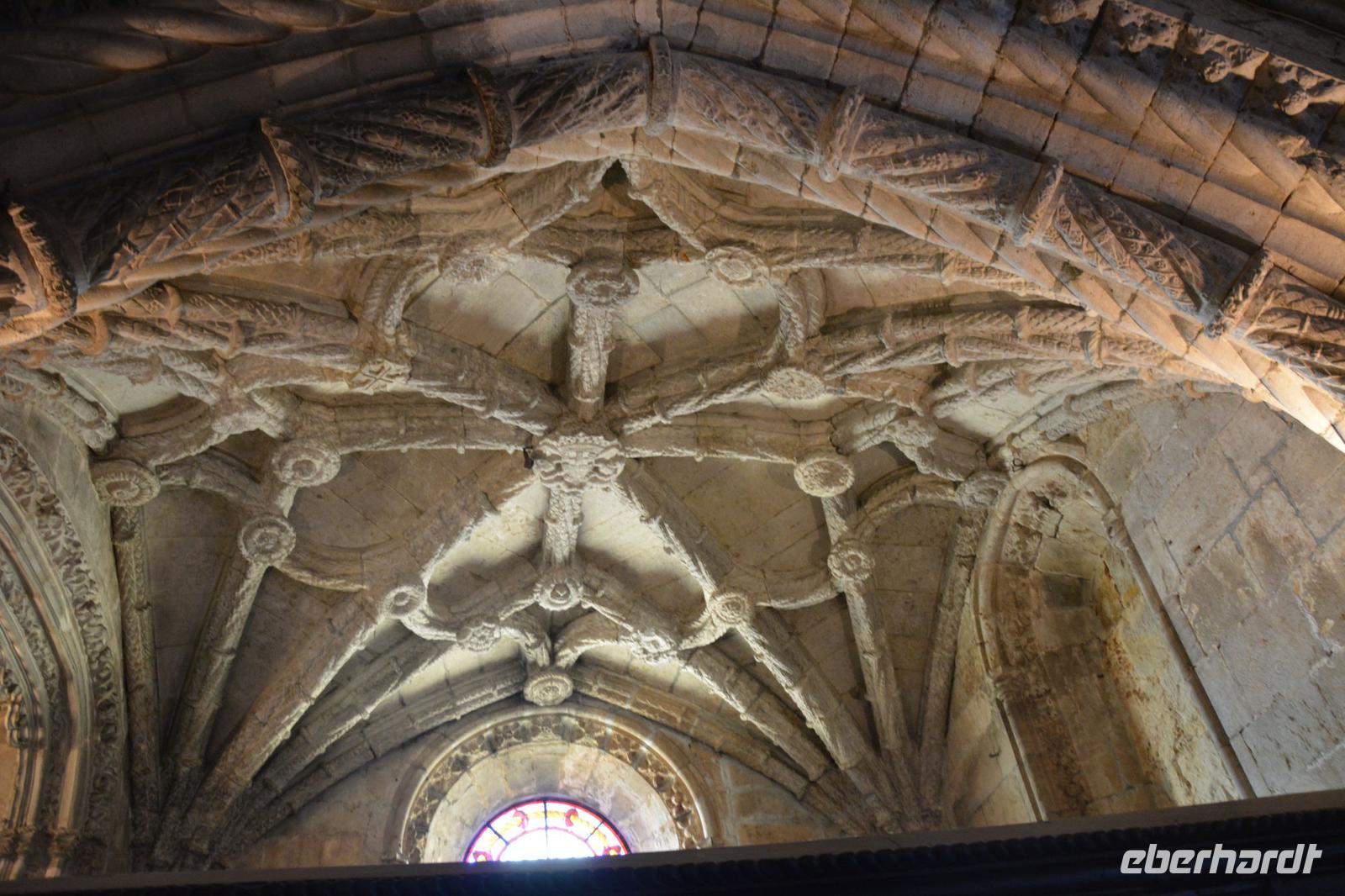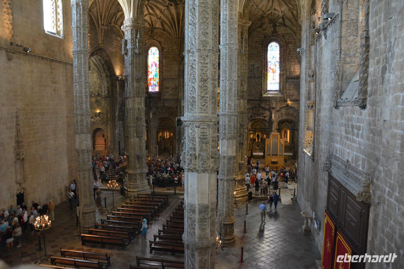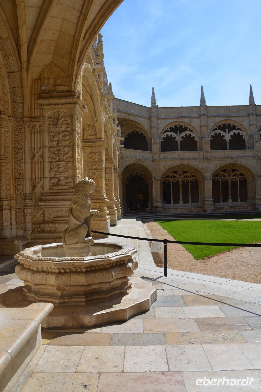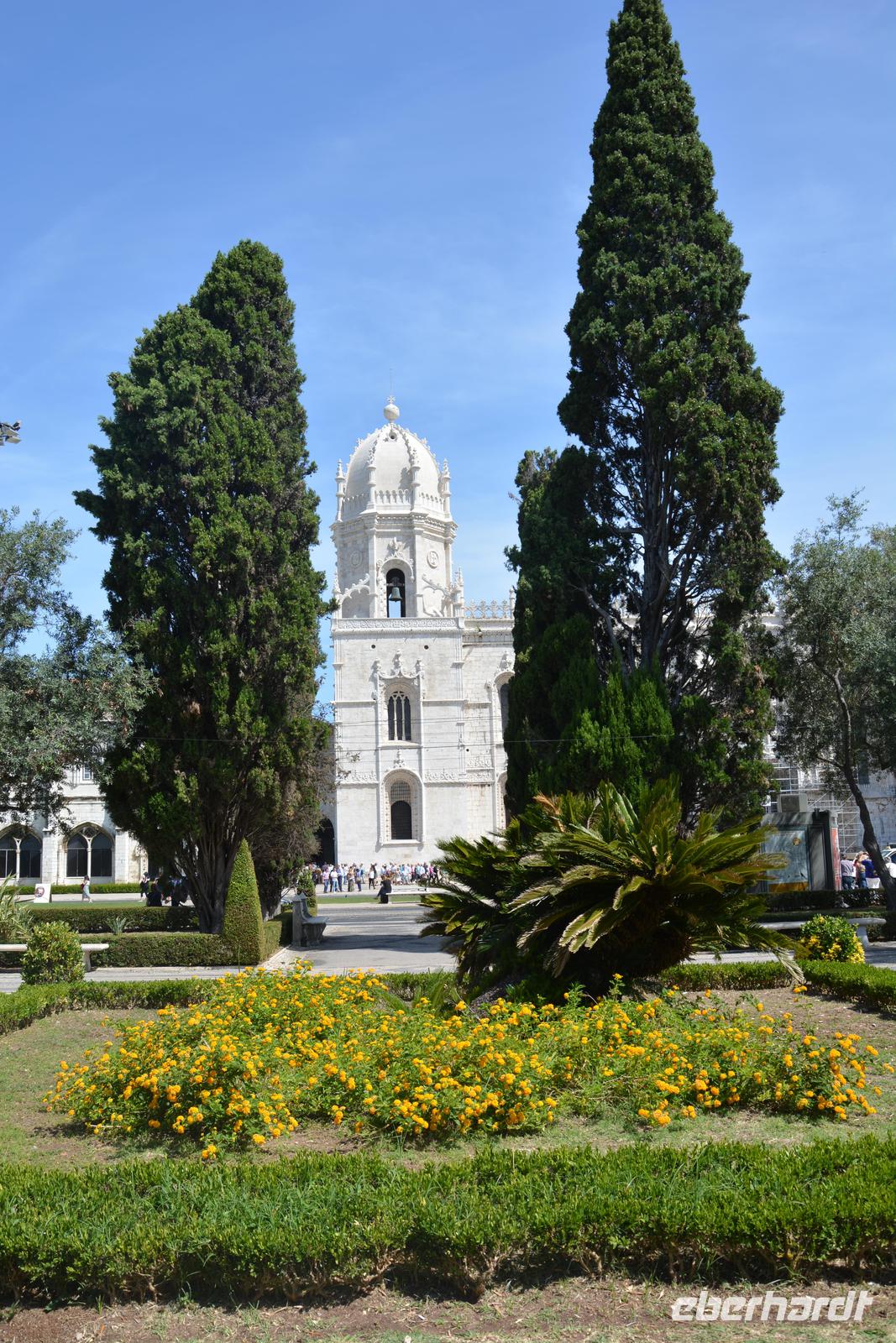 An unserem ersten Tag in Lissabon ging es nach dem stärkenden Frühstücksbuffet um neun Uhr los zur Stadterkundung. Wir durchfuhren das Viertel Campo pequeno, sahen das große Aquädukt mit seinen mächtigen Bögen, herrliche blau blühende Blumen, die an Zäunen sich langrankten, bis wir einen Hügel hinab direkt auf den Torre de Belem zufuhren. Doch dieser kam später an der Reihe. Unser erster Besichtigungsstopp war das Hieronymuskloster. Isabel erzählte von dem schweren Erdbeben 1755 und dem anschließenden verheerenden Brand, wovon das Hieronymuskloster jedoch verschont wurde. Am Kloster ausgestiegen bewunderten wir seine weiße glänzende Fassade. Nach einer kurzen Wartezeit, bis das Kloster öffnete, strömten wir mit den andern Touristen in das Innere. Wir liefen eine Runde durch das schöne Innere des Klosters. Als erstes ging es an dem Grab von dem portugiesischen Nationaldichter Luis de Camoues vorbei. Die Decke aus dem 16. Jahrhundert spiegelte gotische Kunst wieder, die nachgebildeten Glasfenster warfen ihr Muster auf den Boden, und das Grab von dem Seefahrer Vasco da Gama zeigte die Kunst der vielfältigen Verzierungen. In dem Kreuzgang sah man den Einfluss der maurischen Baukunst, und vor diesem schönen Hintergrund machten wir unser erstes Gruppenbild. Unsere Führung führte uns noch ein Stück weiter durch das Kloster, ehe wir dann einen halbe Stunde noch Freizeit hatten. Anschließend ging es am Porto de Lisboa vorbei, wo wir einen Fotostopp am Denkmal der Entdeckungen machten. Auch die beeindruckende große Windrose mit der Karte der Entdeckungen Portugals sahen wir, doch leider kaum im Ganzen, weil eine große Gruppe von Touristen direkt auf der Weltkarte stand. Nun ging es auch zu dem schon zuvor vorbeigefahrenen Torre de Belém. Dieser ehemalige Leuchtturm, der heute als Aussichtspunkt dient liegt direkt am Fluss Tejo. Von hier hat man auch einen Ausblick auf die Brücke des 25. April im Hintergrund. Pünktlich zur Mittagszeit ging es zu dem ursprünglichen Marktplatz Rossio, welcher zu den drei wichtigsten innerstädtischen Plätzen der Hauptstadt Lissabon gehört. Die umliegenden Straßen boten Restaurants, Souvenirgeschäfte und Sehenswürdigkeiten-alles in Laufnähe zum Rossio. Also nicht nur der Hauptplatz, sondern auch die restlichen Seitenstraßen luden zum Bummeln und Verweilen ein. Nach der Mittagspause ging es wieder als Gruppe vereint zu der Kathedrale Sé Patriarcal. Diese älteste Kirche der Stadt, welche auch dem Erdbeben zum Opfer fiel, wurde im 19. Jahrhundert im Stil der Romanik wieder aufgebaut. Dann ging es zu Fuß den Berg hoch, an einer alten Theaterruine vorbei hin zum Castelo Sao Jorge. Hier hatte man förmlich eine Panoramaaussicht über Lissabon und den Fluss Tejo. Nachdem wir die Aussicht bestaunt hatten, drehten wir auf der Burg noch eine Runde, wobei wir an Möbeln aus Kork und freilaufenden Pfauen vorbeikamen. Jetzt führte uns der Weg durch das Alfama-Viertel. An der Statue des St. Vicente hatten wir noch einmal eine hübsche Aussicht auf die Stadt. Danach fuhren wir noch mit dem Bus ein Stück, ehe wir wieder zu Fuß zu dem Lokal aufbrachen, wo wir den traditionellen Fadogesangt hören würden. Bei einem Wein der der Wahl und kleinen Tapas lauschten wir andenklich. Ein Mann oder eine Frau sangen, und wurden von eienm Gitarristen und einem Mann mit einer portugiesischen Gitarre begleitet. Anschließend ging es wieder zum Bus zurück und wir fuhren zum Hotel. Leider kamen wir am Schluss der Strecke ein wenig in den Feierabendverkehr von Lissabon, aber so konnten wir ein paar Fotos des Denkmals Miradouro do Parque Eduardo VII. bekommen. Beim Abendessen im Hotel wurde der Tag ausgewertet.