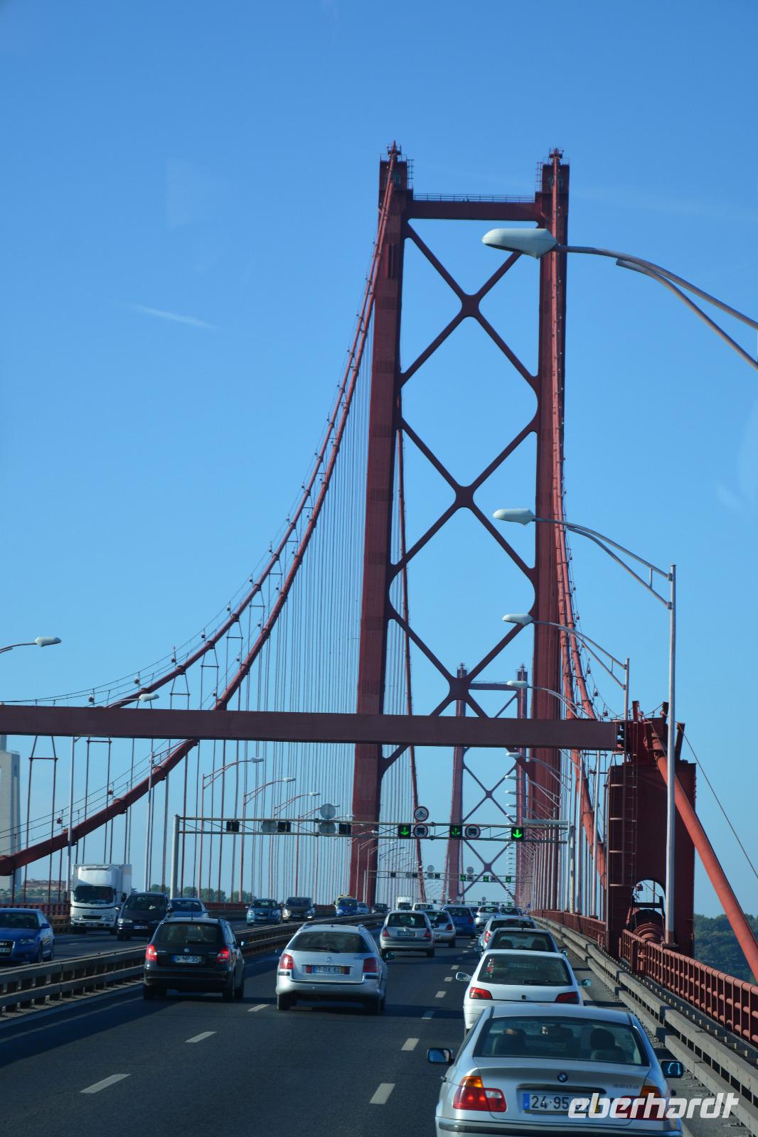 Ein neuer Tag in Portugal wartete auf uns! Nach dem zeitigen Frühstück verließen wir mit gepackten Koffern auch schon wieder die Hauptstadt Lissabon und machten uns auf den doch recht weiten Weg in den Süden zur Algarveküste. Heute mussten wir schon um acht Uhr starten, denn heute hieß es fahren, fahren, fahren. Über die rote Brücke des 25. Abril fuhren wir aus der Stadt hinaus, wobei wir auf der linken Seite die Christusstatue sehen konnten. Unser noch weit entferntes nächstes Ziel war die Stadt im Alentejo namens Évora.