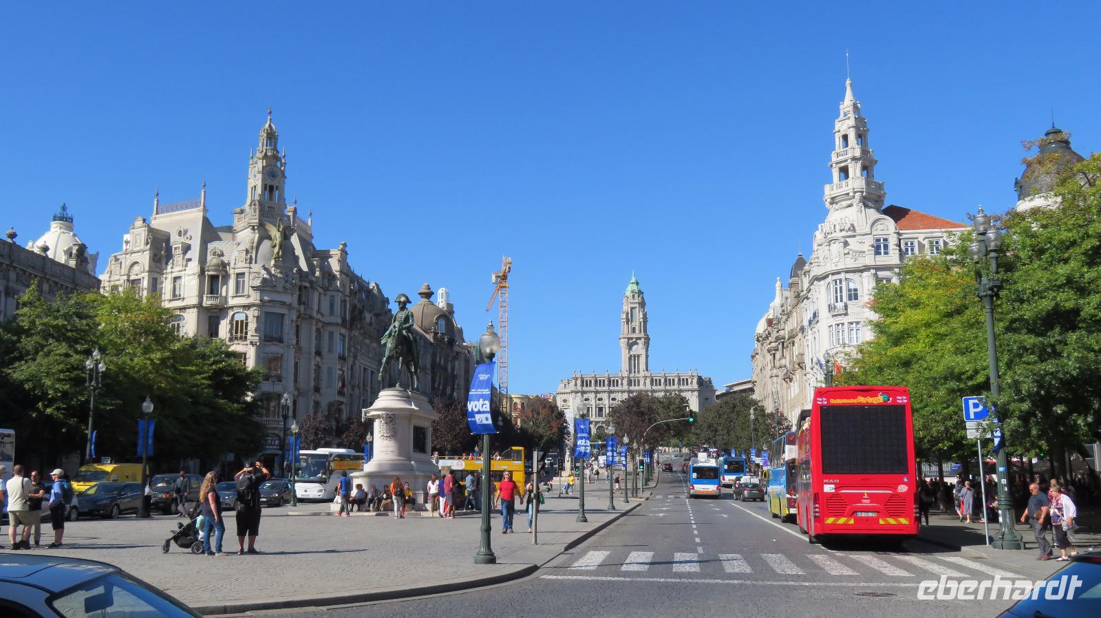 Heute ist unsere Reisegruppe mit 23 Personen vollständig. Wir starten zu unserer Stadtrundfahrt nach Porto. Wir steigen am Praca da Liberdade mit dem Rathaus und dem Reiterdenkmal König Pedro IV. aus und bummeln mit Isabell, die uns natürlich alles Wichtige zu den Gebäuden erzählt, durch die Altstadt. Sie gilt seit 1996 als Weltkulturerbe der UNESCO.